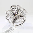 Notes: The ring is quite large is with a very beautiful floral pattern. The diamonds are calibrated in cut, all matching displaying excellent fire and brilliance. Piece is in excellent pre-owned condition with no dents or dings or missing stones. Displays minor hairline scratches on the shank and gold.
