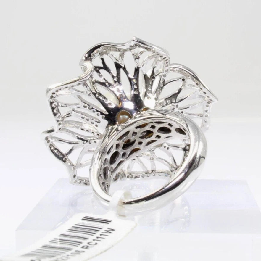 Estate 18K White Gold Southsea Pearl 1.35 ct Natural Diamond 18.1 g Ring Size 7