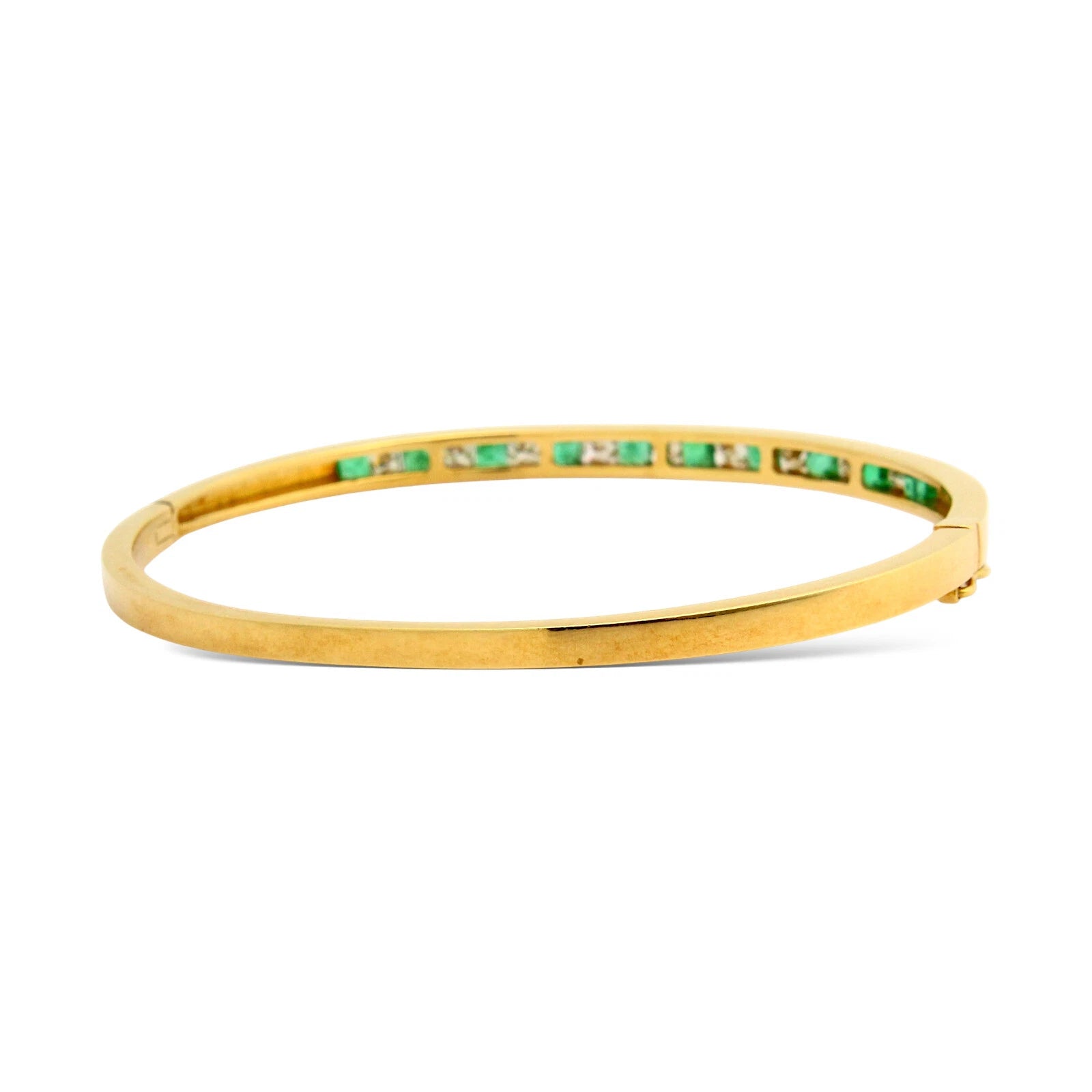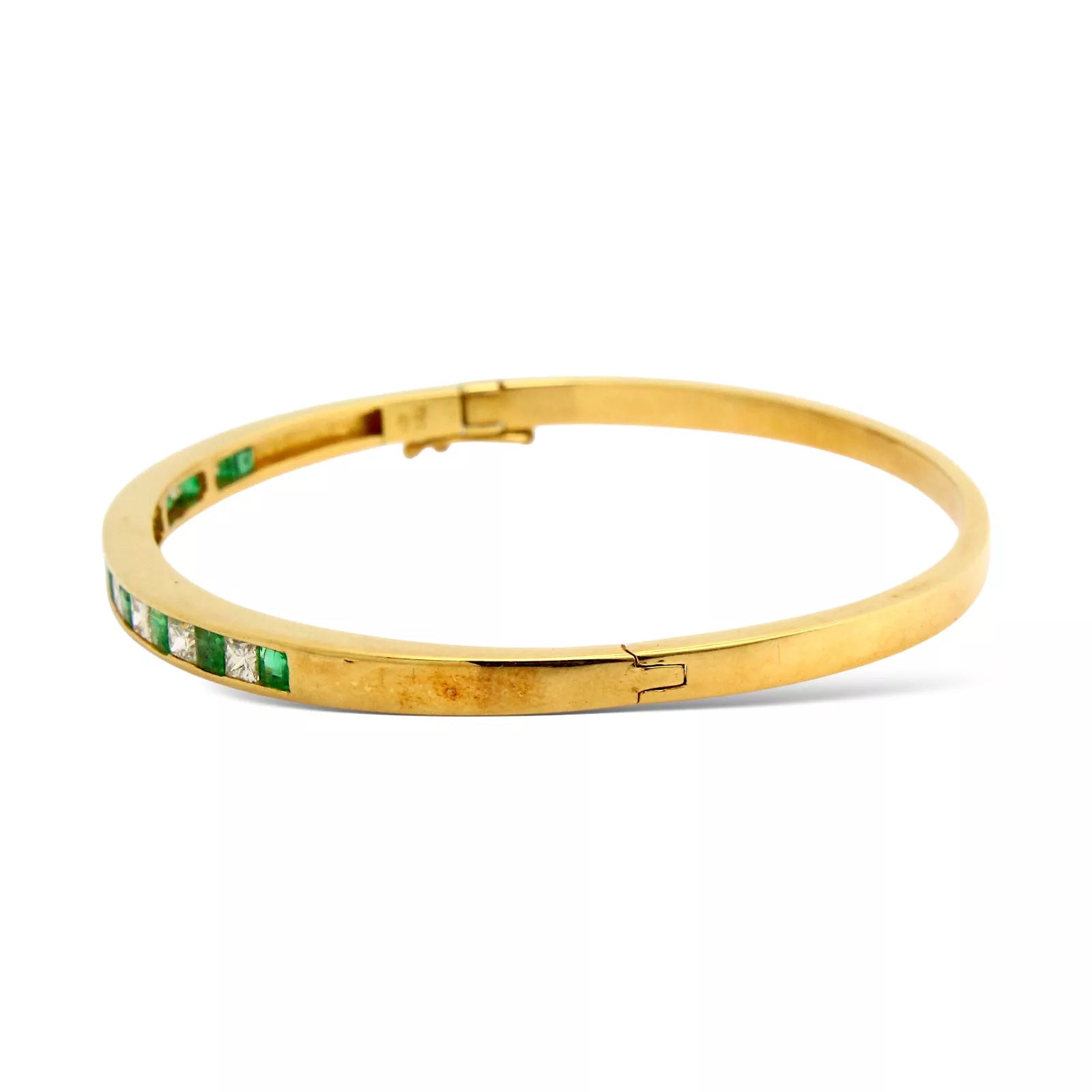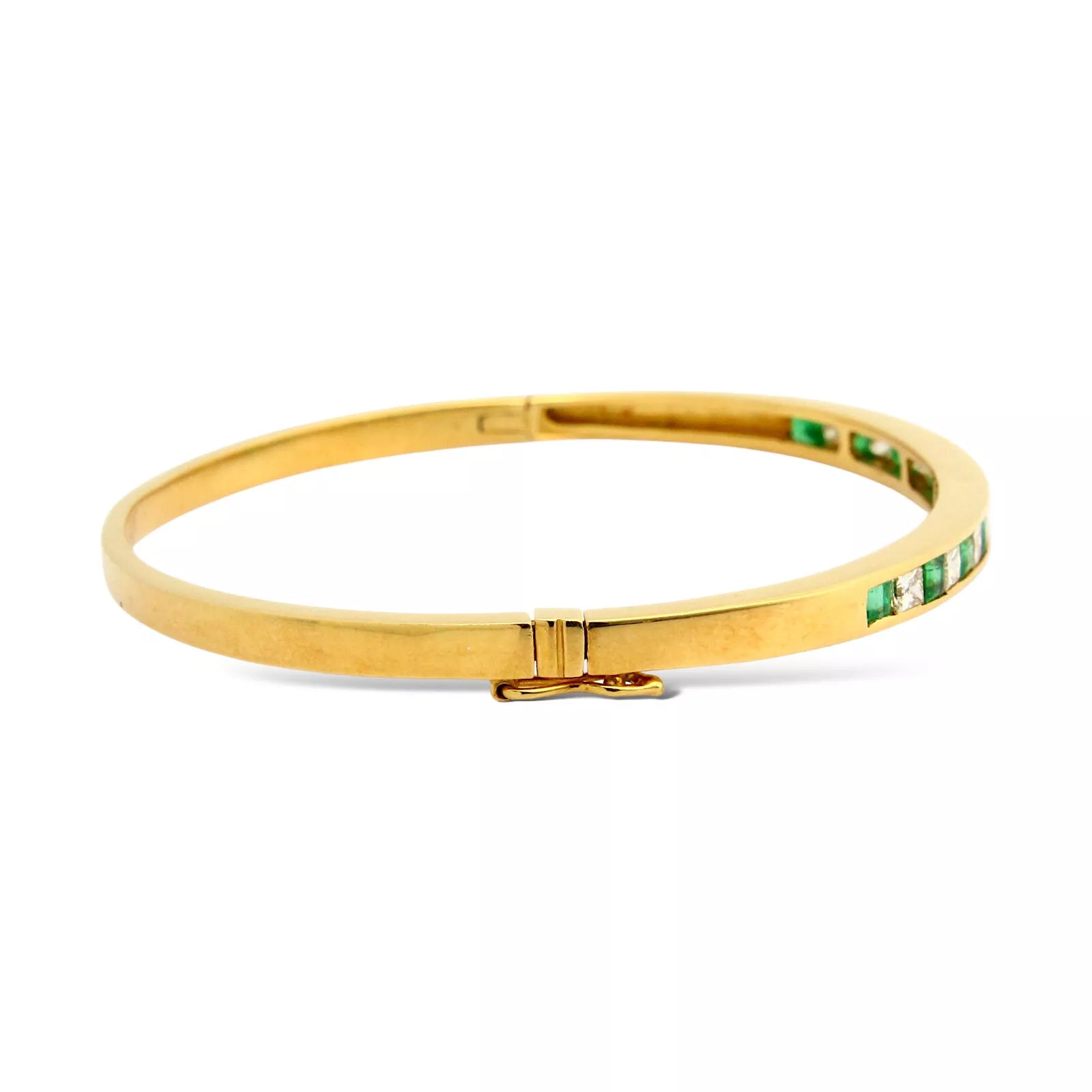 Estate 18K Yellow Gold 0.55 CT Natural Diamond and Emerald 0.75 CT Bracelet