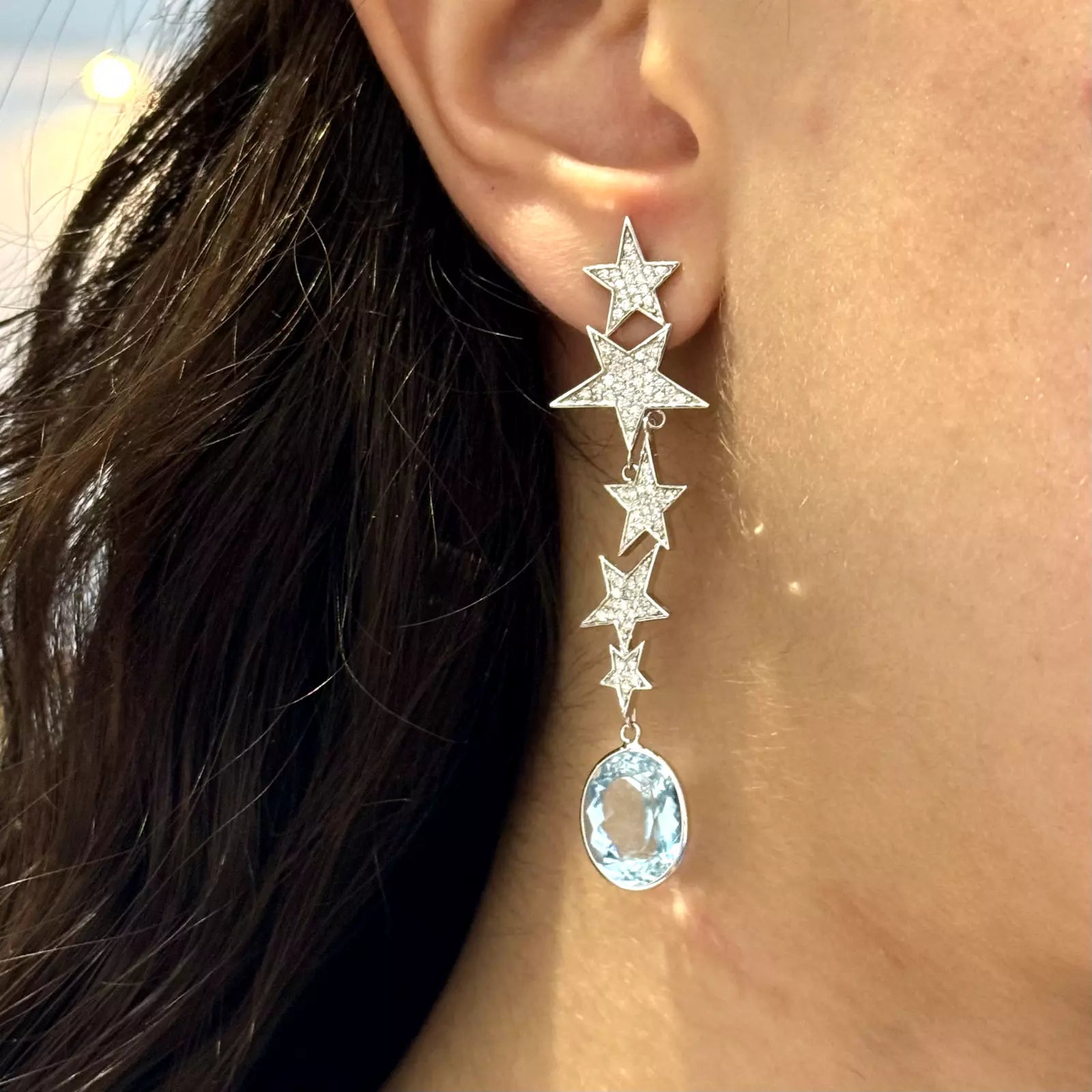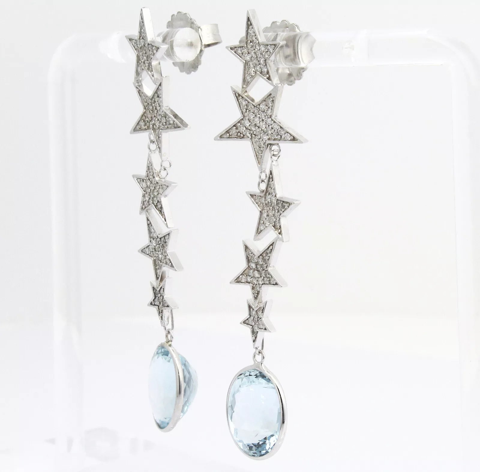 Estate Natural 1.20 CT Diamond and Aquamarine 8 CT Earrings In 18K White Gold Metal: 18K White Gold; 14K Butterfly Backs Weight: 11.1 grams Stone: Natural White Diamonds; Aquamarine Measurements: 63.2 mm tall x 15.7 mm (widest point) Closure: Butterfly Stamped: 750 White Natural Diamonds: Total Carat Weight: 1.20 CT Color: White Treatment: Not Enhanced (Natural) Aquamarine: Total Carat Weight: 8 CT Treatment: Not Treated |