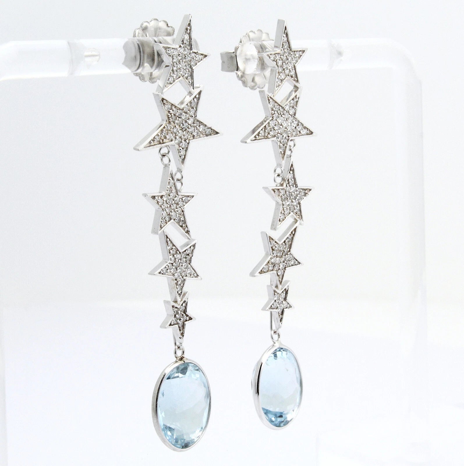 Estate Natural 1.20 CT Diamond and Aquamarine 8 CT Earrings In 18K White Gold