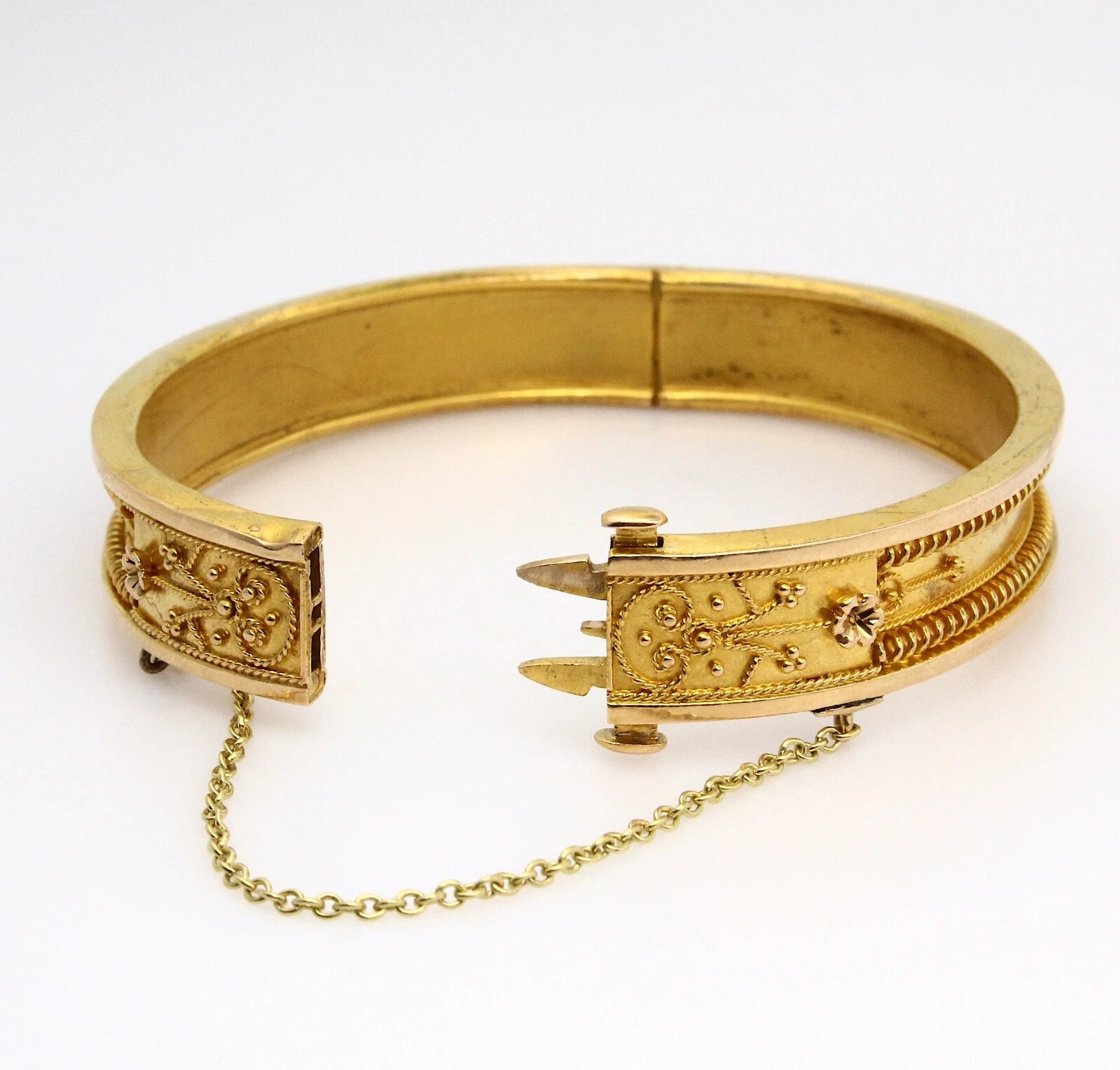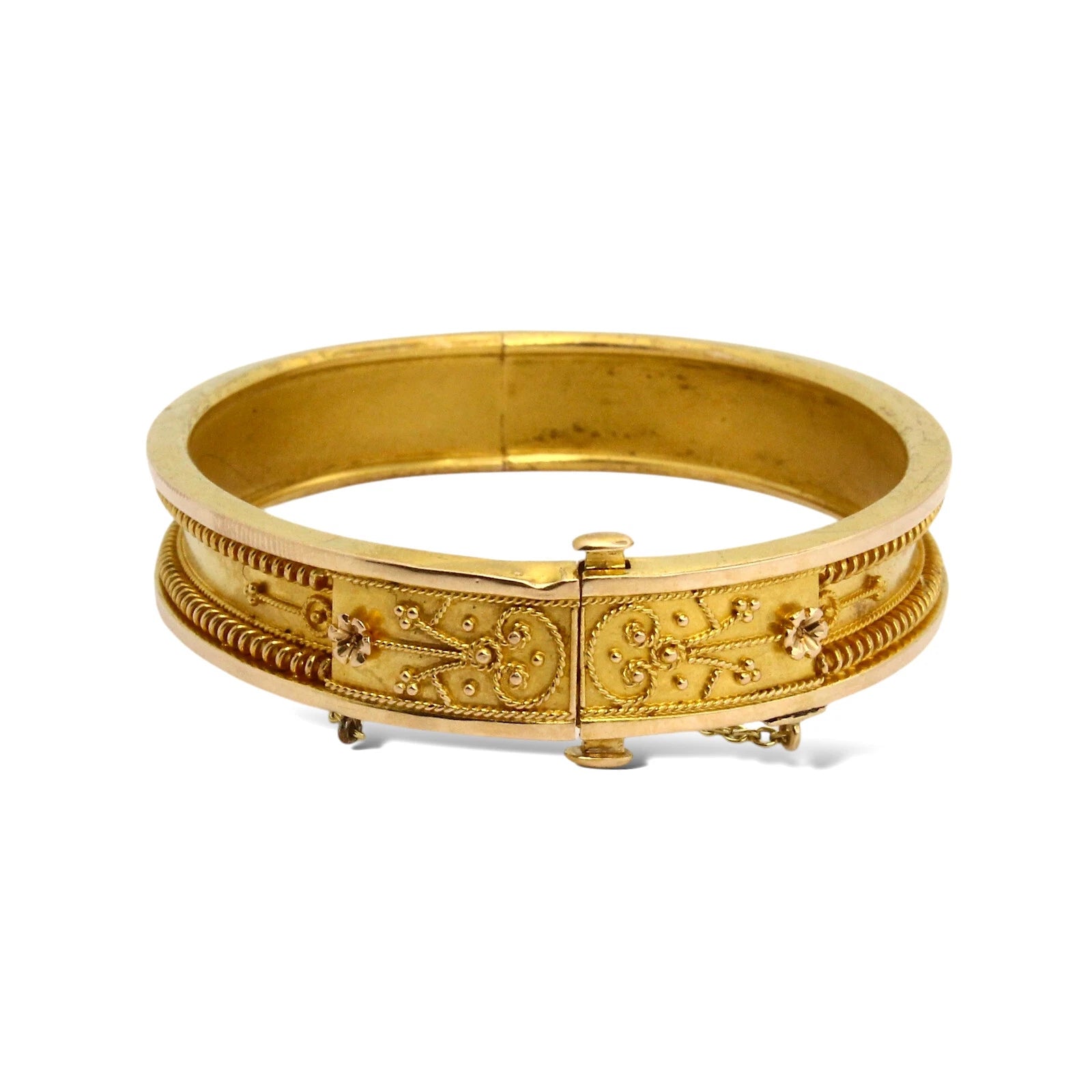 Estate Neo Classic Antique Circa 1870 18K Yellow Gold Victorian Bangle Bracelet