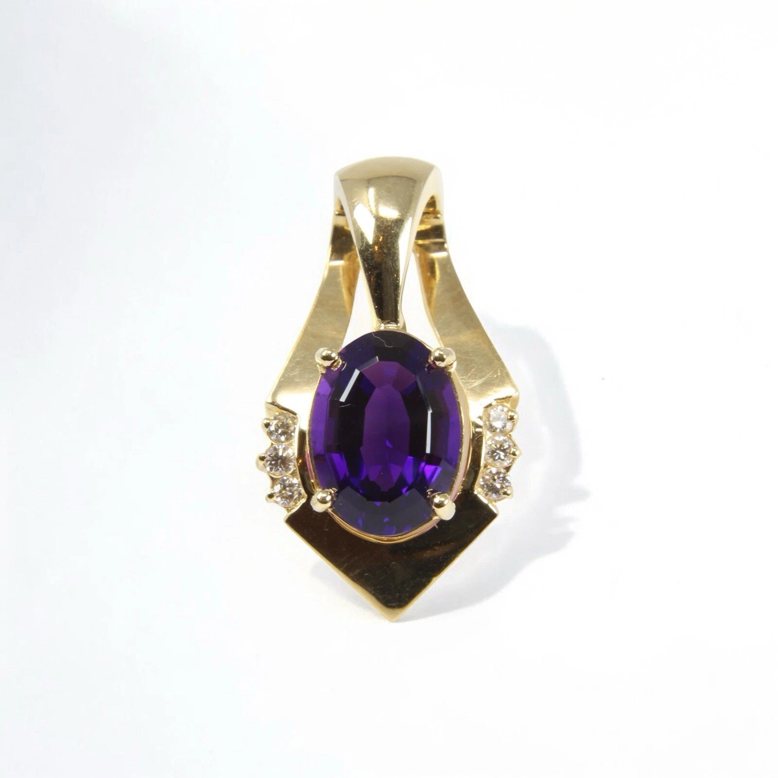 Estate Vintage Amethyst 5.25ct Diamond 0.35ct 14k Yellow Gold Slide Pendant