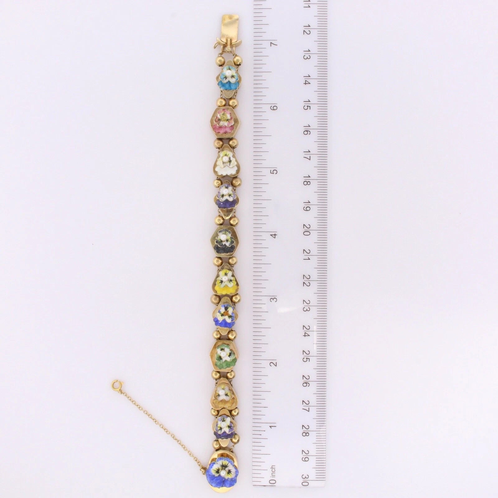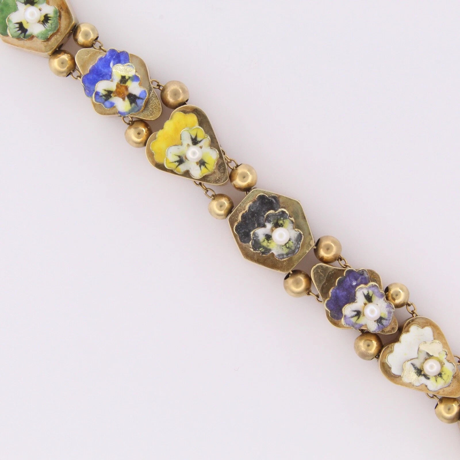 | Estate Vintage Enamel 14k Rose Gold Pearl Flower Pansy Ladies Elegant Bracelet | |
