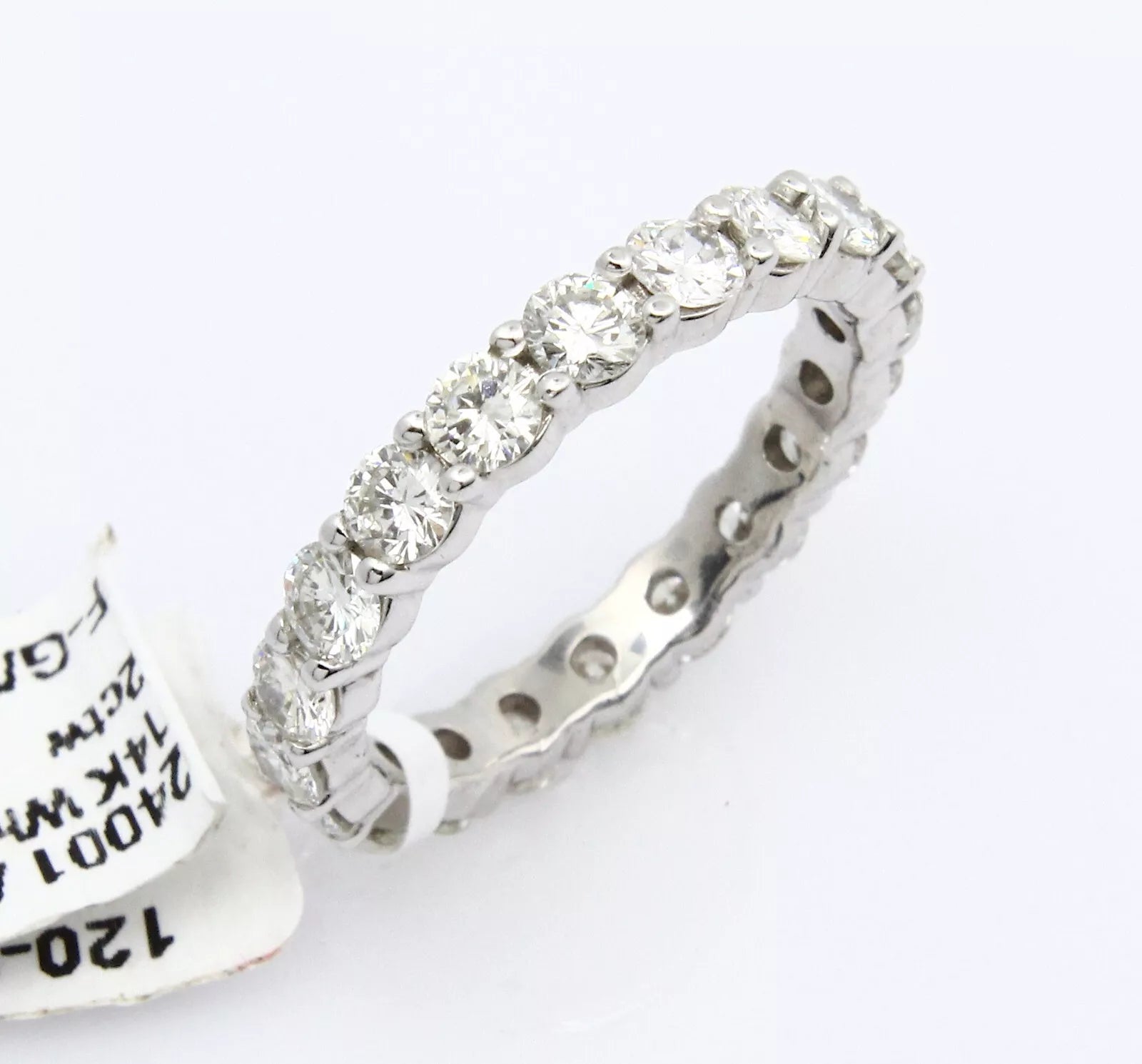 Eternity Band 14K White Gold Natural Round Brilliant Diamond 2CT Ring Size 6 1/2