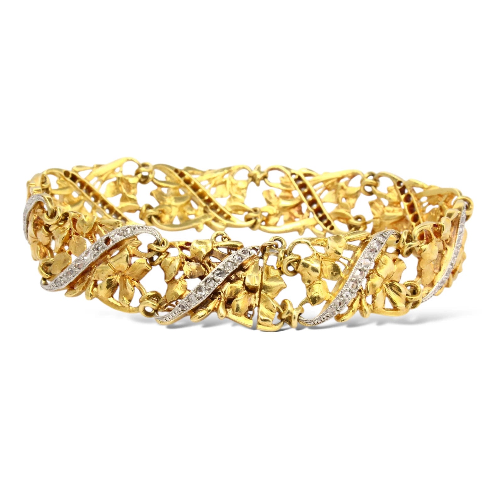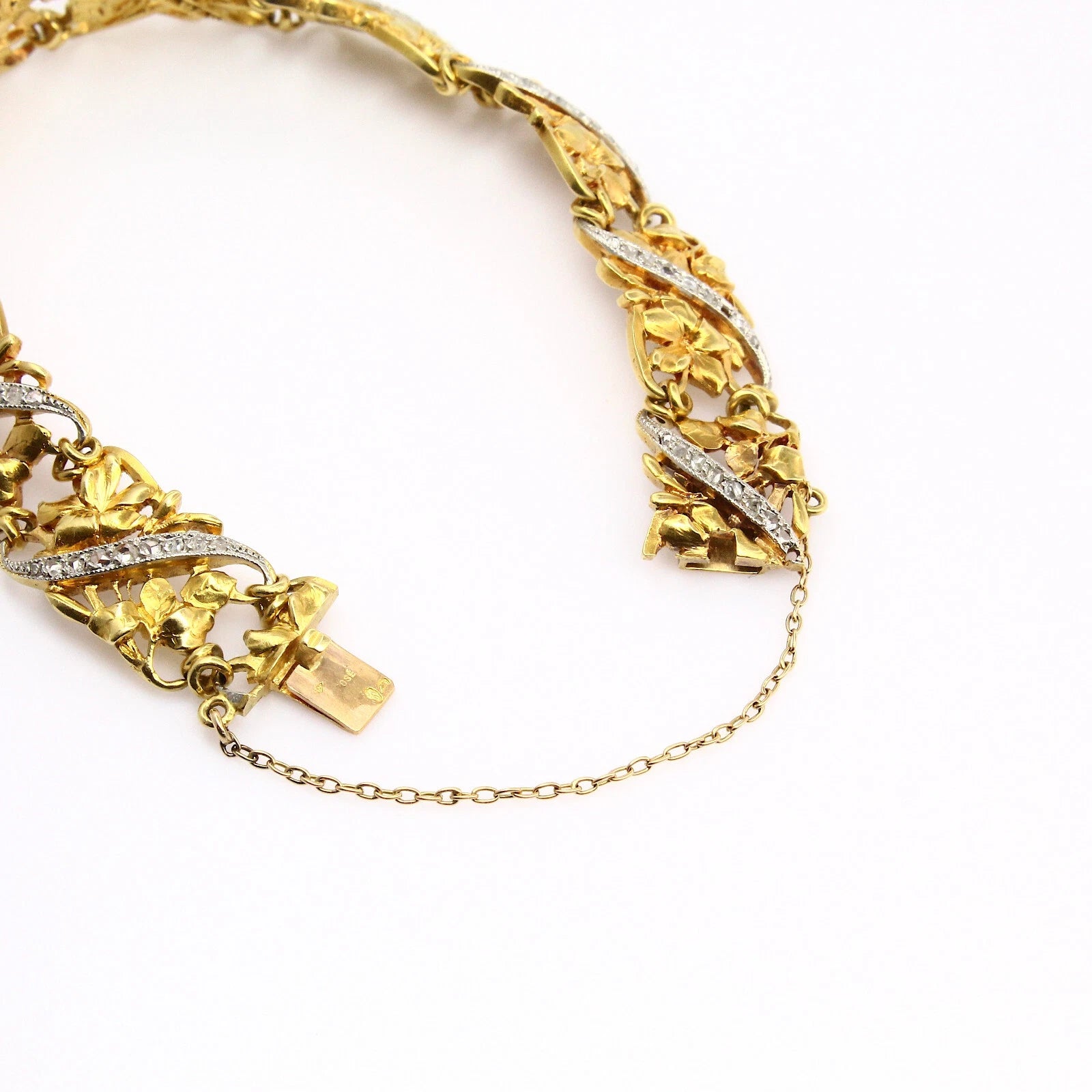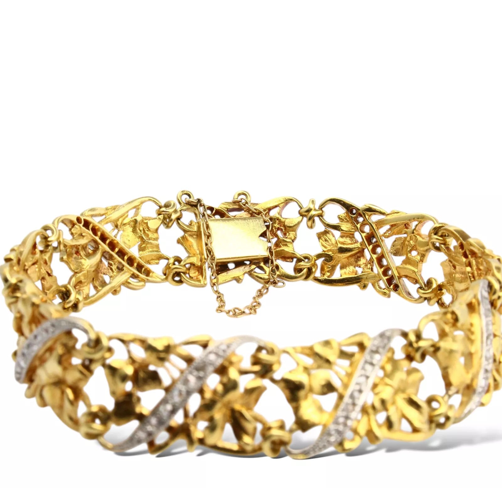Notes: Antique, fully handmade bracelet from Art Nouveau era . Two diamonds are missing.