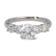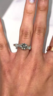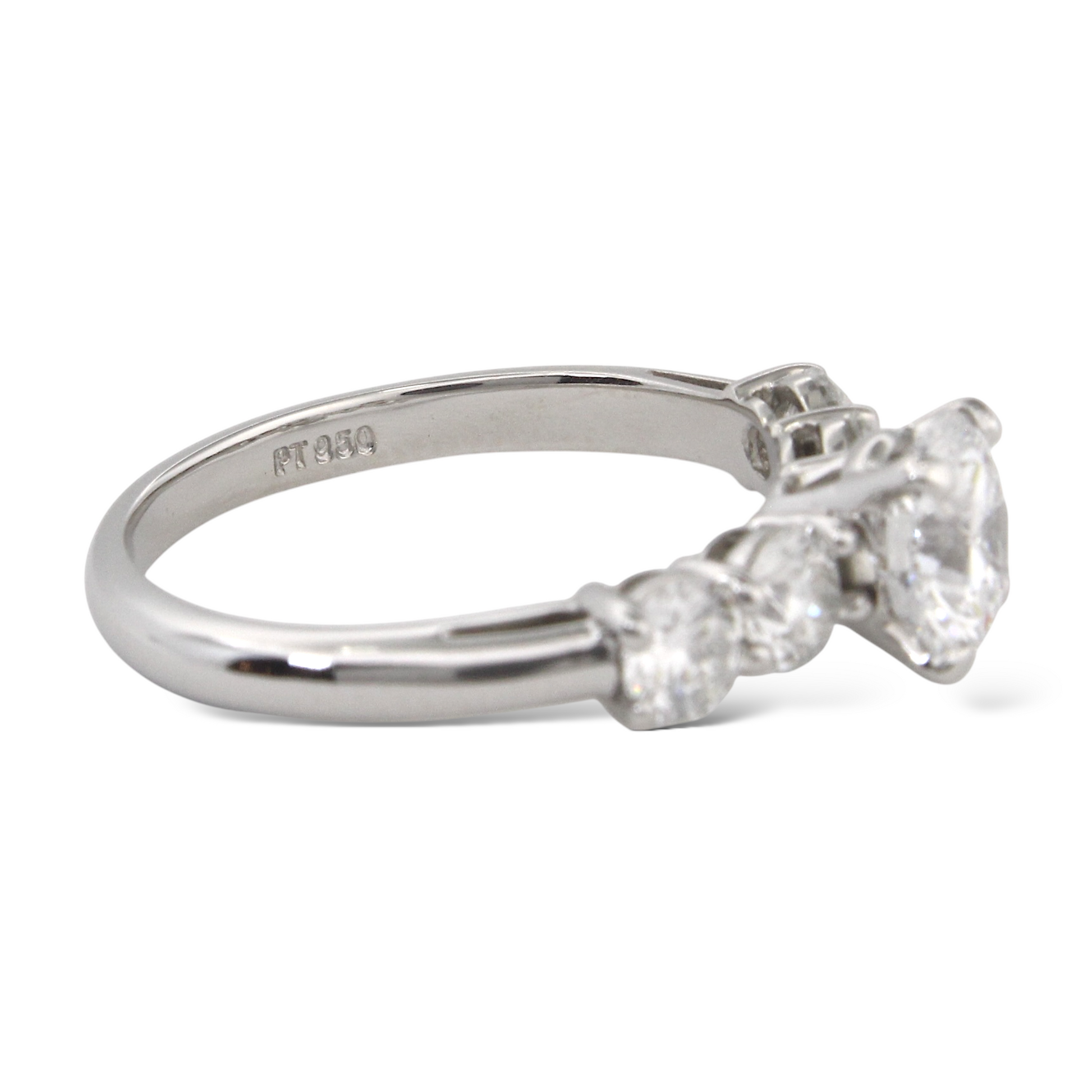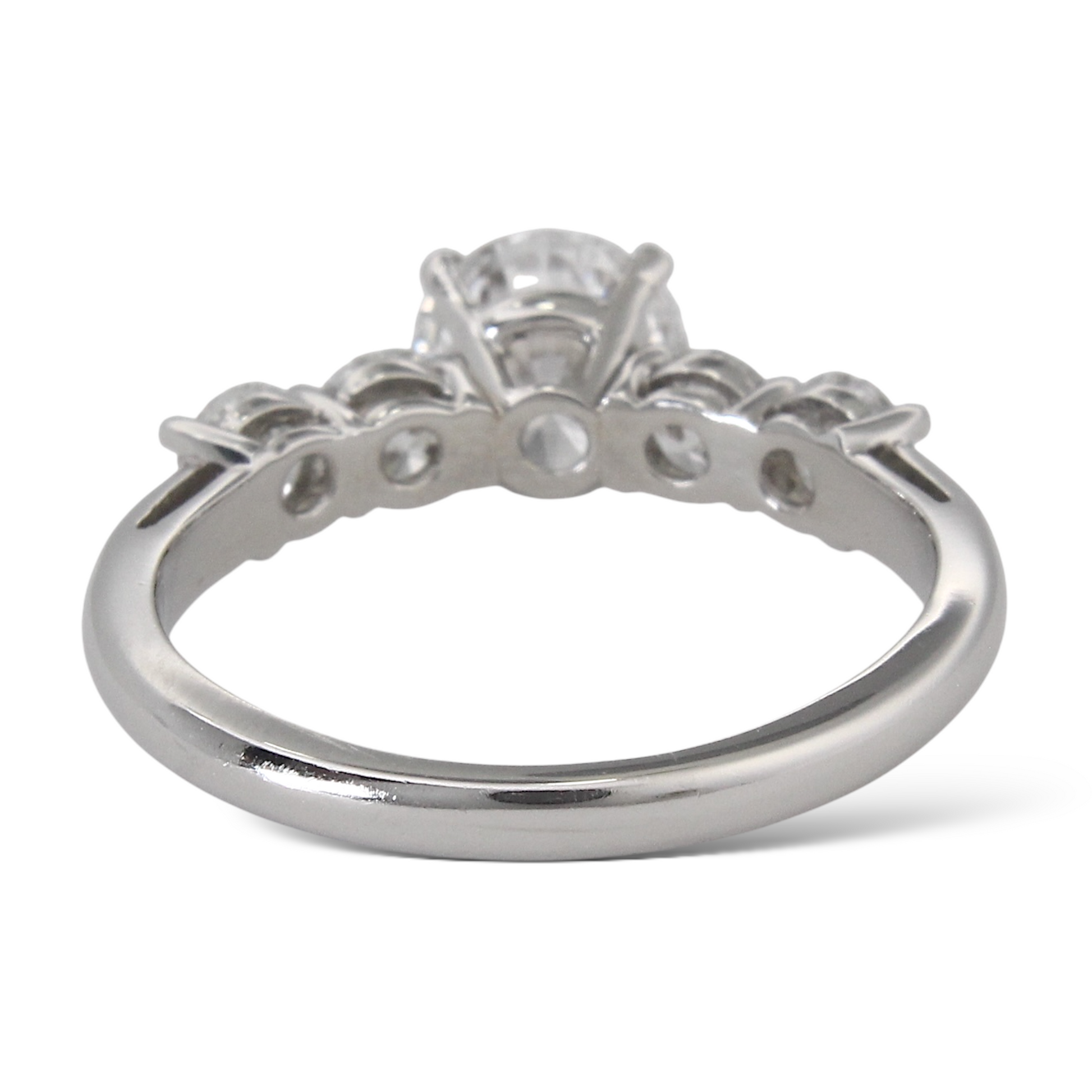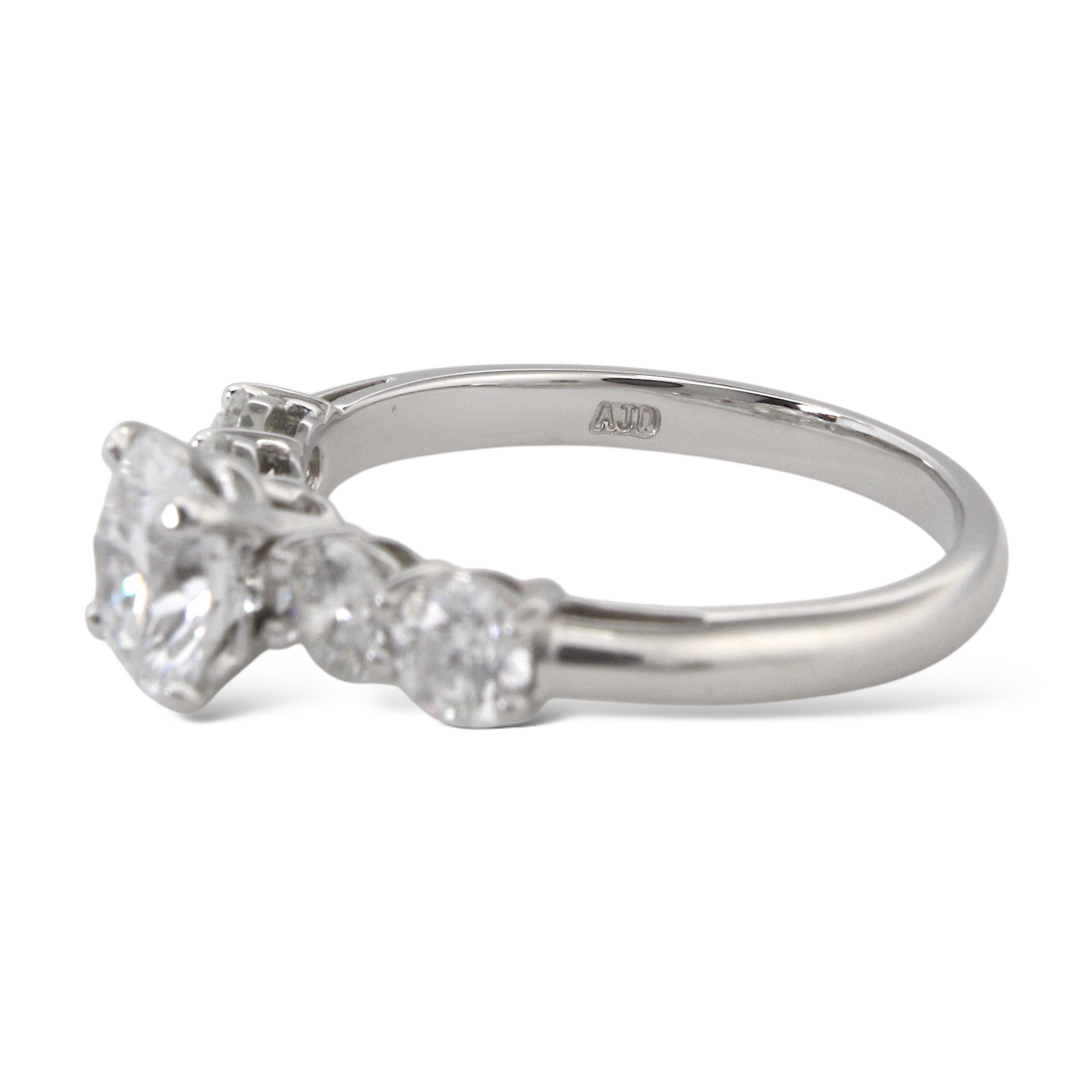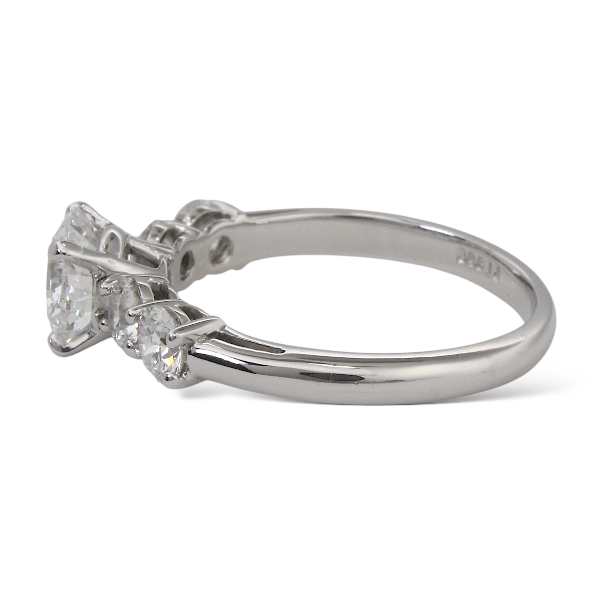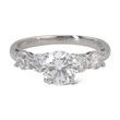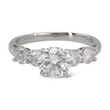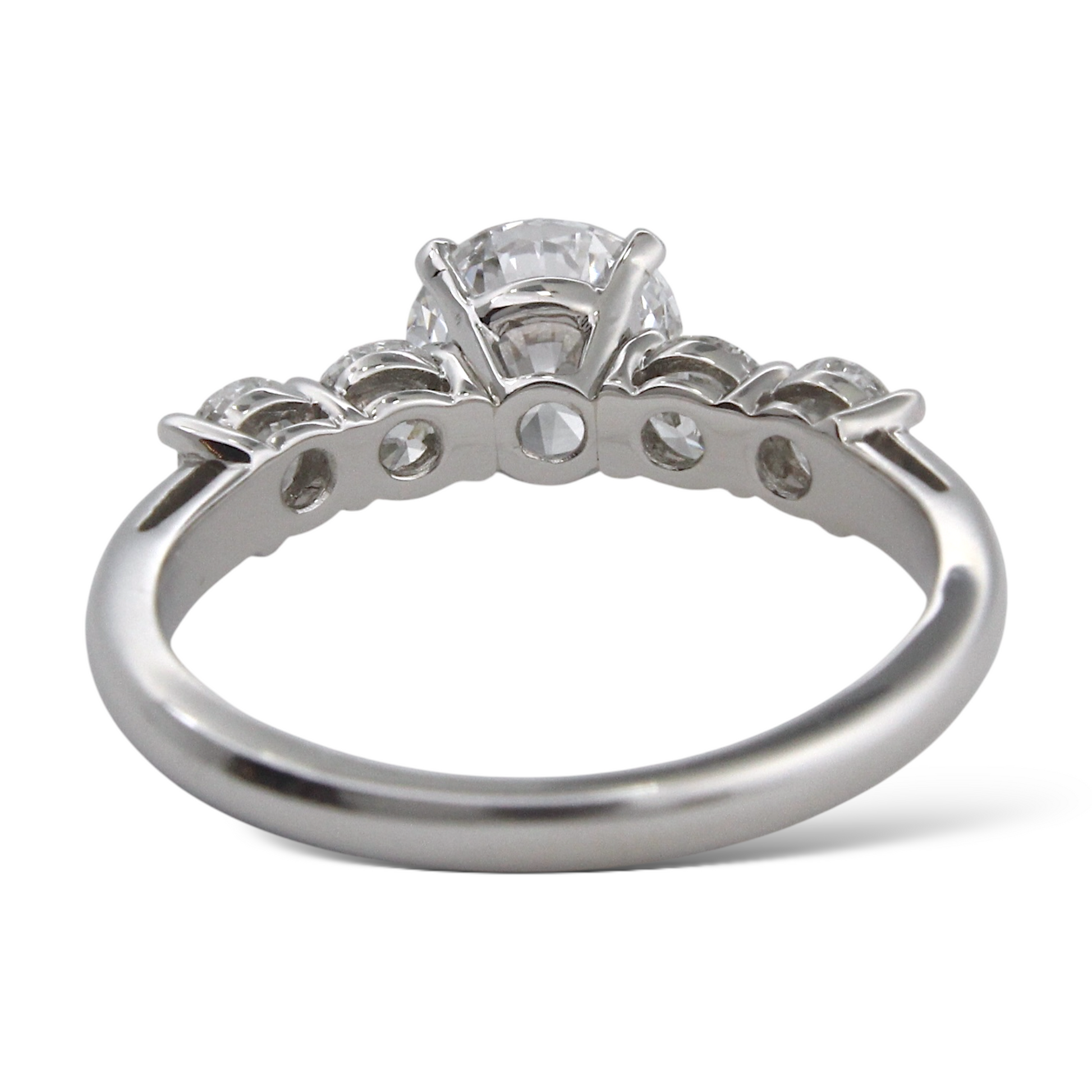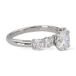 On each side are two natural earth-mined round brilliant diamonds, creating a total of approximately 1.00 CT in additional diamond weight. The side diamonds are graded F-G color and VS clarity, providing a clean, high-quality complement to the center stone. A copy of the original GIA certificate for the center diamond is included.