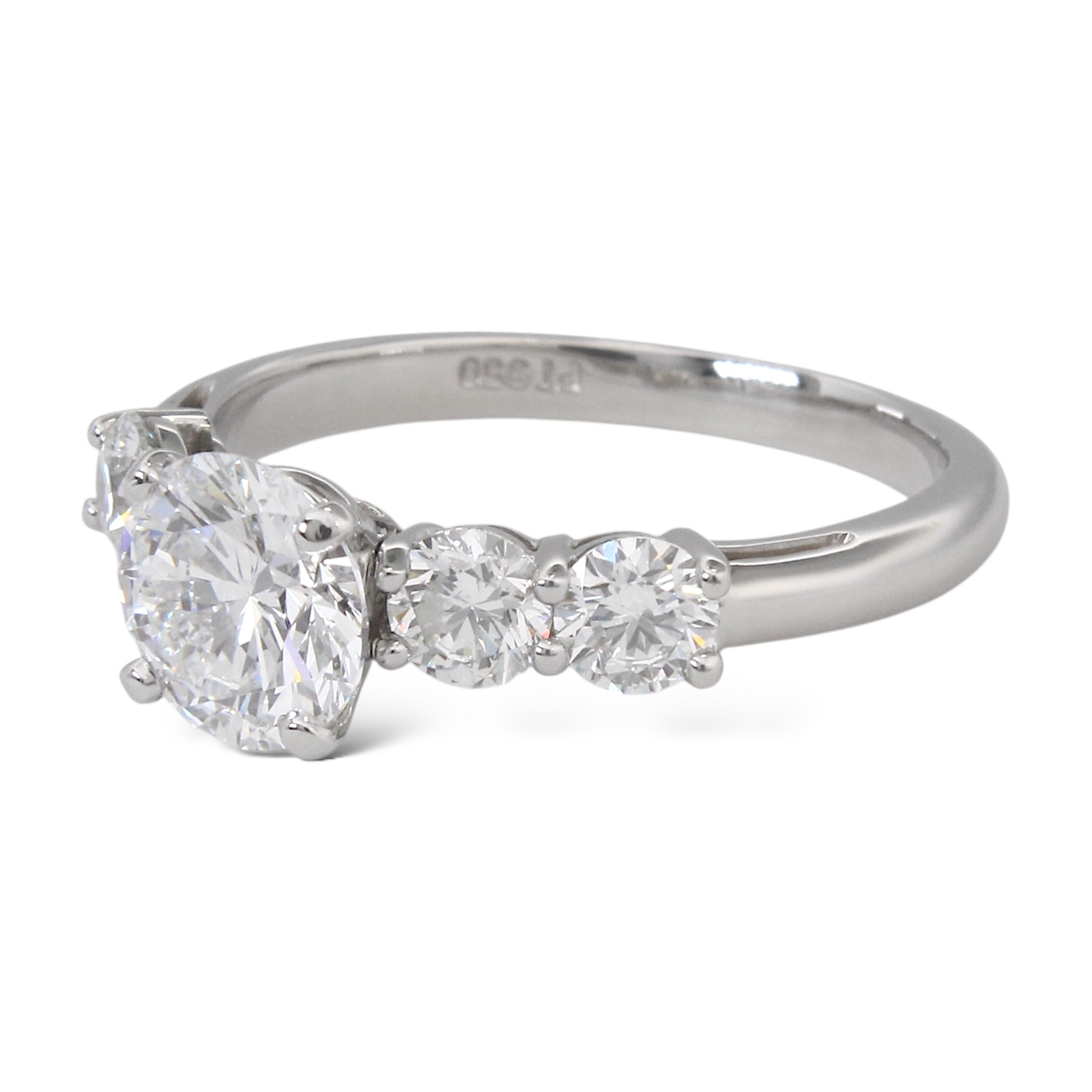 GIA 1.50 CT D SI1 Natural Diamond Engagement 5 Stone Ring Round Platinum 950