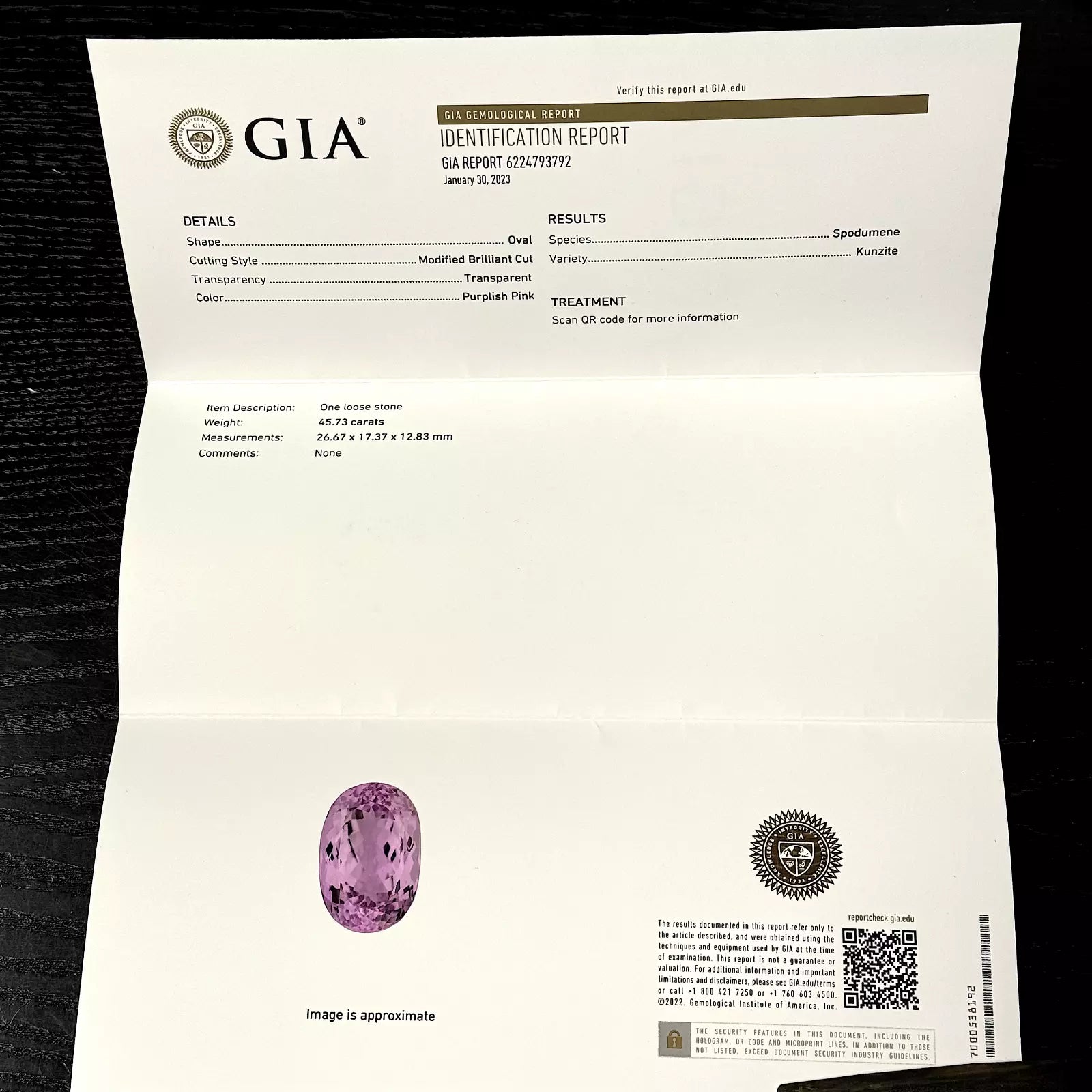 GIA Certified Natural Kunzite 45.73 CT Pink Oval Cut Loose Magnificent Gemstone