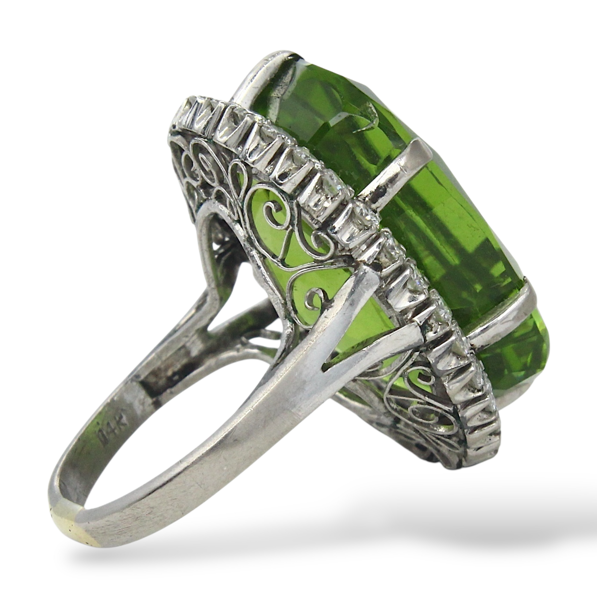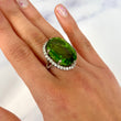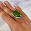 GIA Certified Natural Peridot 30 CT Halo Diamond Ring 14K White Gold Size 6.25