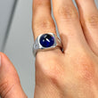 GIA No Heat Art Deco Natural Blue Sapphire Cabochon Diamond Platinum Ring Size 7
