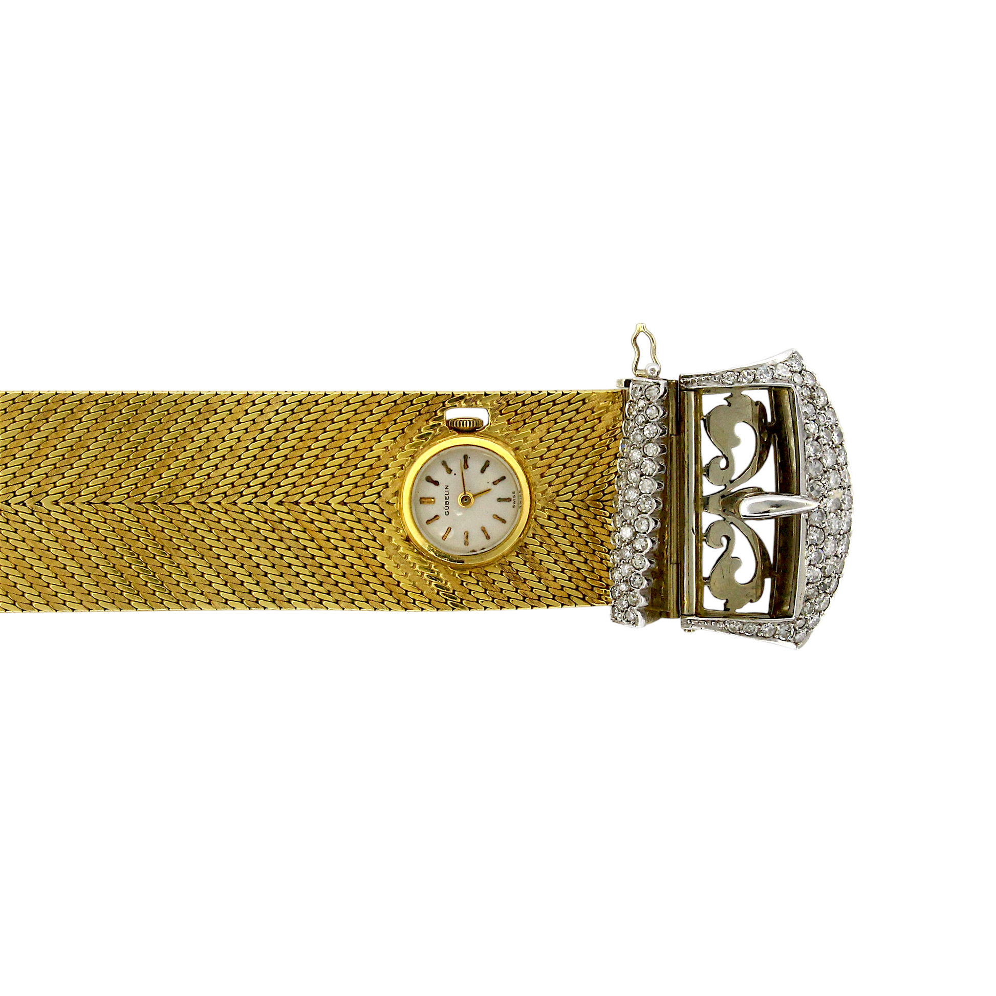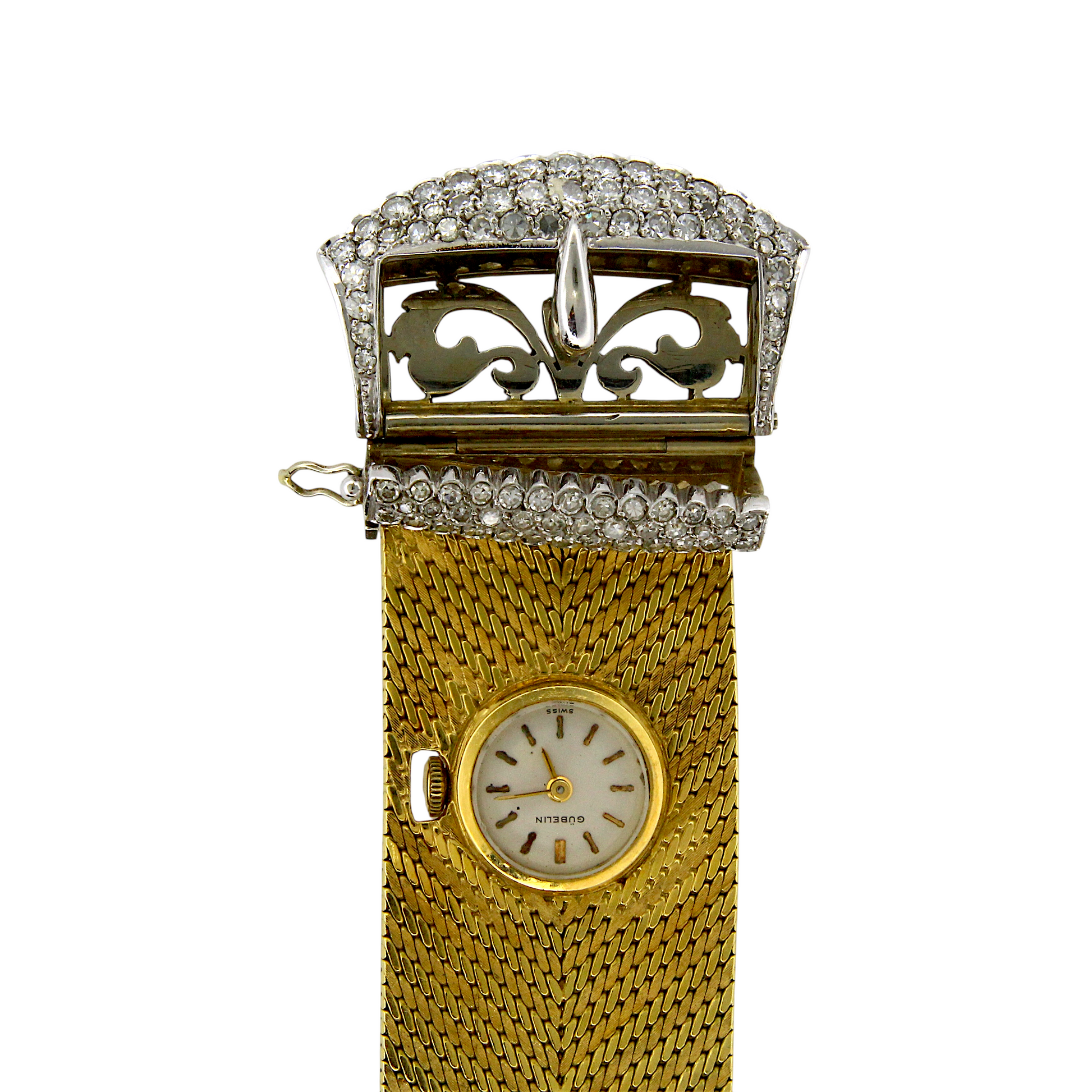 Gübelin 2–3 CT Buckle Watch Diamond Vintage 18K Yellow Gold Mesh Band Bracelet