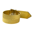 The yellow gold watch case measures 14.4mm in diameter and is seamlessly integrated into the bracelet. The bracelet is 24 mm wide. The watch case is fitted with a mineral glass crystal protecting the dial. The bezel is also crafted from 18K yellow gold. This watch is not water-resistant, in line with the era’s design standards.