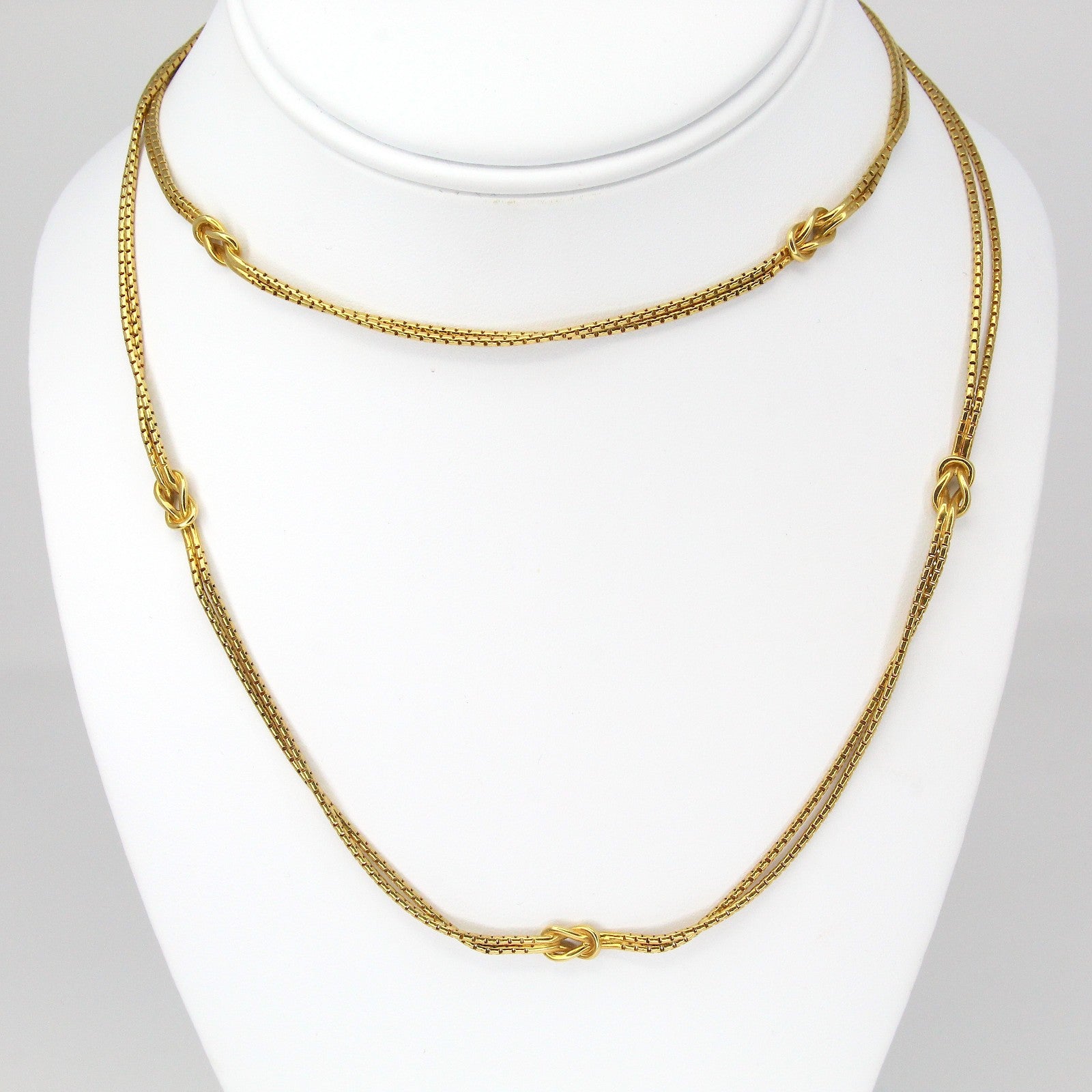 GUCCI Knot Double Chain Necklace 18K Yellow Gold 32" Inches