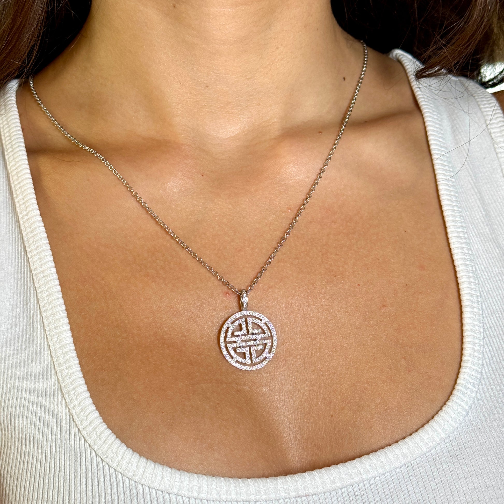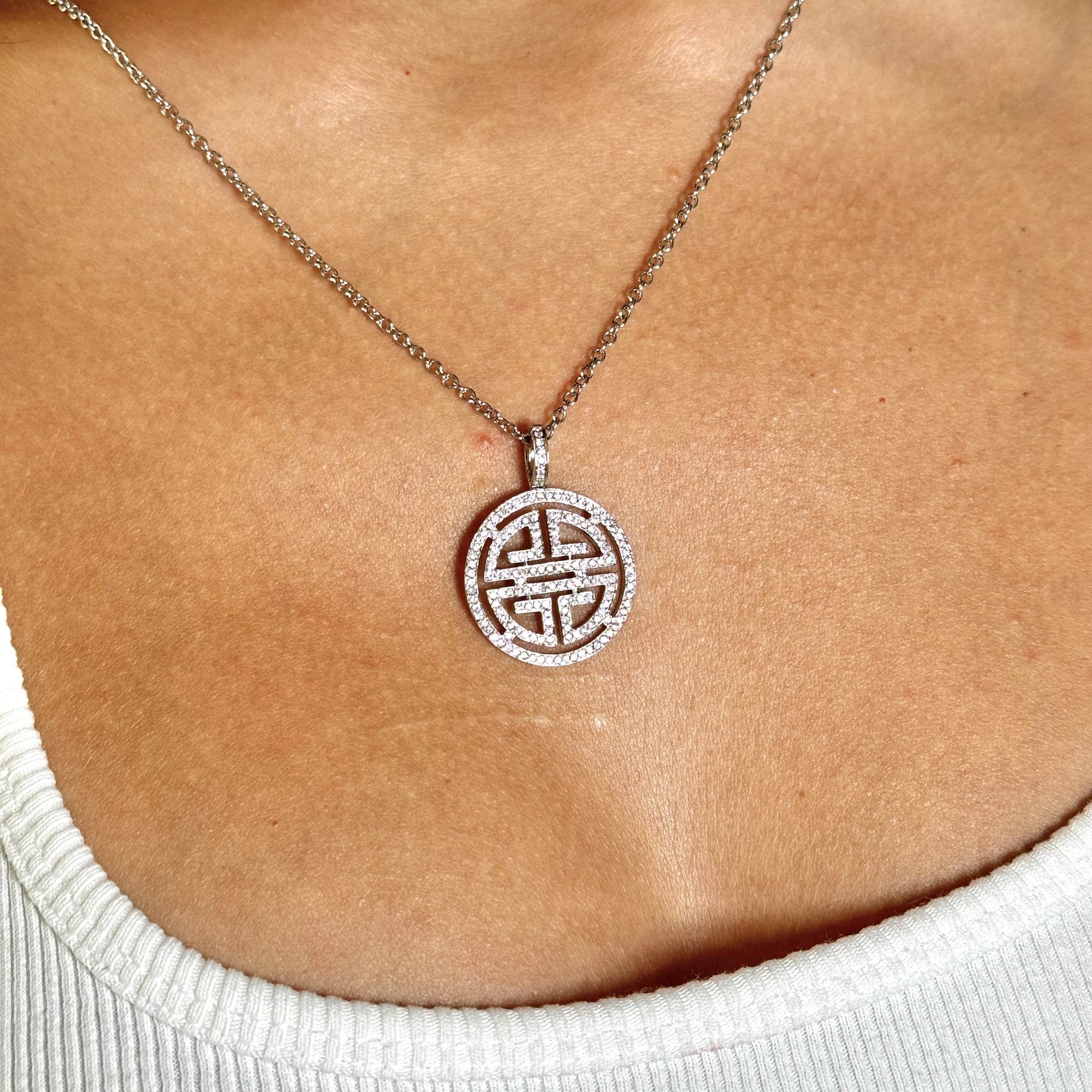 0.85 CT Natural Diamond Double Happiness Pendant 18K White Gold Chinese Symbol Charm