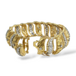 This exquisite Hammerman Brothers high-jewelry bracelet, is masterfully crafted in rich 18K yellow gold and adorned with a breathtaking array of natural earth-mined white diamonds. Each diamond, cut in an elegant round brilliant shape, is meticulously placed to create a luminous tapestry of color, depth, and movement. The bracelet showcases approximately 2.70 carats of natural diamonds, forming a statement ensemble that embodies exceptional craftsmanship, rarity, and unmistakable luxury.