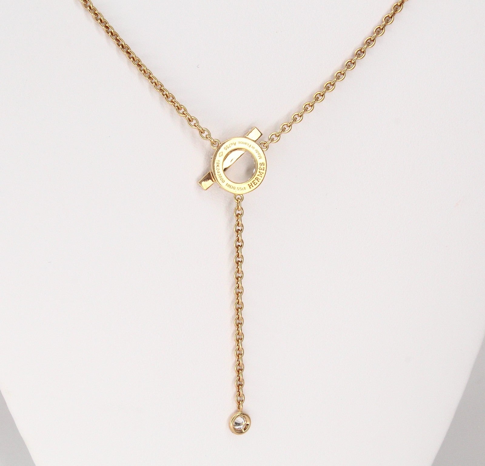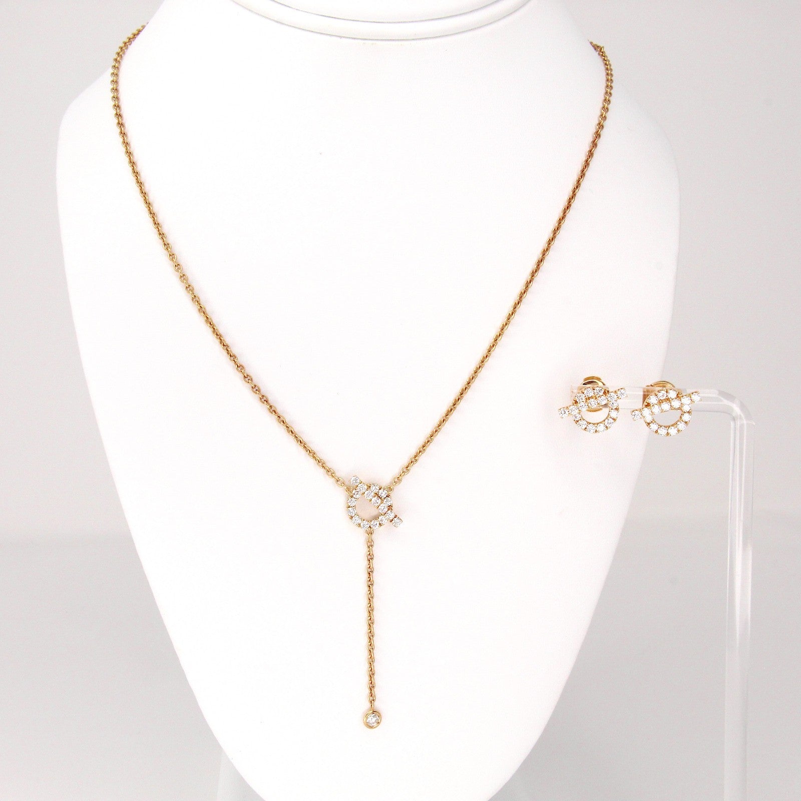 HERMES Finesse Earrings and Lariat Necklace Diamond Set Paris 18K Rose Gold