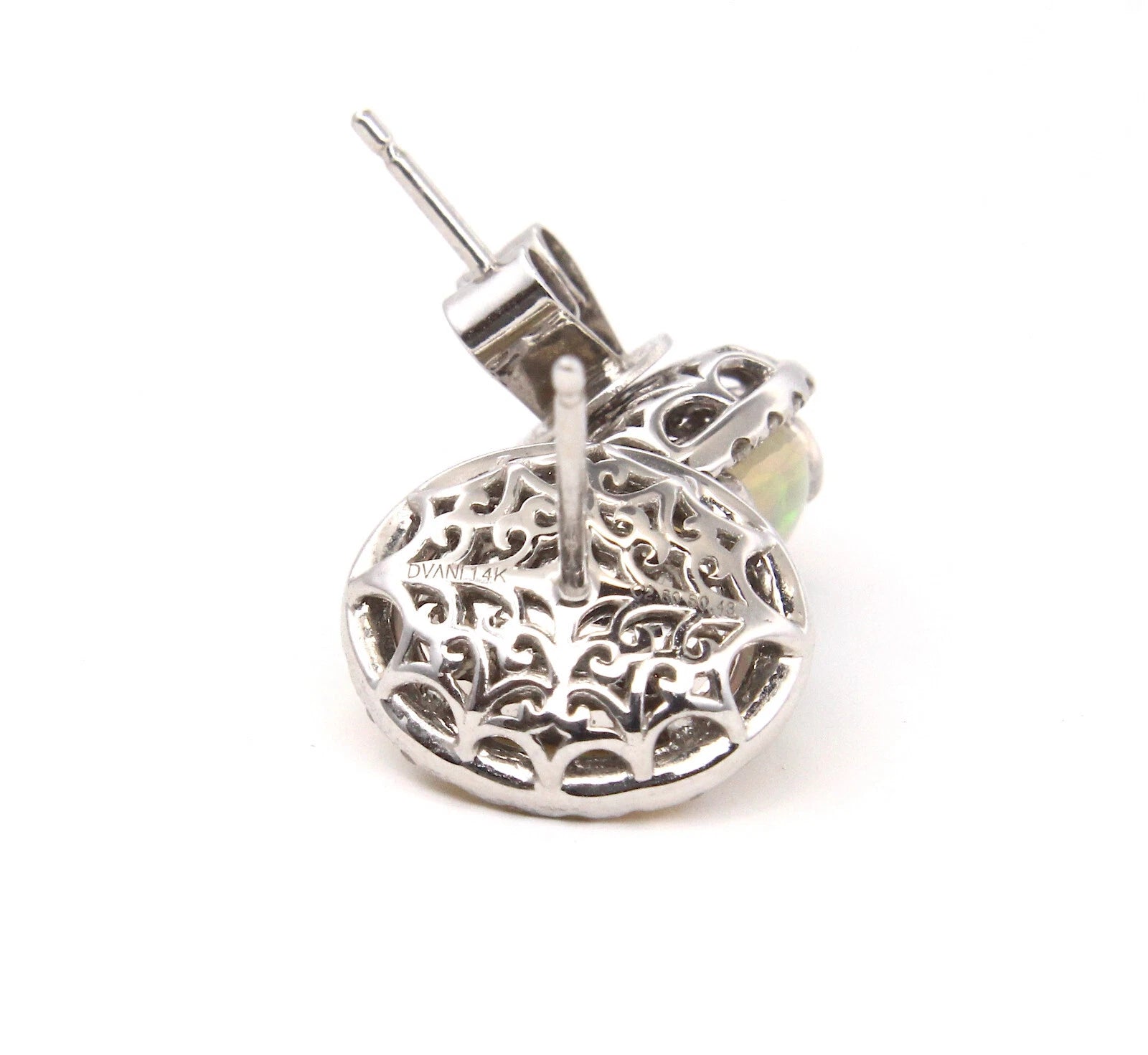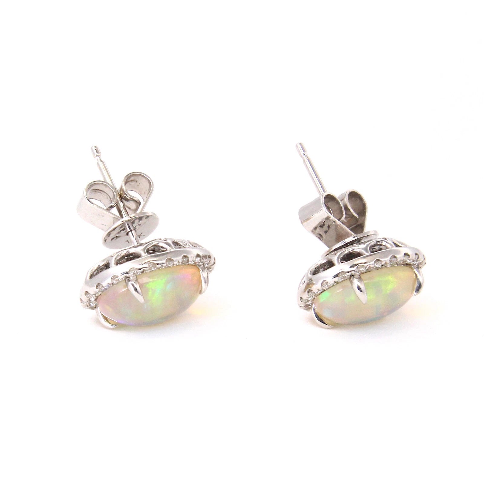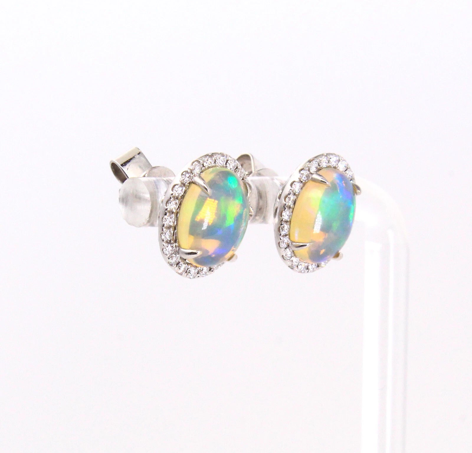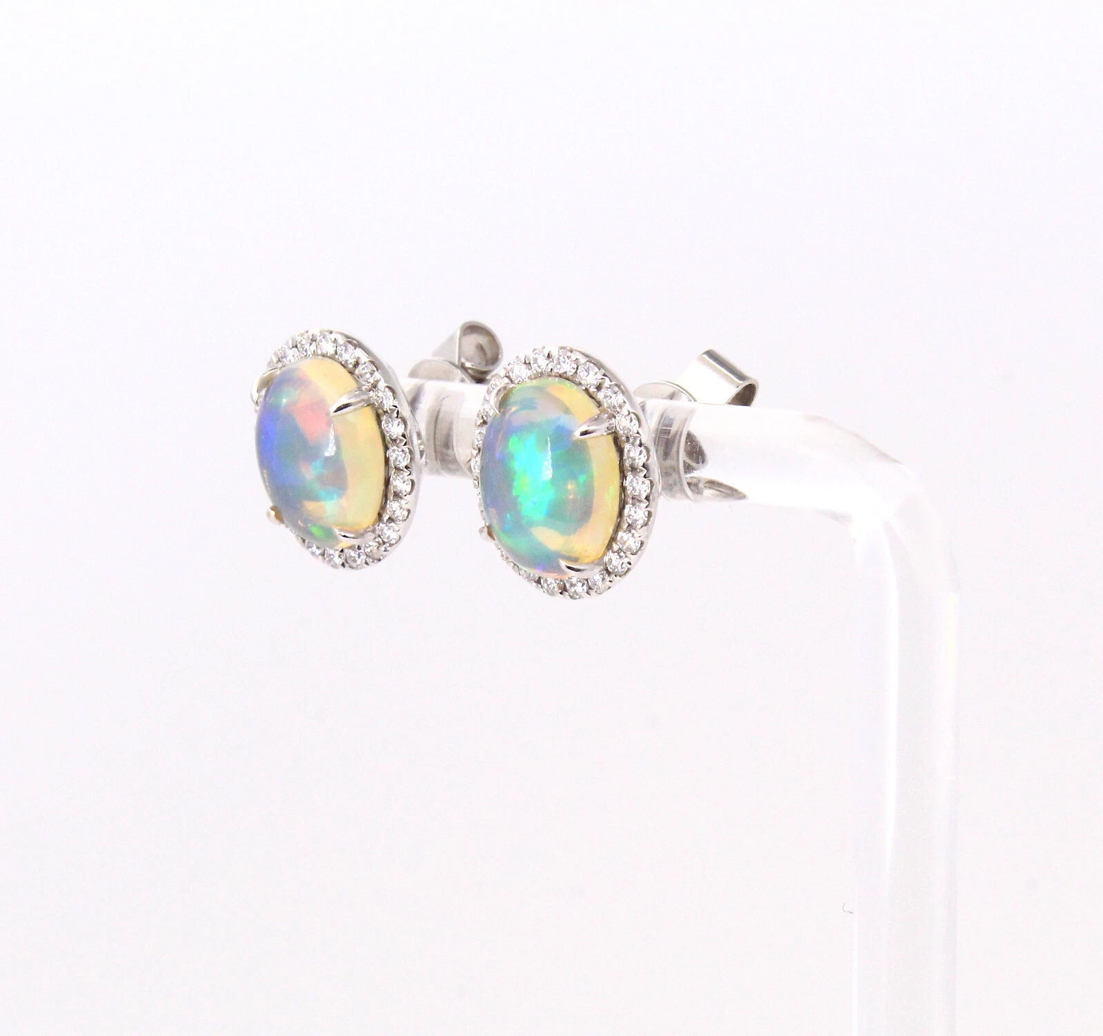 Jelly Opal and Diamond 0.50 CT Halo Stud Earrings 14K White Gold