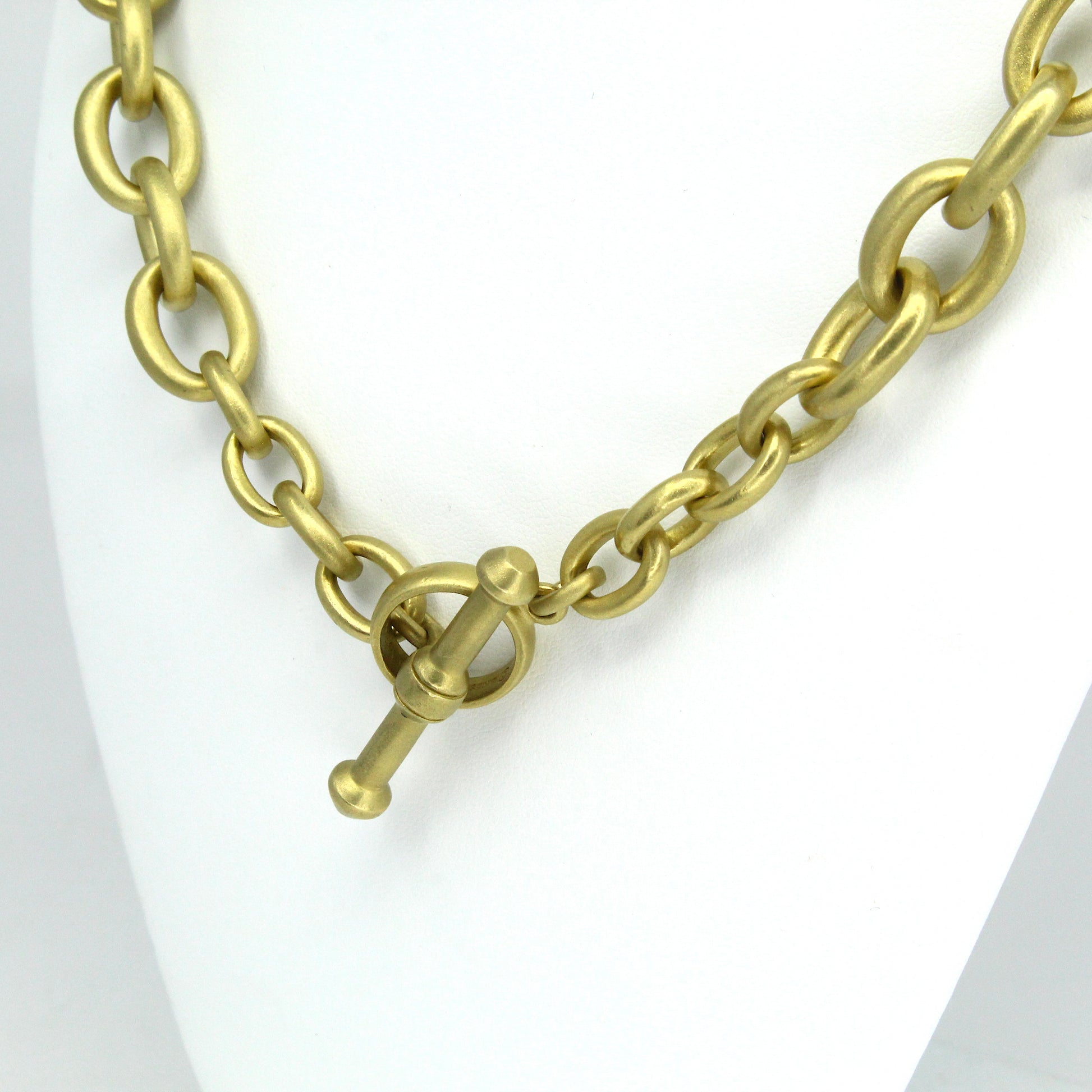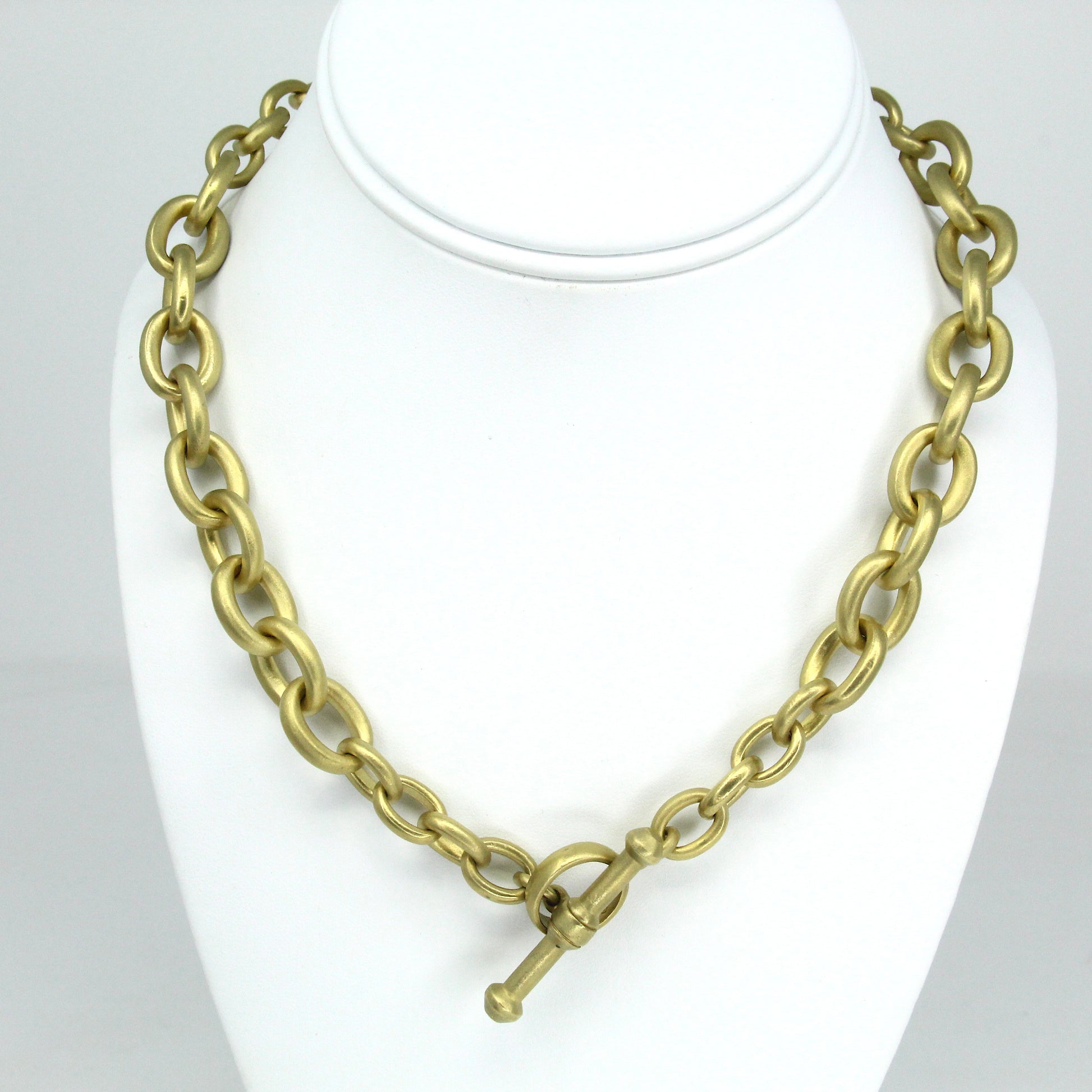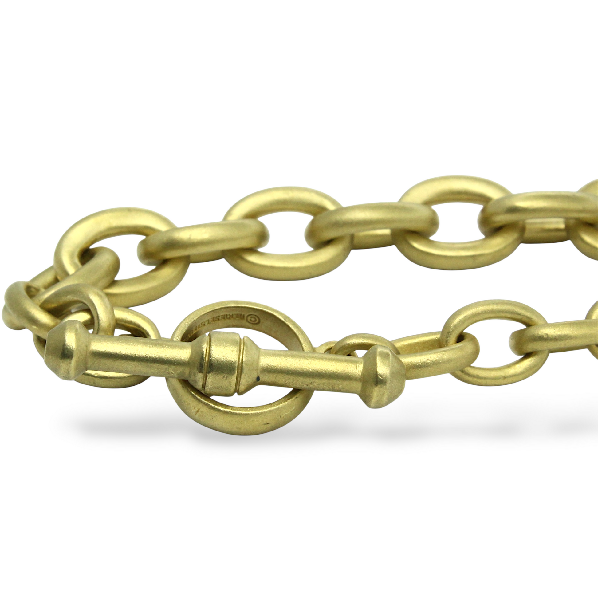 KIESELSTEIN CORD Heavy Brushed Link Toggle Necklace 18K Yellow Gold Chain 18"