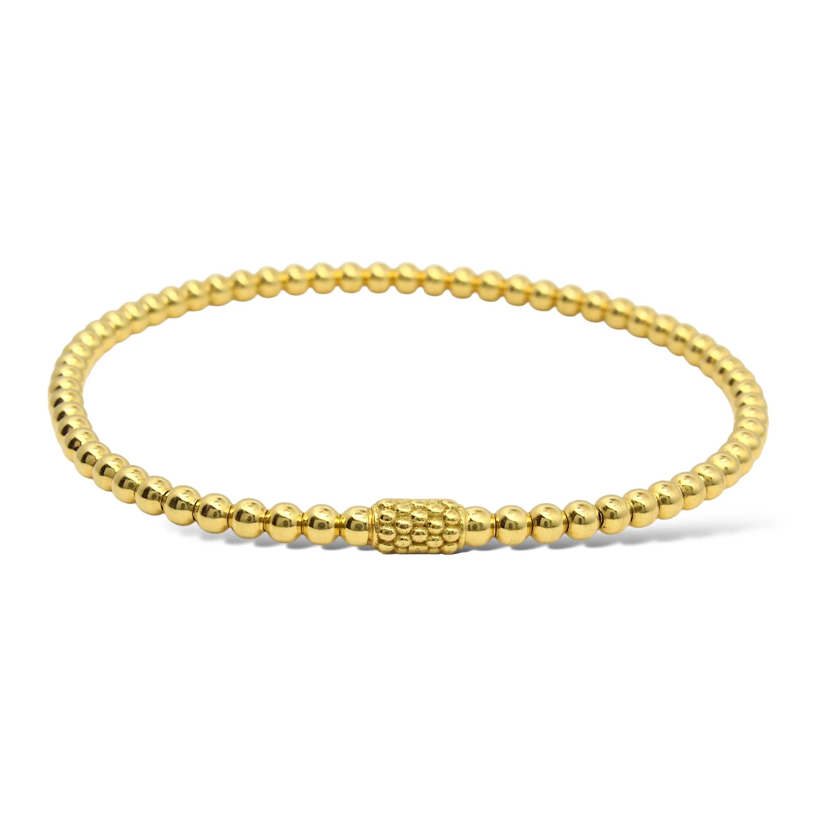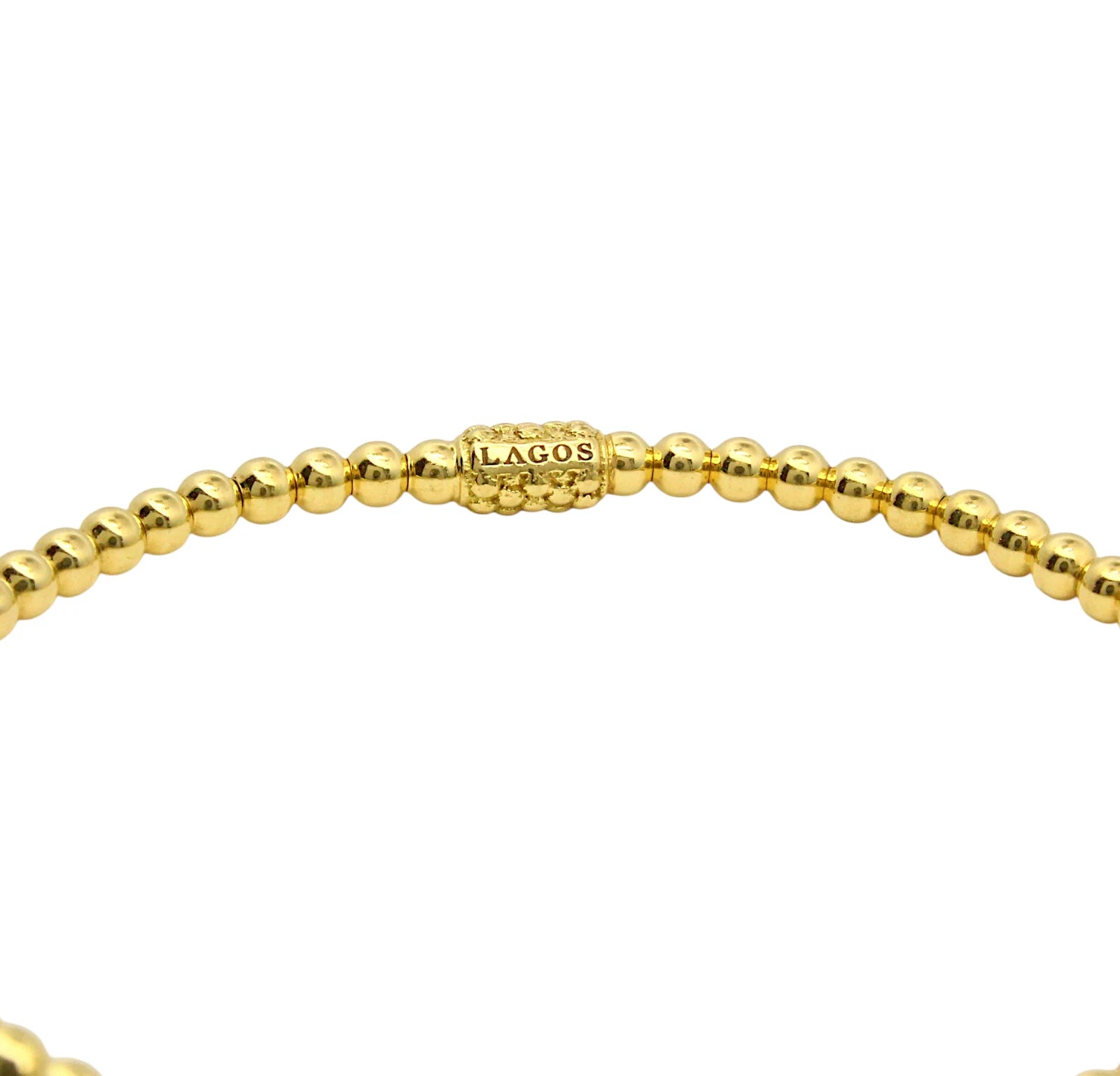 LAGOS Flexible Beaded Bangle Caviar Bracelet 18K Yellow Gold 7 Inches
