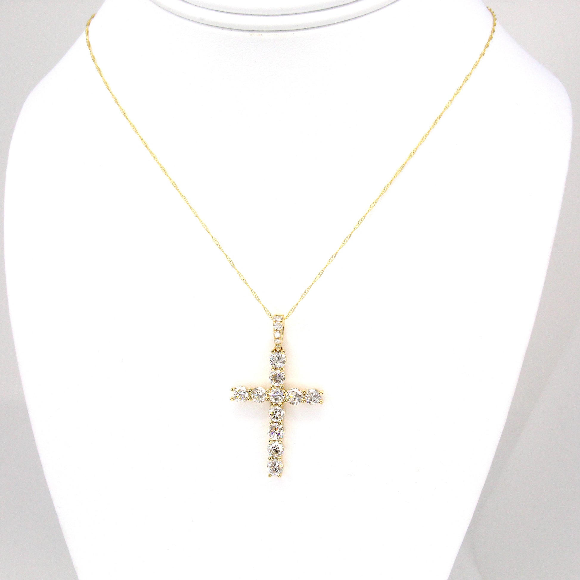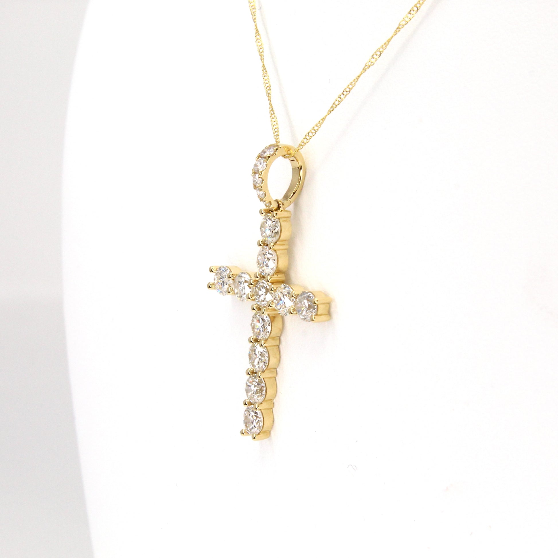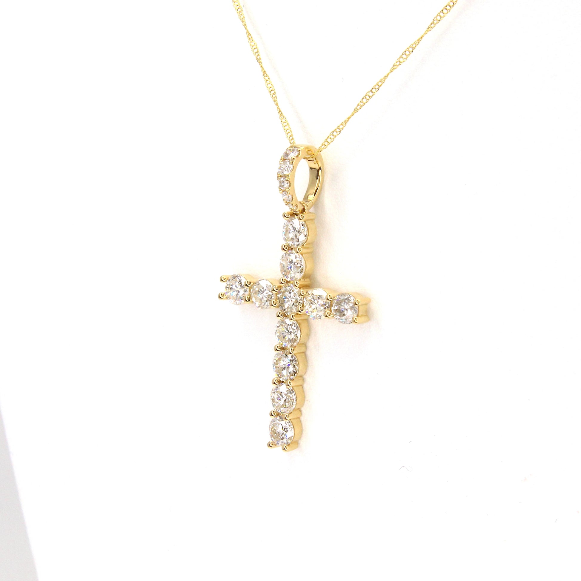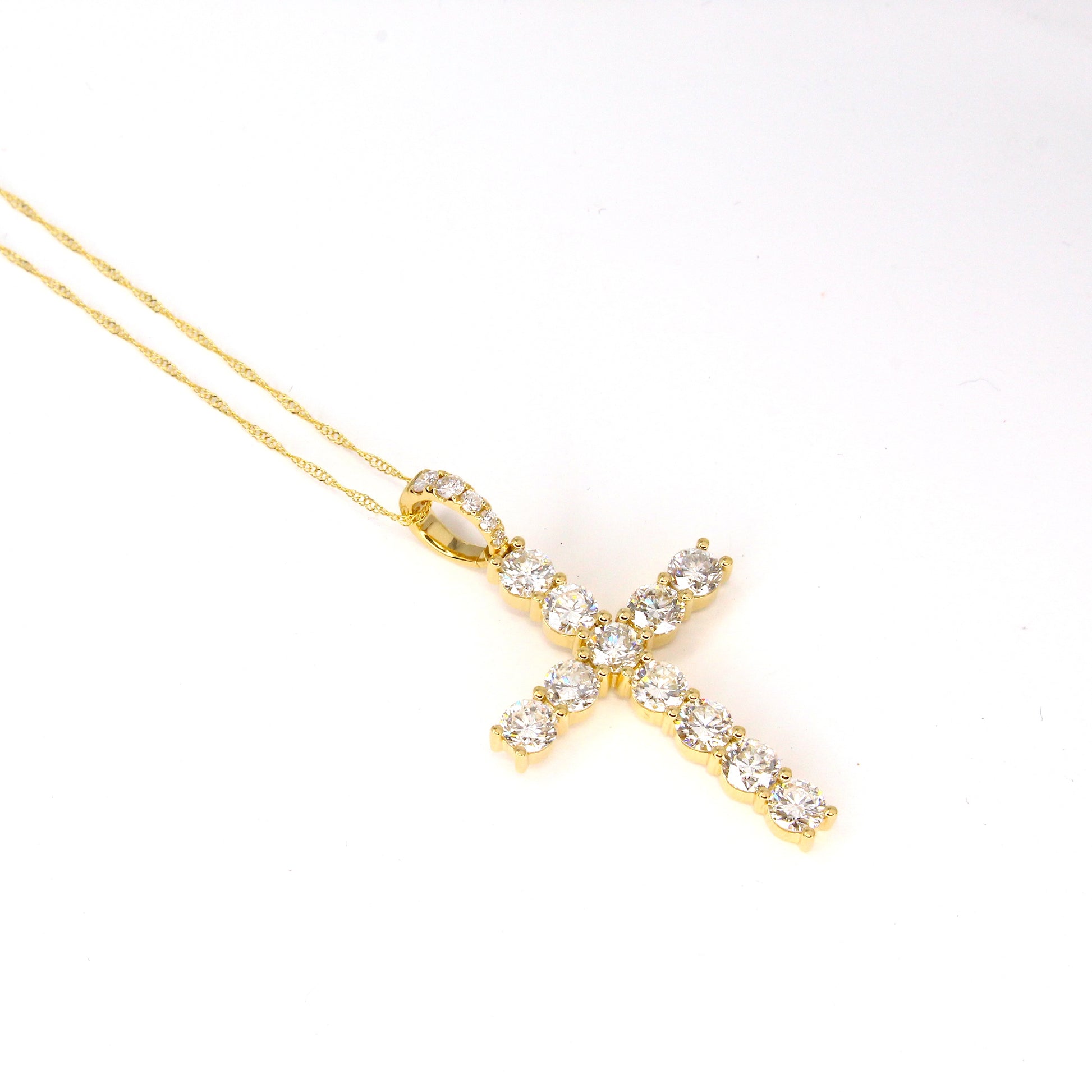 Large Cross Diamond Pendant Timeless Necklace 3.1 CT 18K Yellow Gold