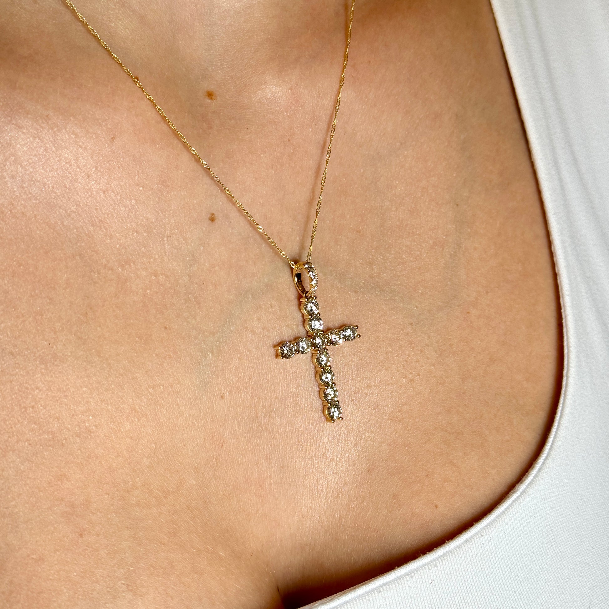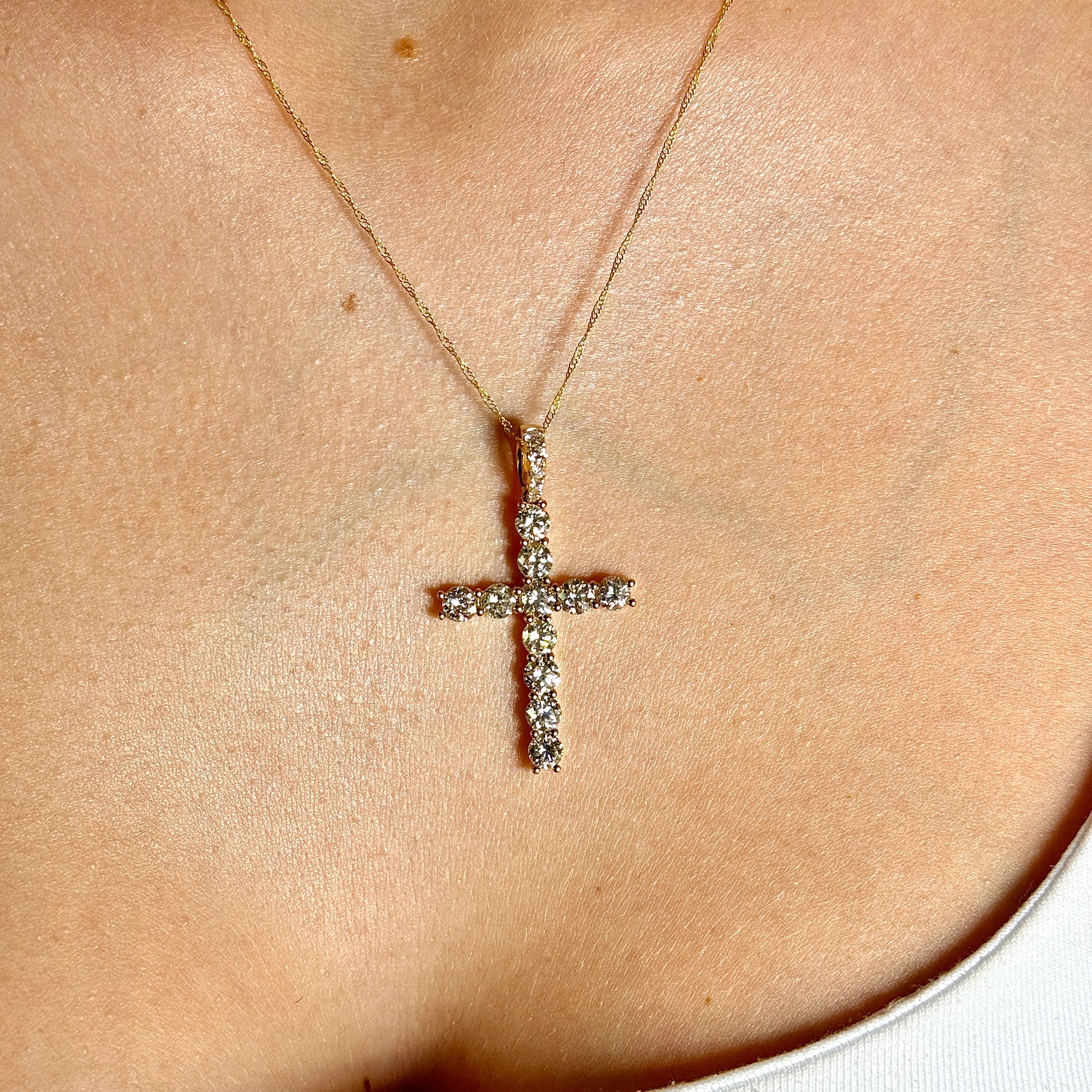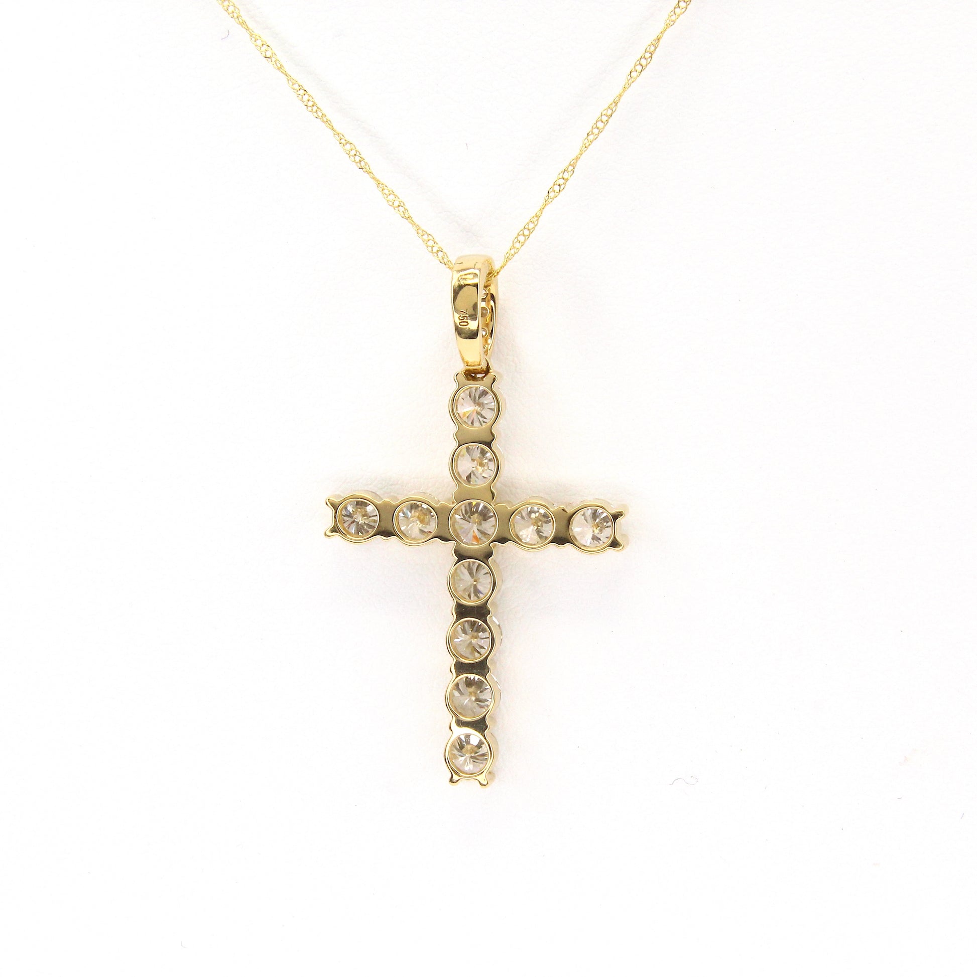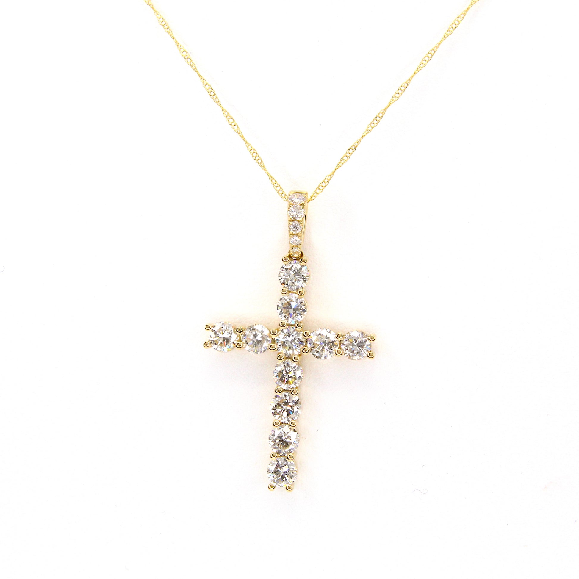Large Cross Diamond Pendant Timeless Necklace 3.1 CT 18K Yellow Gold