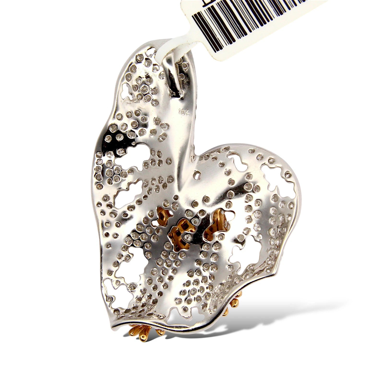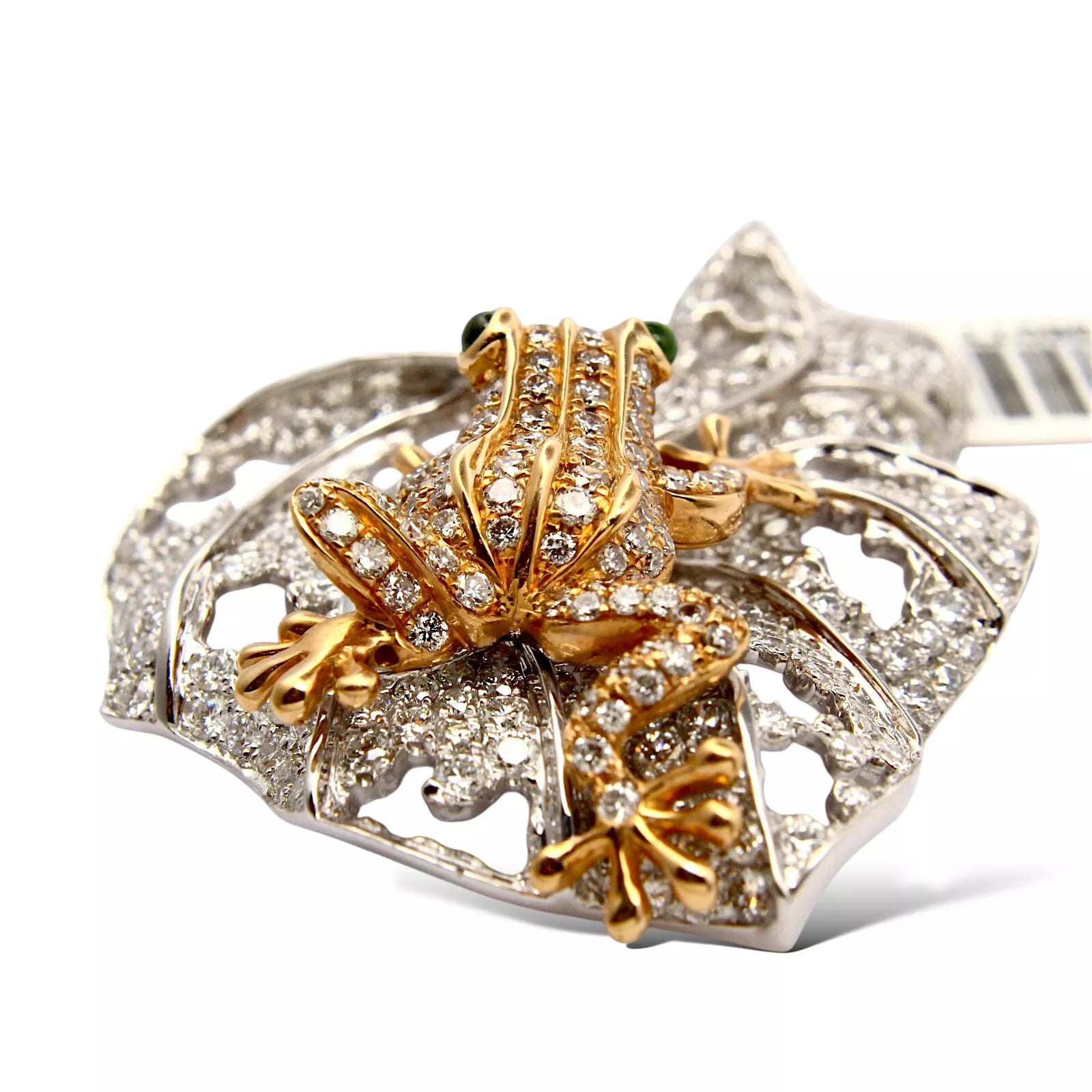 Large Estate Frog Lillypad Natural Diamond Pendant 18k White and Rose Gold