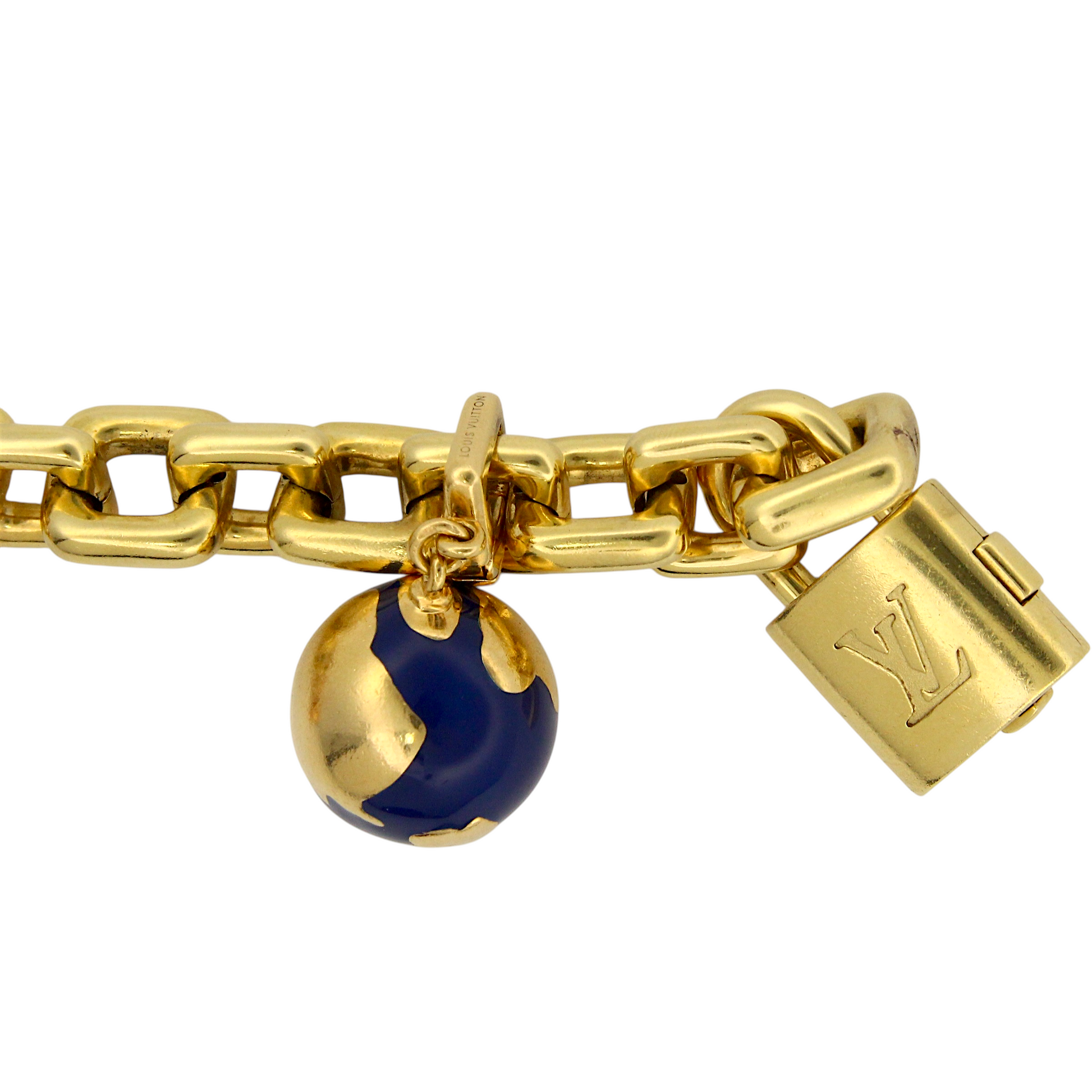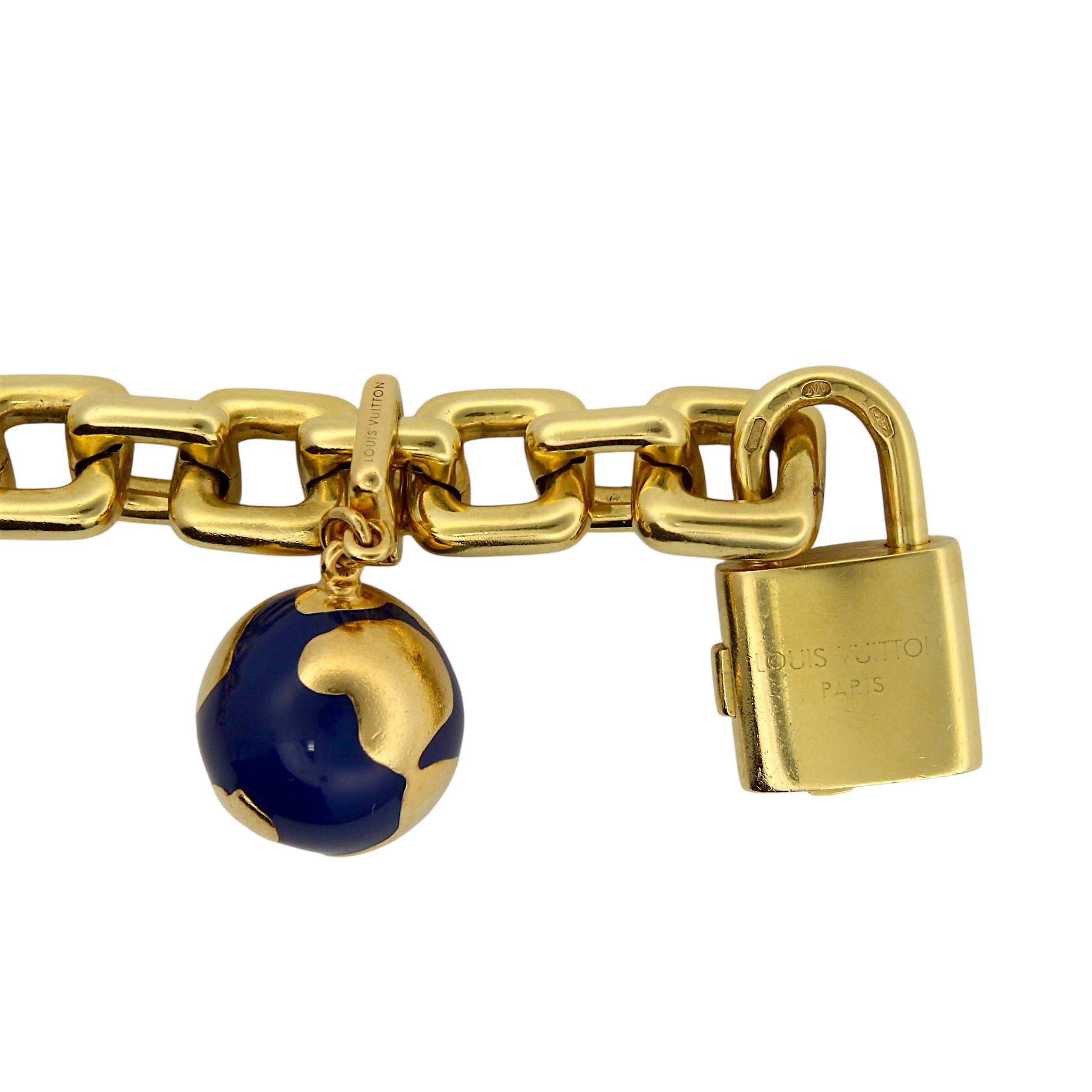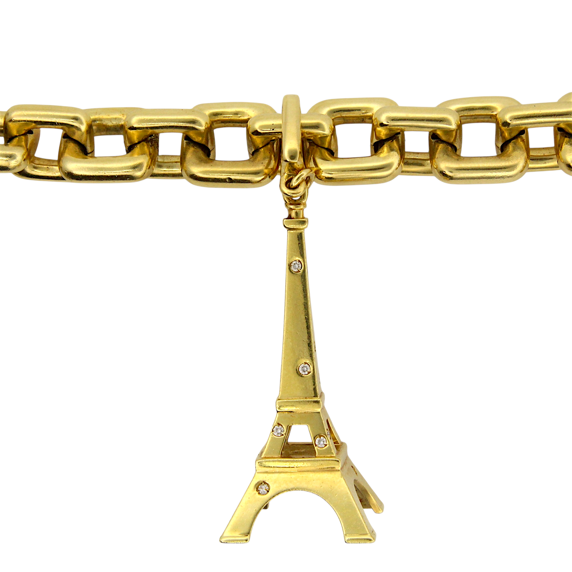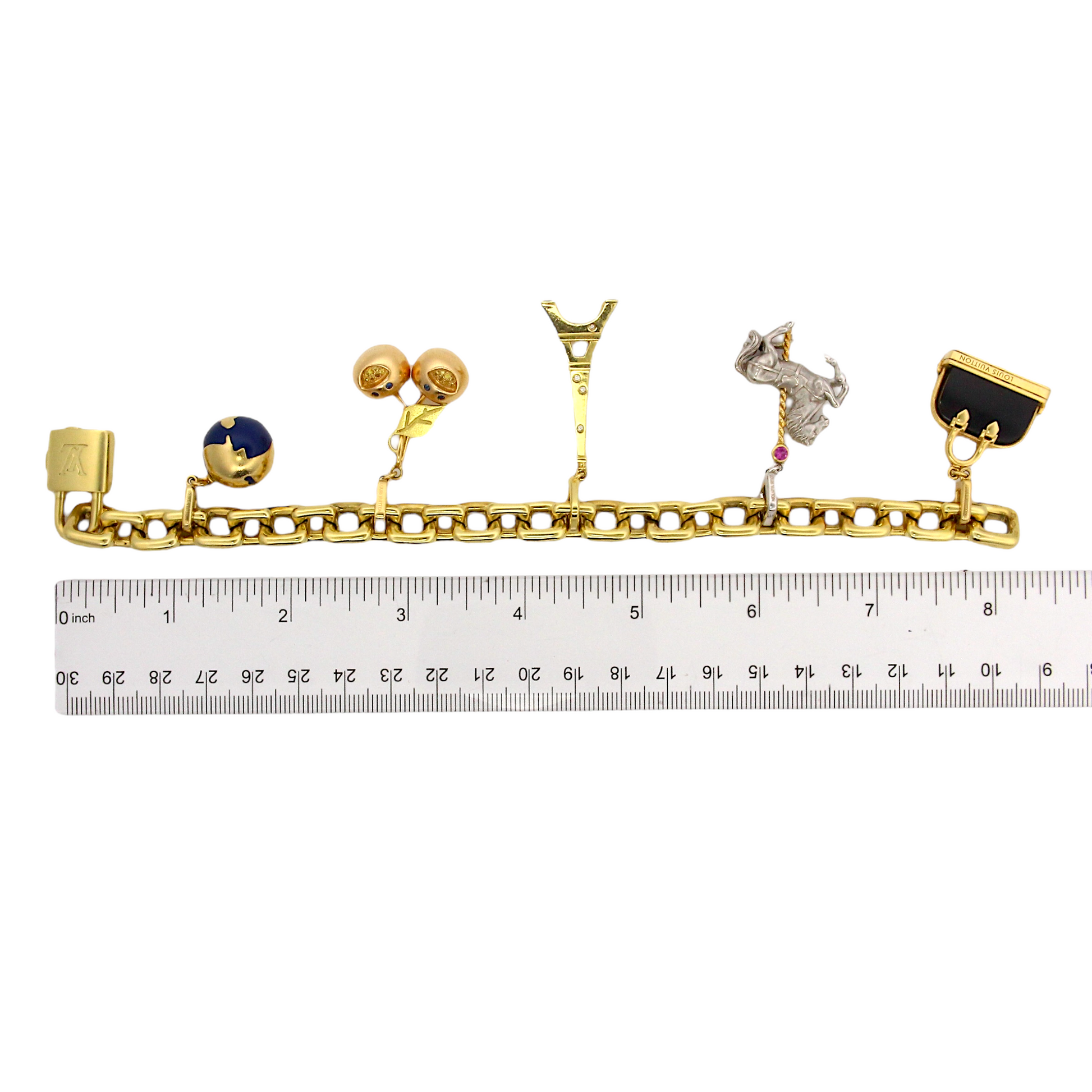 Louis Vuitton 18k Yellow Gold Charm Bracelet Eiffel Tower Horse Bag France Box