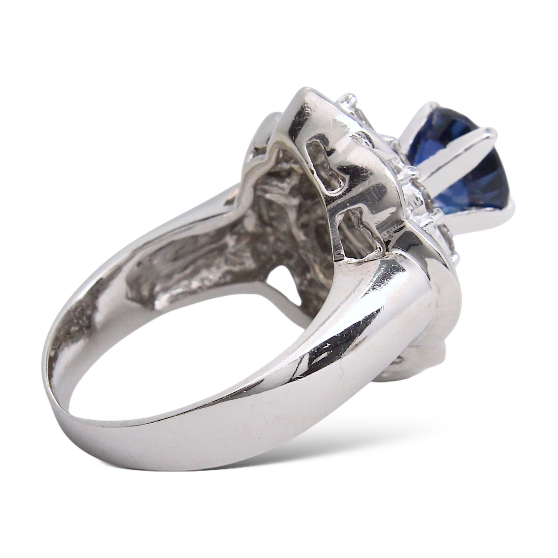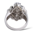 The ring presents a bold, elegant footprint on the hand with a sculptural halo formation, giving it an elevated and eye-catching look.