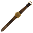 The photos are enlarged to show the condition of the watch. The watch shows some signs of wear in the form of hairline scratches and scrapes throughout the case and buckle, the most notable scrape being at the edge of the case at the 1 o'clock position. This watch has never been polished. The leather band is in used condition but is still functioning.