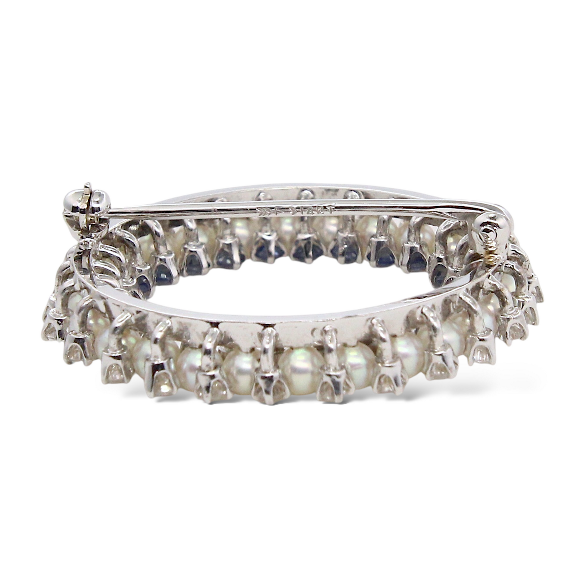 Pearl Sapphire Brooch Natural Diamonds Open Center Pin 14K White Gold