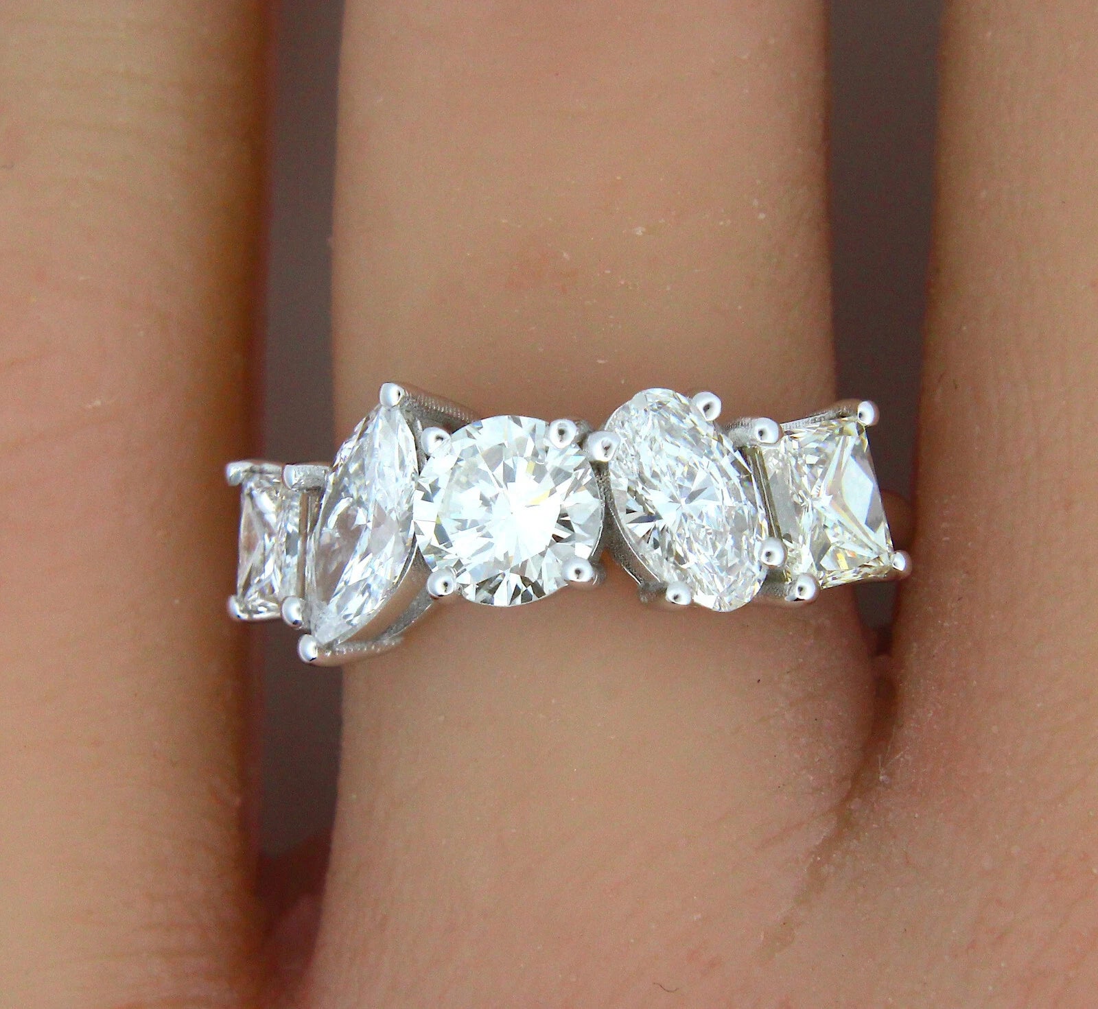Princess Marquise Oval Round Diamond Band 5 Stone Ring 18K White Gold 2.90 CT