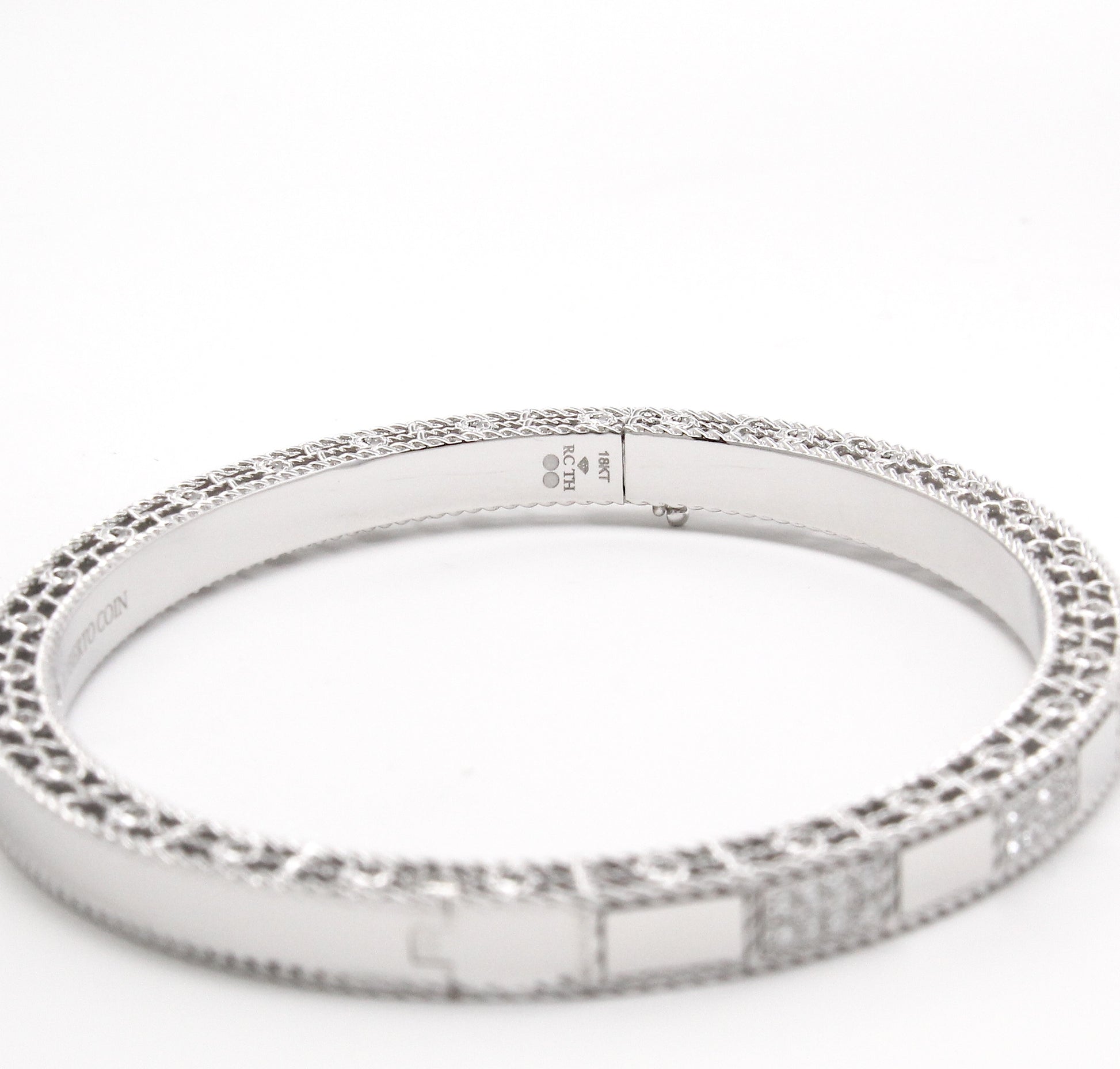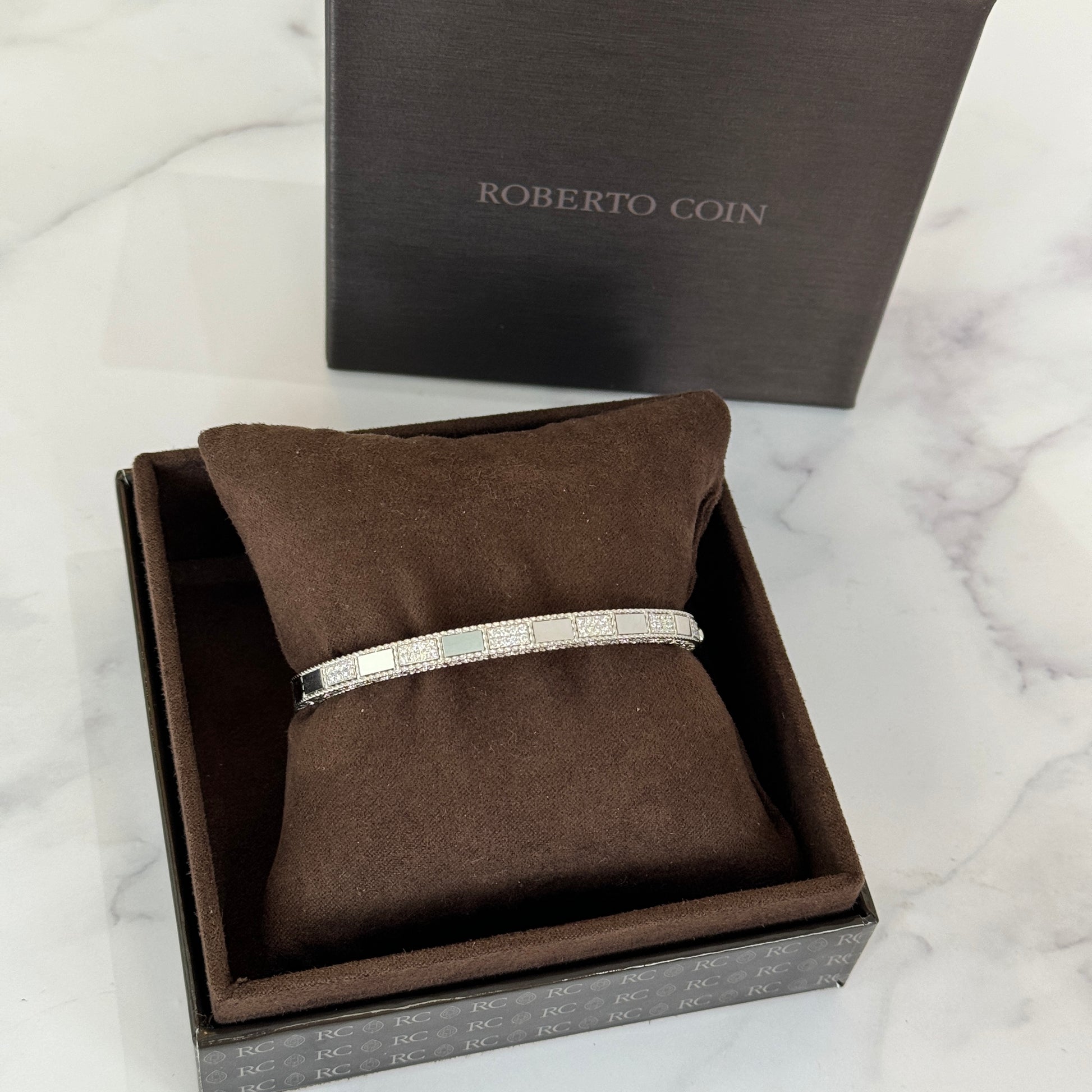 ROBERTO COIN Italy Art Deco Mosaic Diamond 0.40 CT Pavé Bangle 18k White Gold