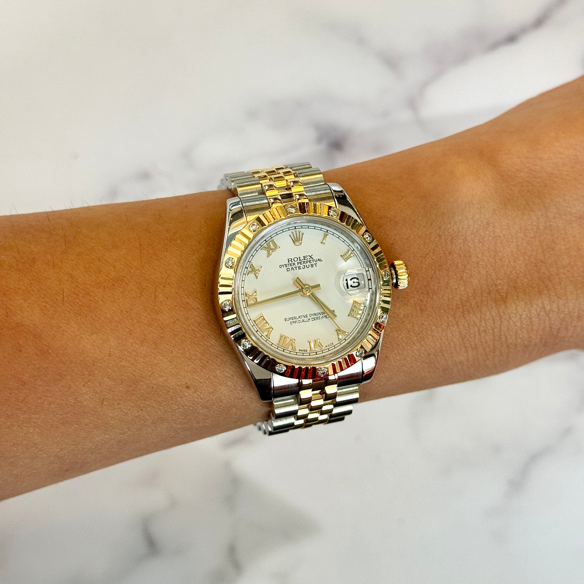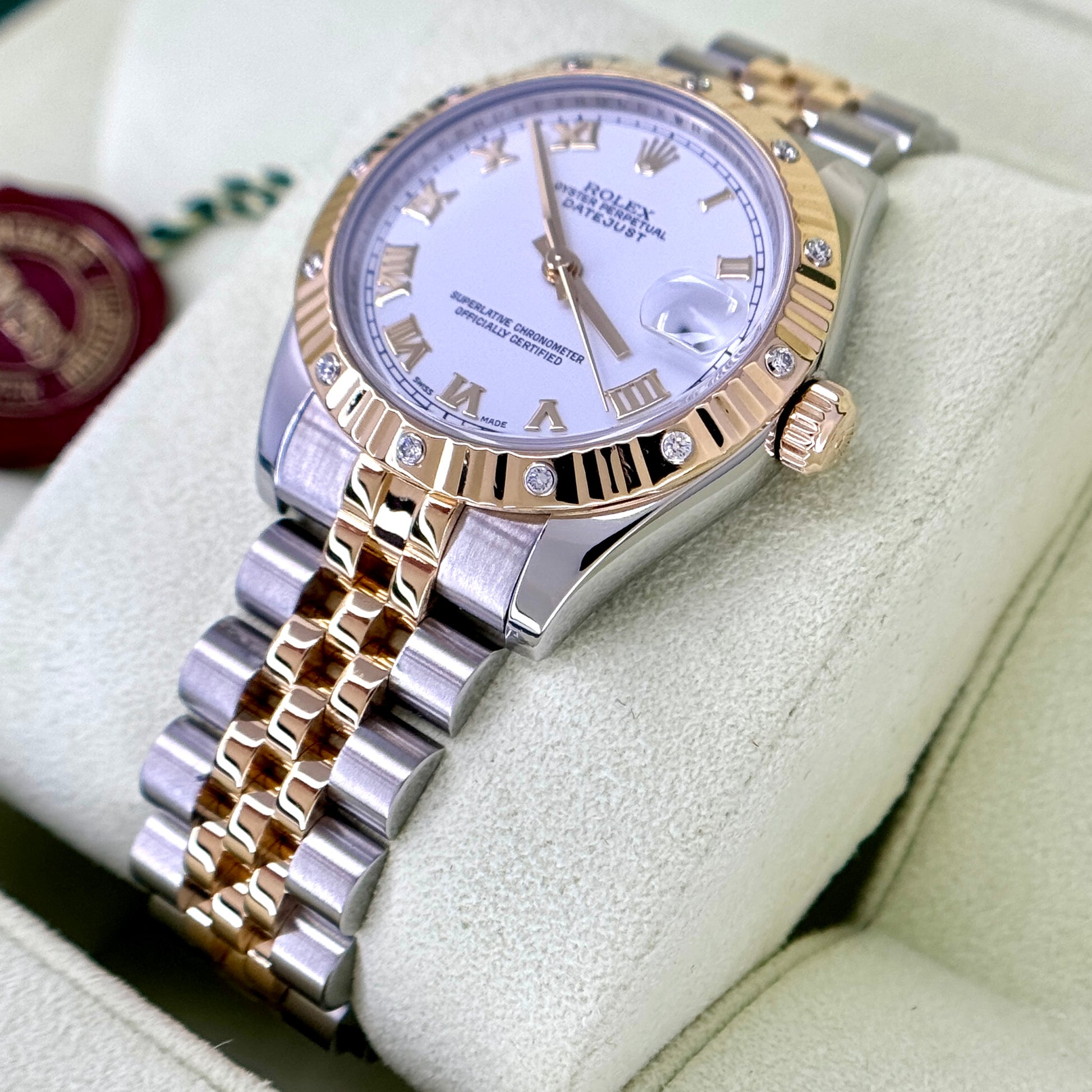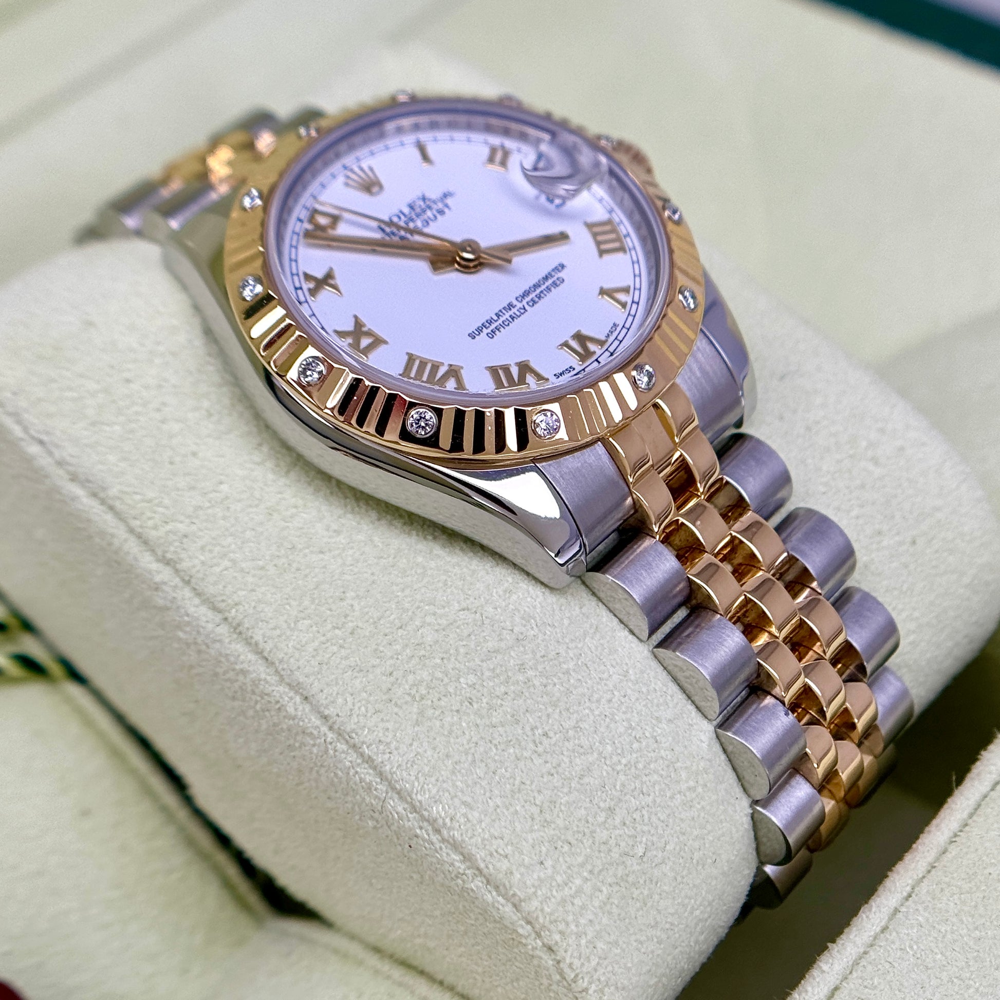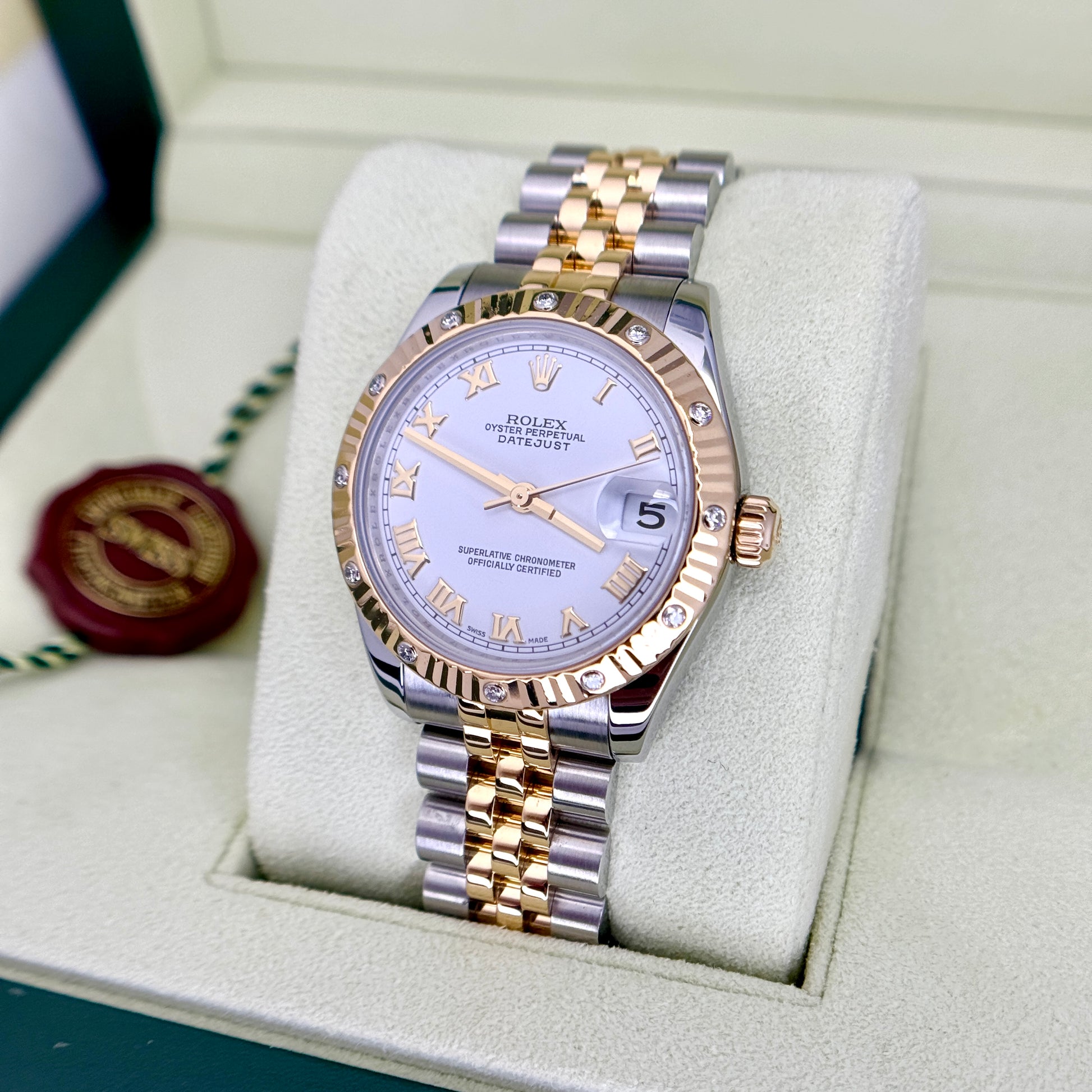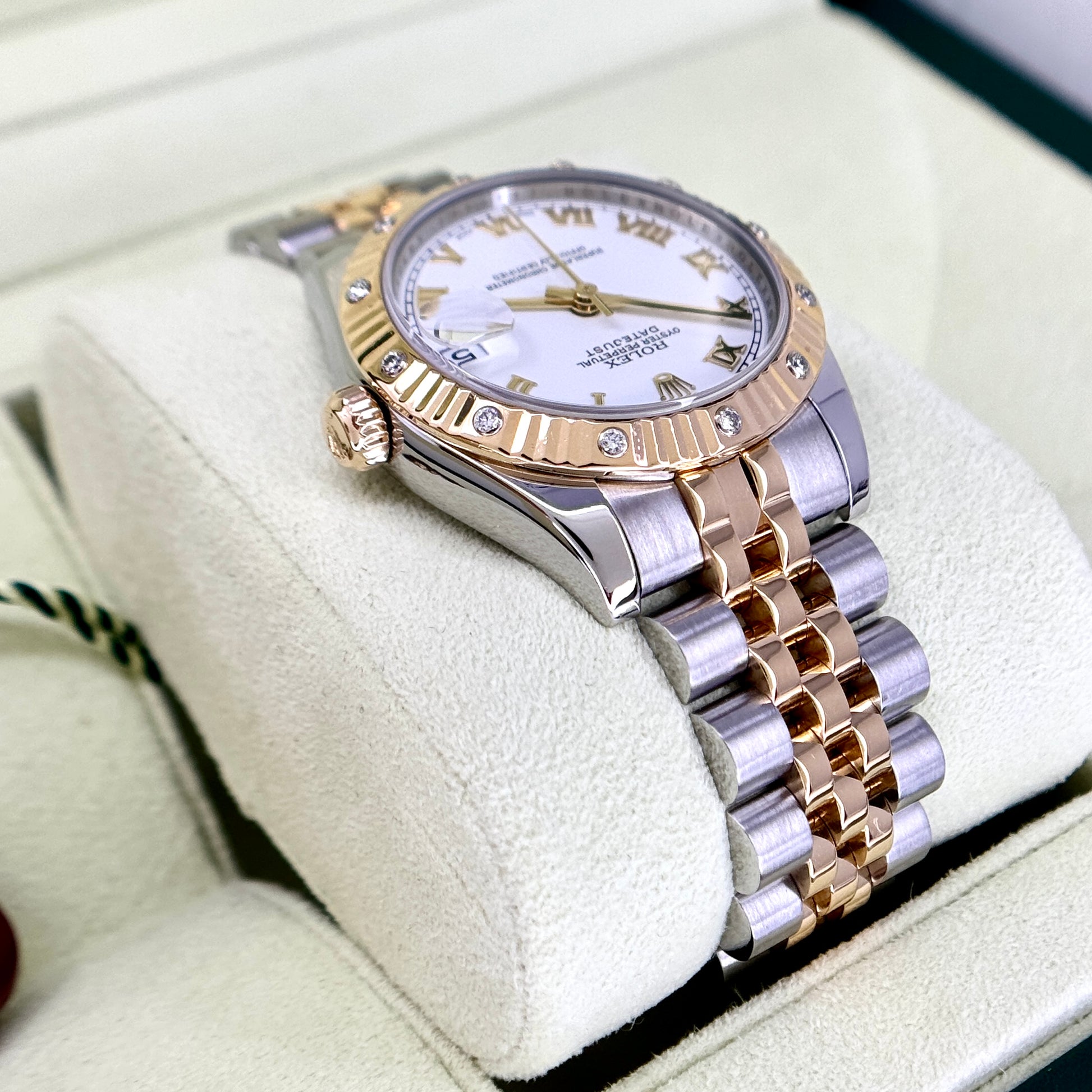 Rolex Datejust 31 BOX PAPERS Midsize Factory Diamond Bezel Jubilee White Roman