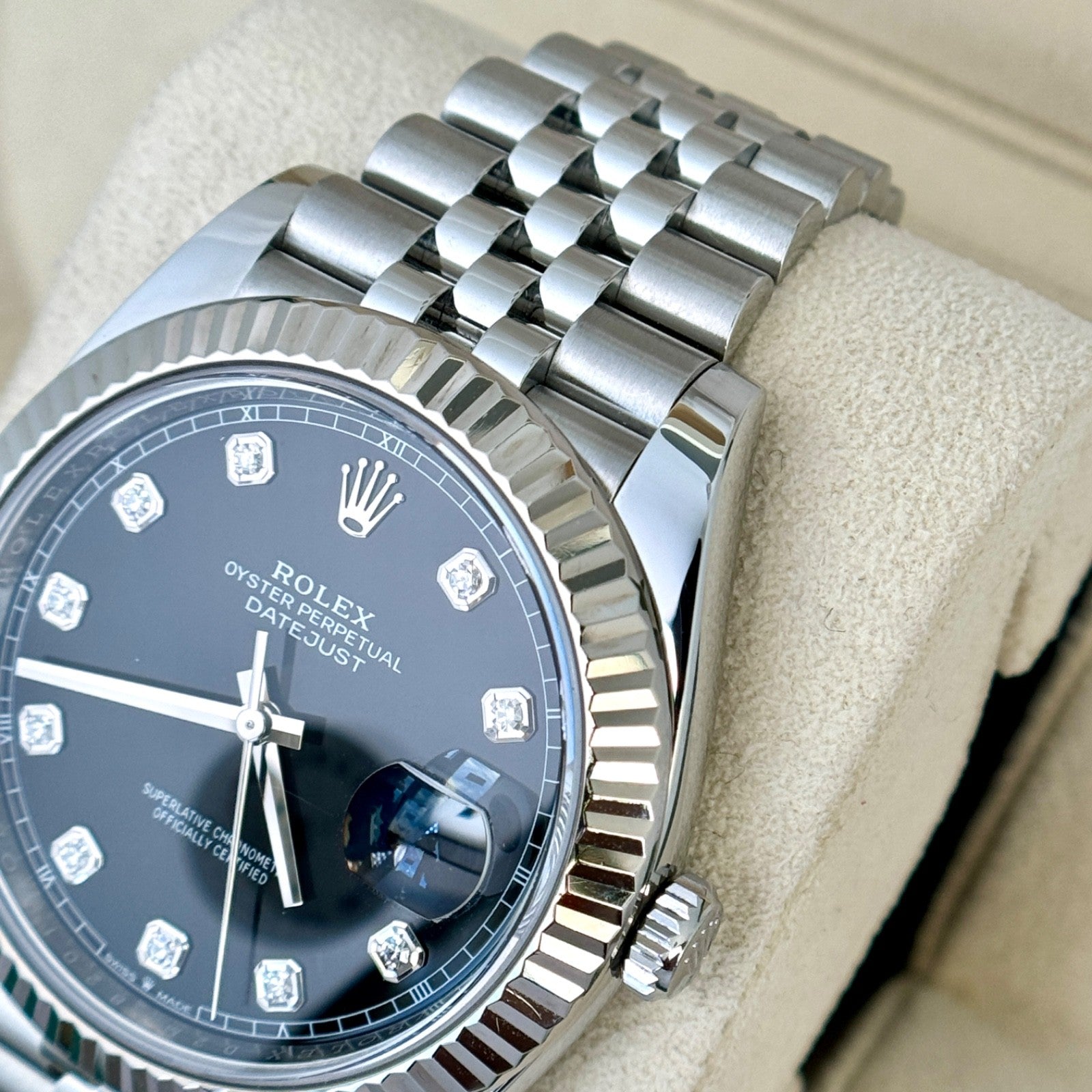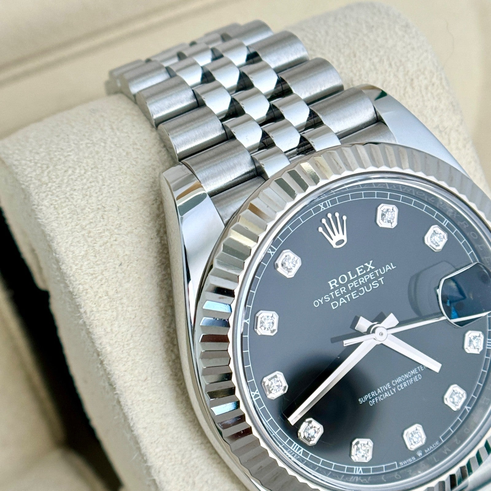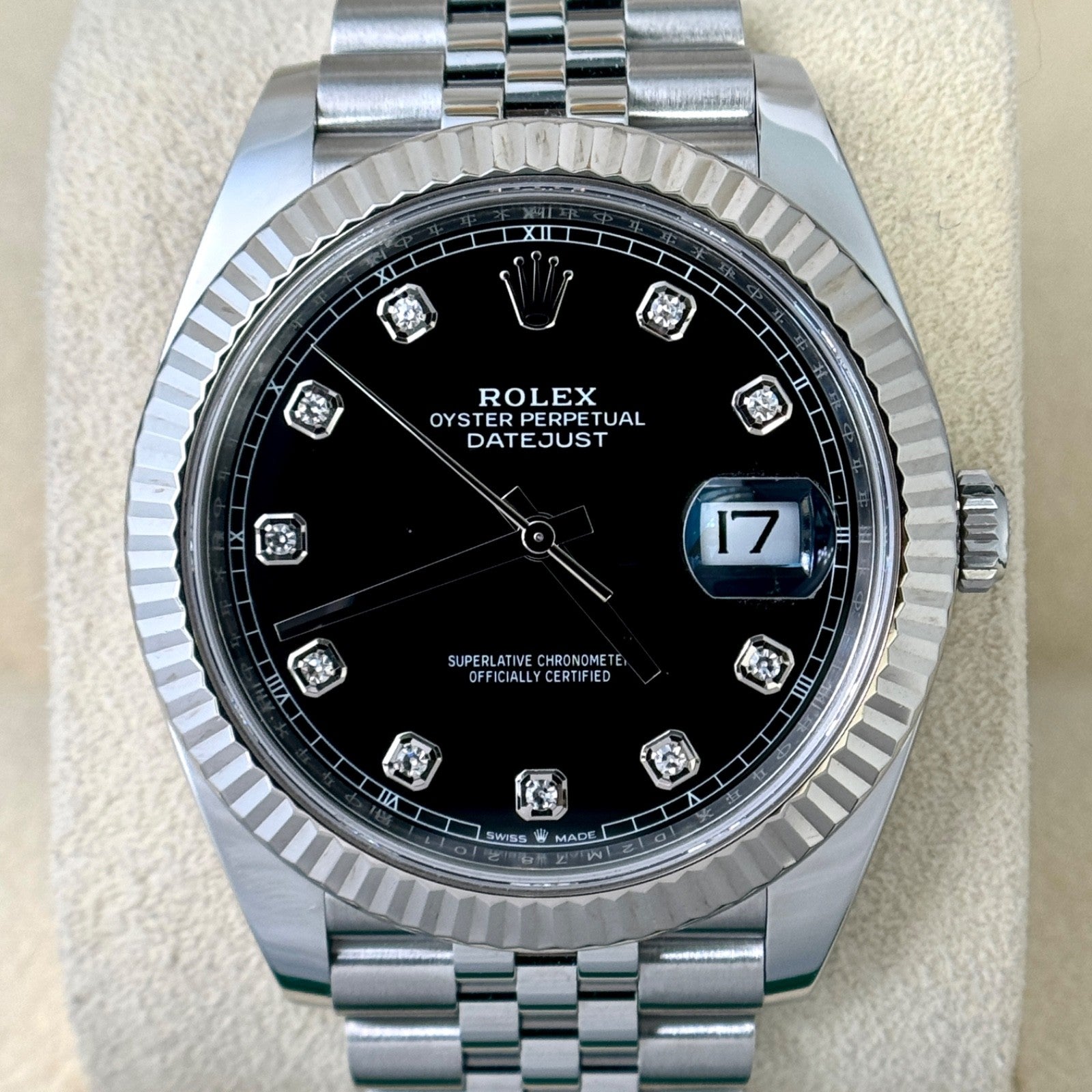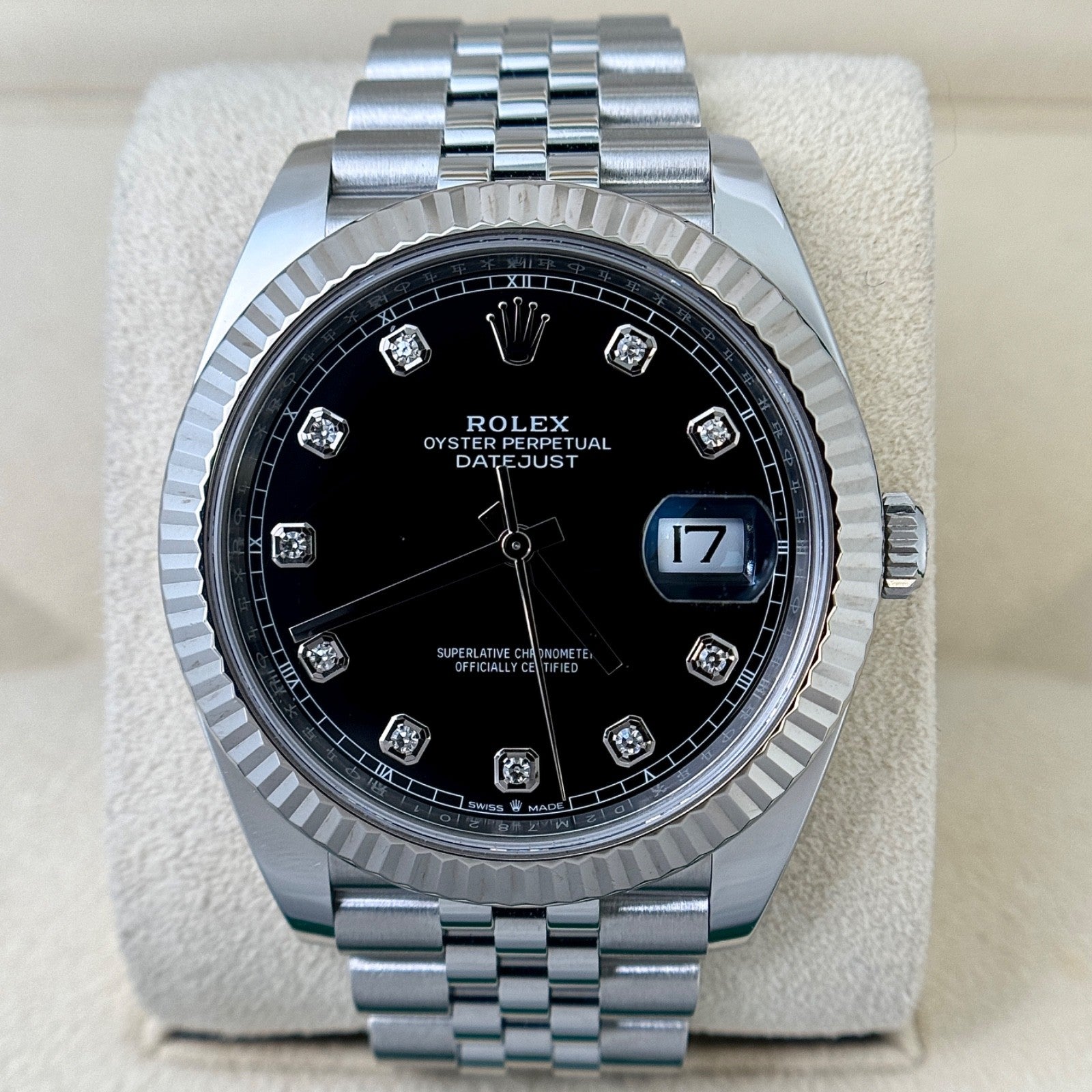 Rolex Datejust 41 Steel Black Diamond Dial Fluted Bezel Jubilee Bracelet 2022