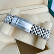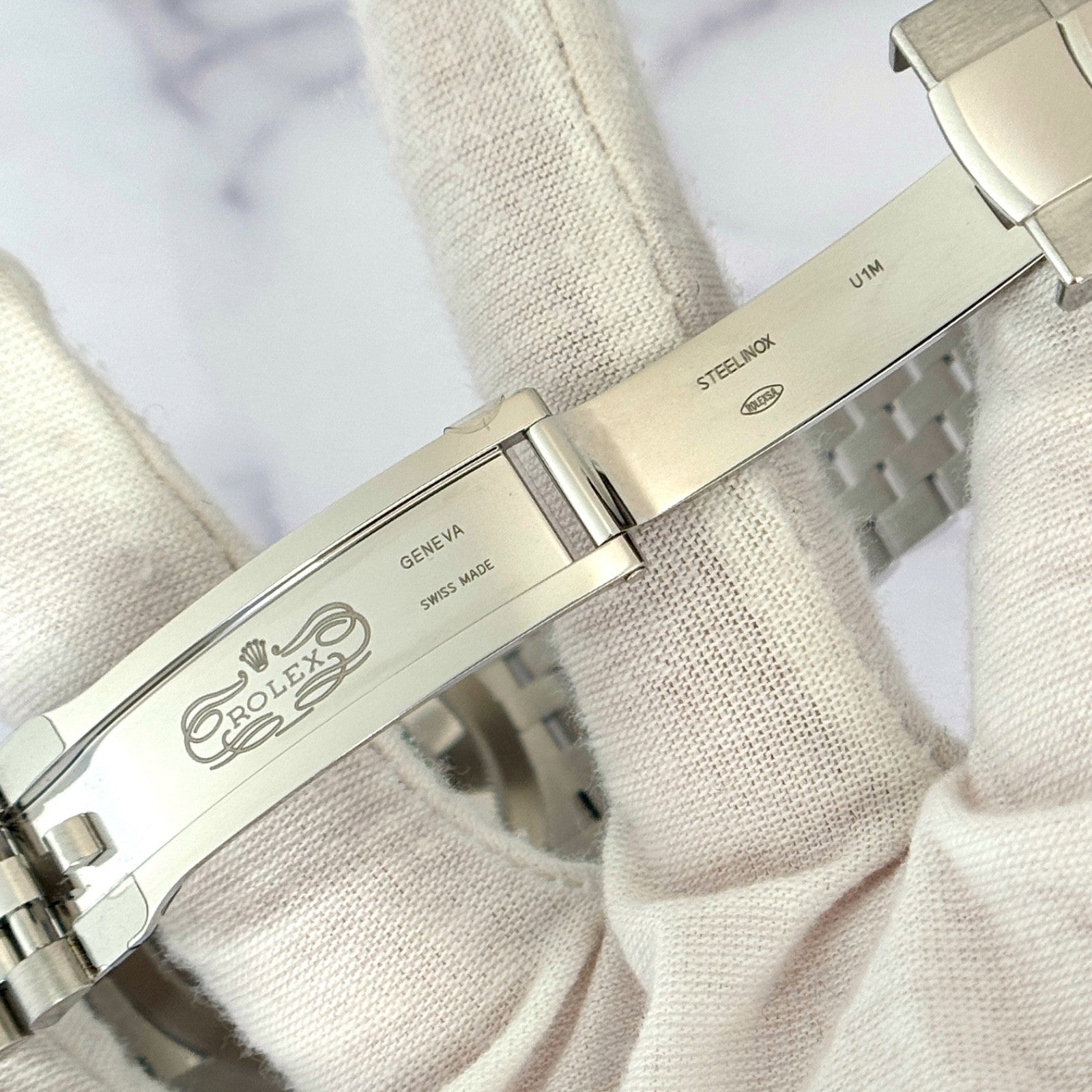 The watch is fitted with the original Jubilee bracelet in stainless steel. It is secured with a folding Oysterclasp, offering comfort and security on the wrist. The bracelet shows no sag and has additional links.