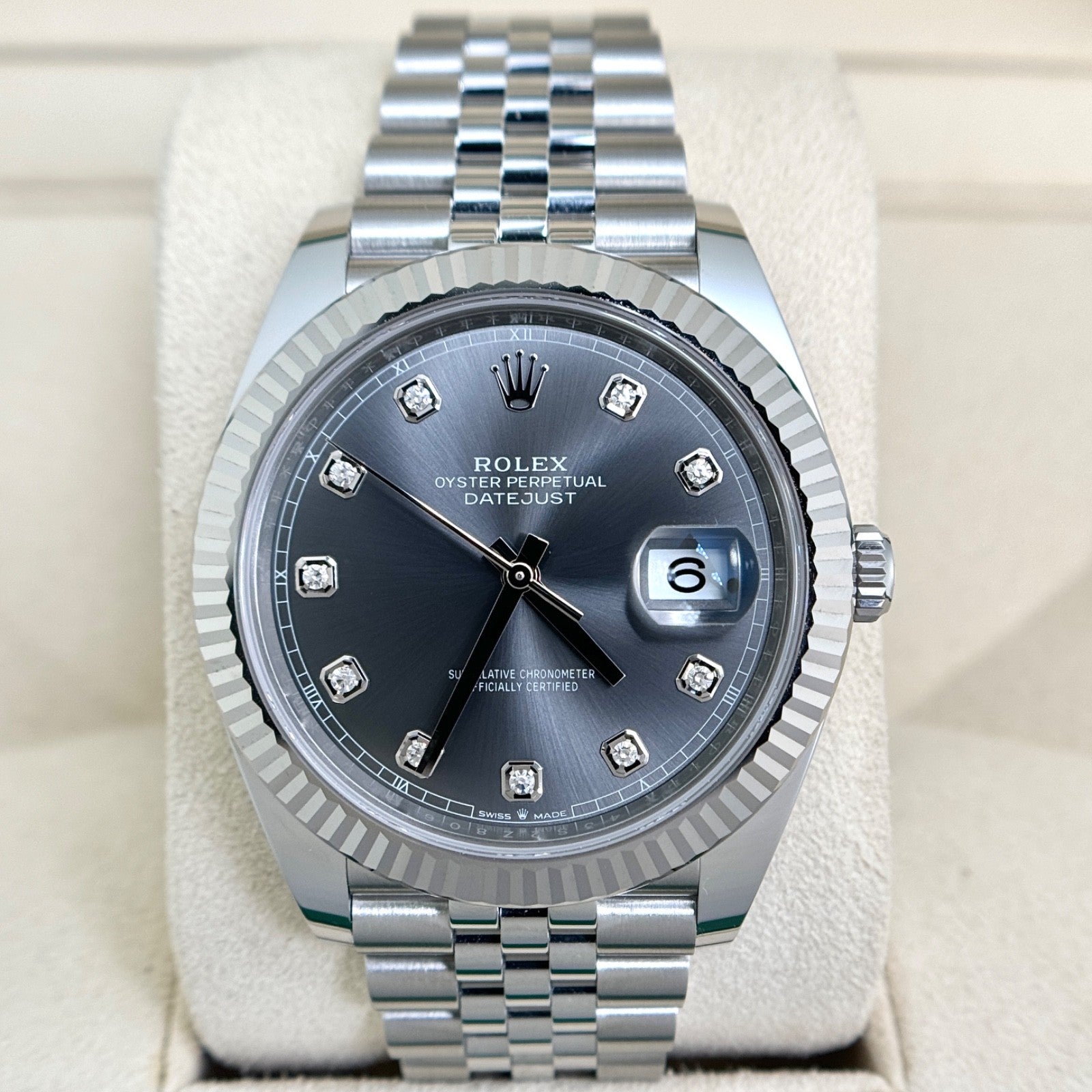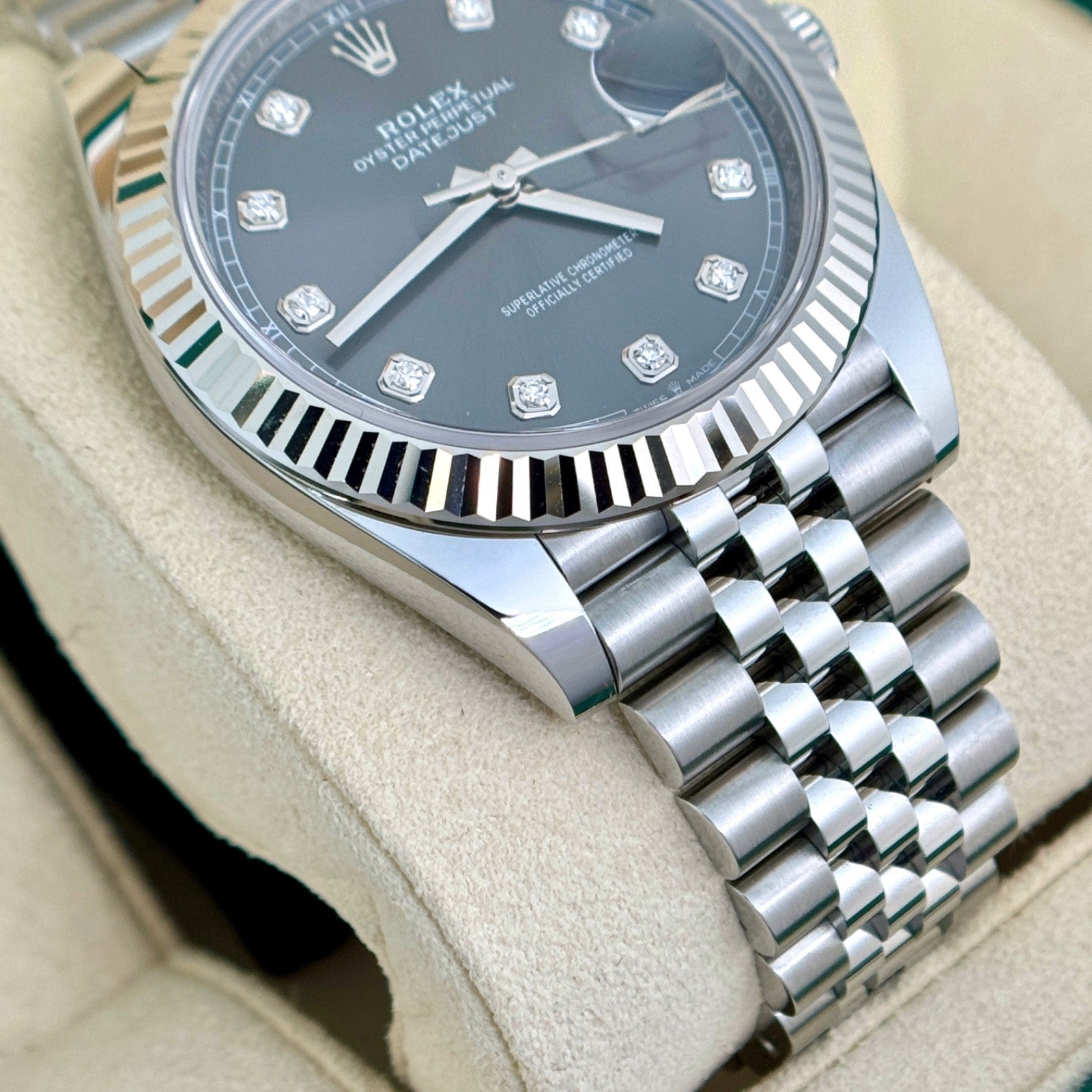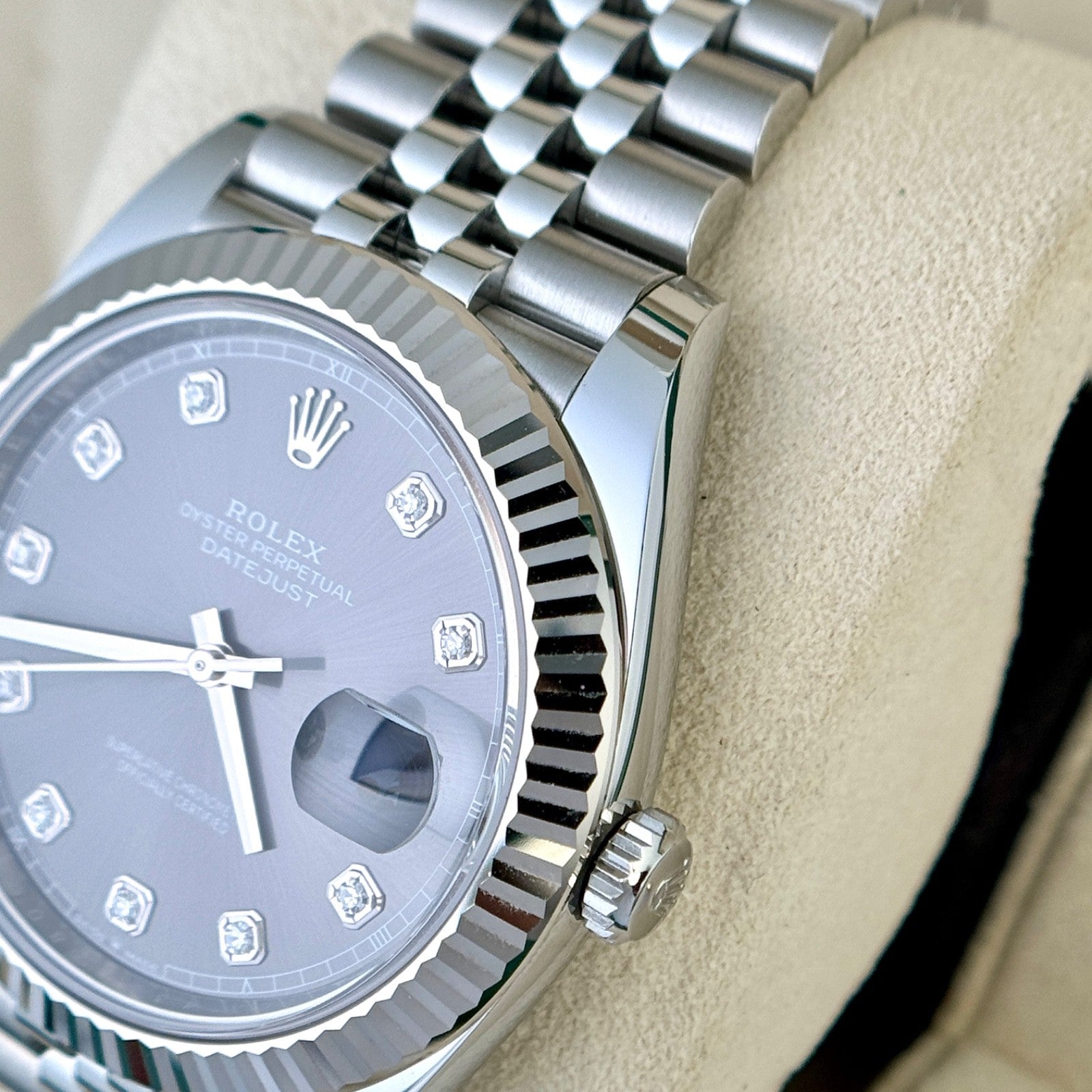 Rolex Datejust 41 Steel Rhodium Grey Diamond Dial Fluted Bezel Jubilee 2022