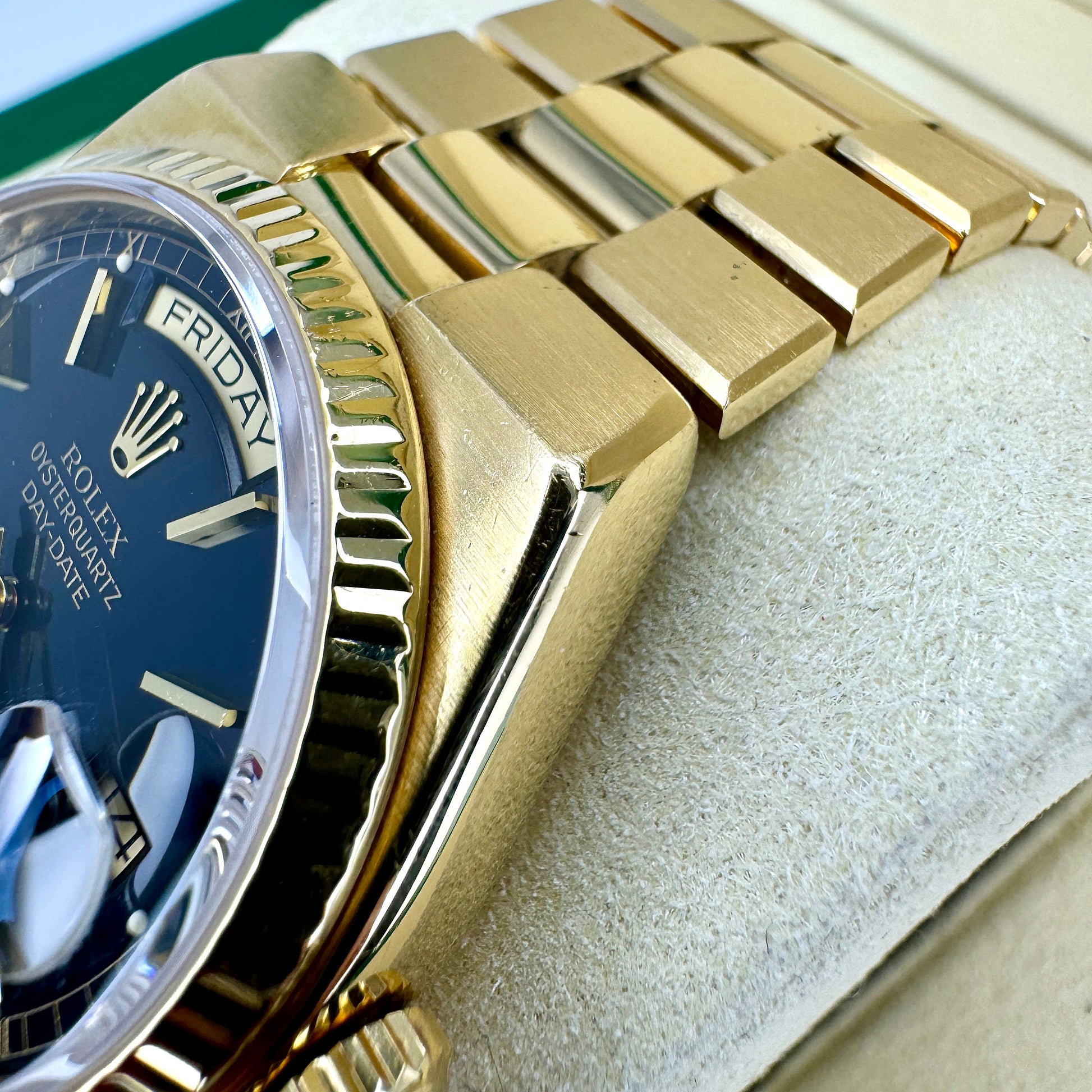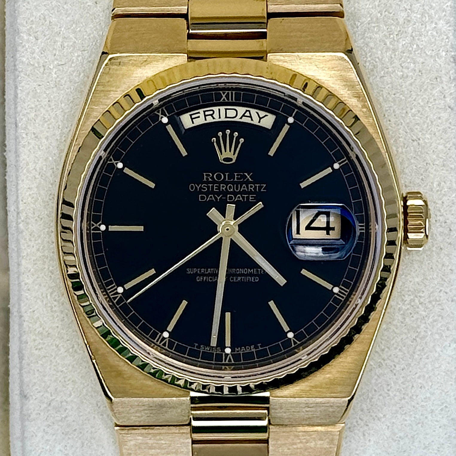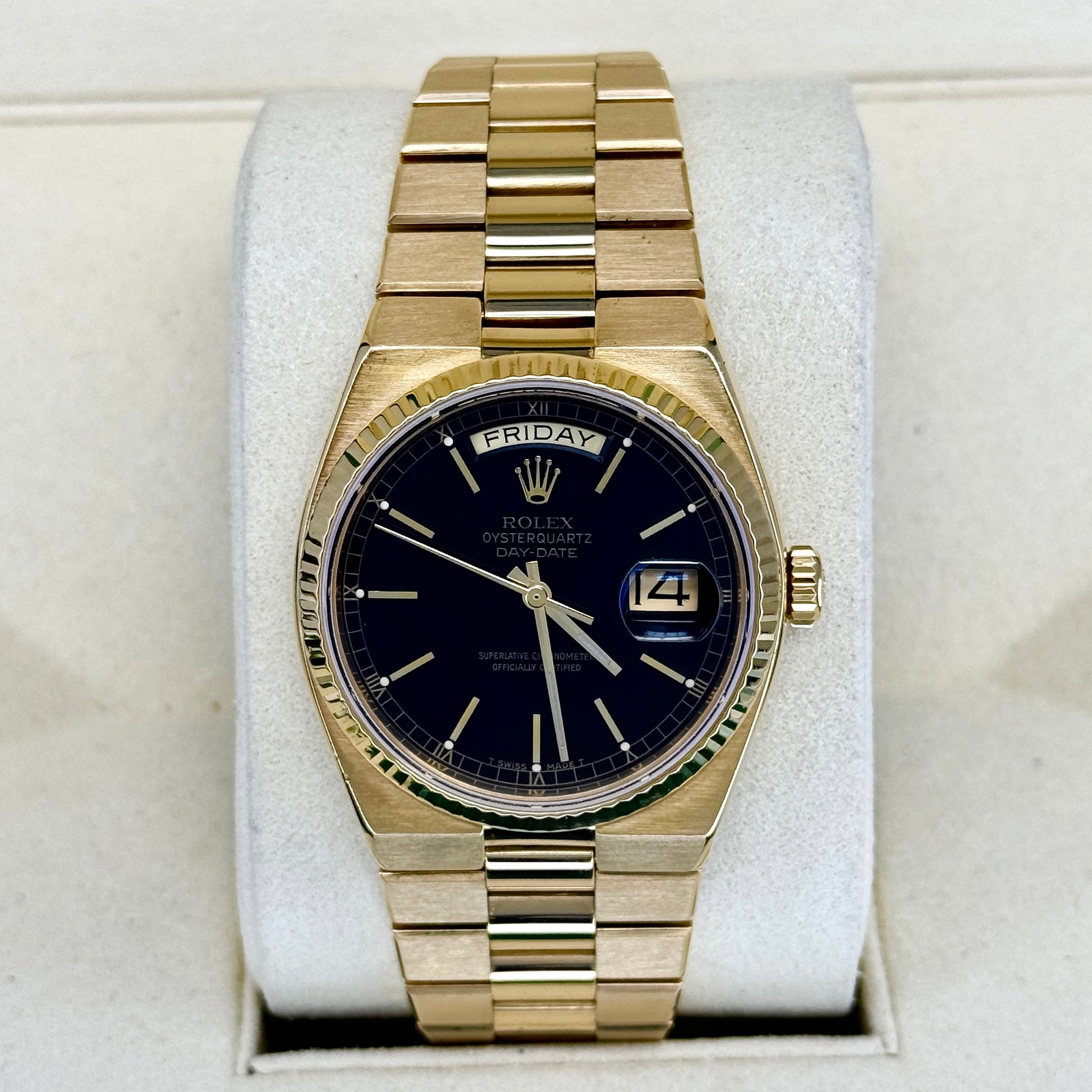 Rolex Day-Date Oysterquartz 36mm President No Sag 18K Yellow Gold Black Dial