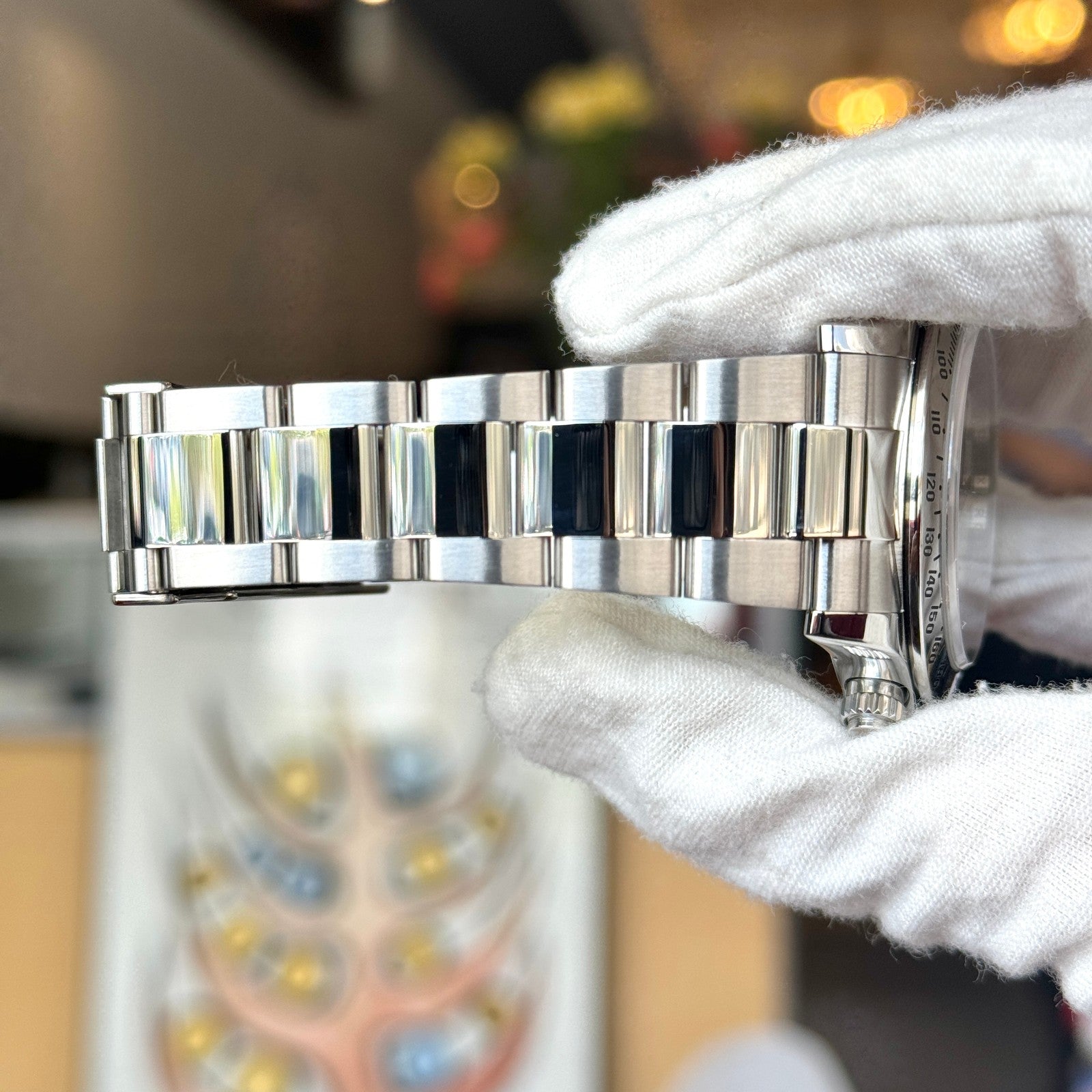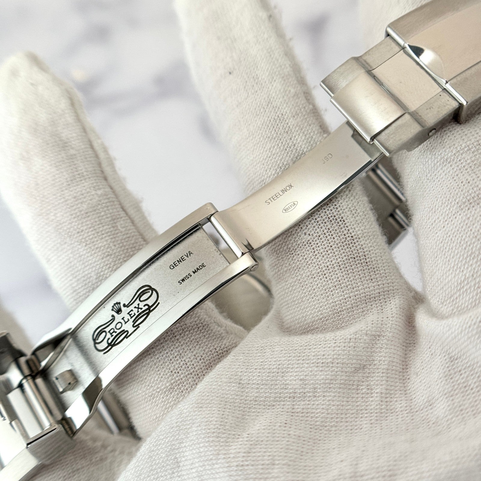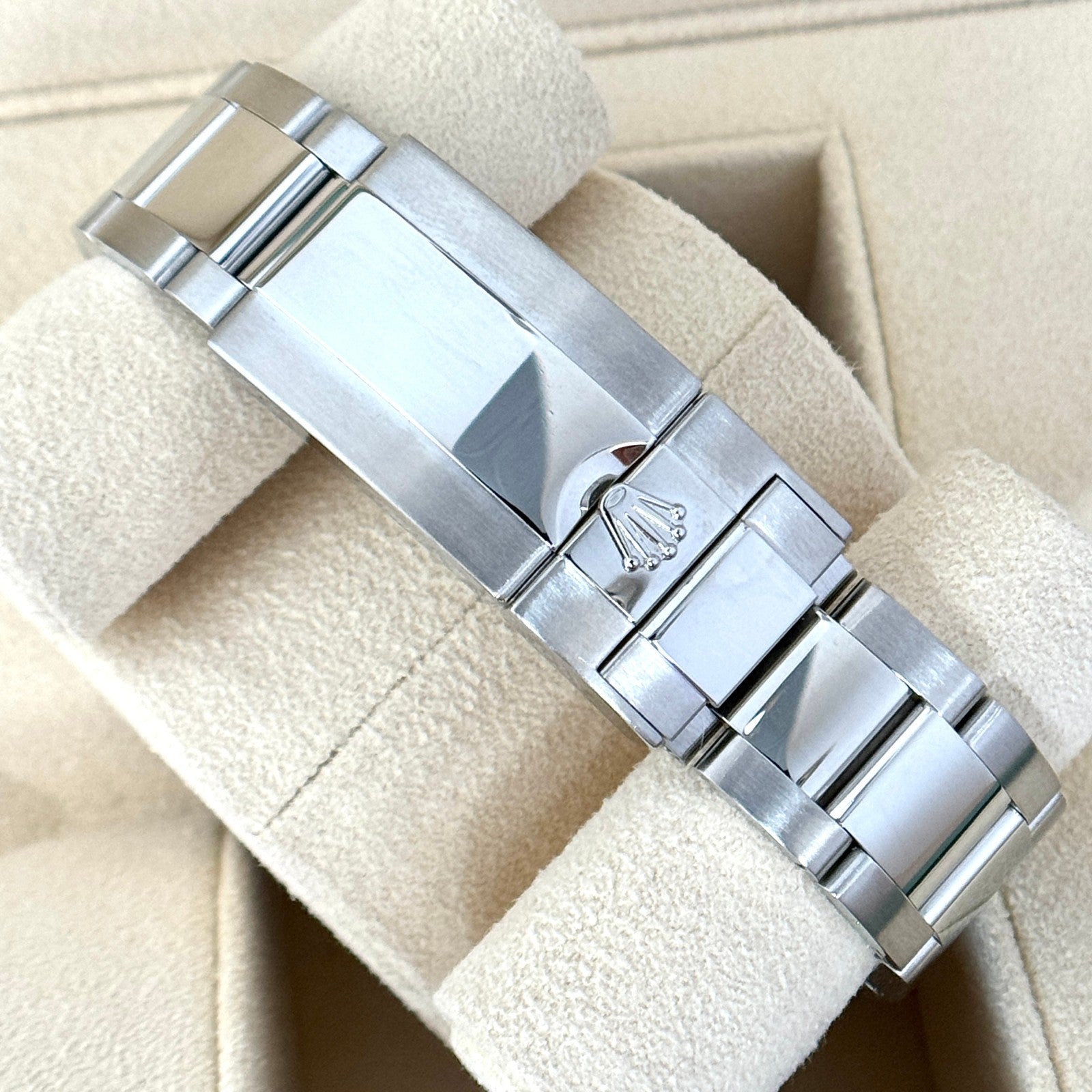 Fitted with the original Oyster bracelet in stainless steel, the watch features solid end links and a secure folding clasp for comfortable daily wear.