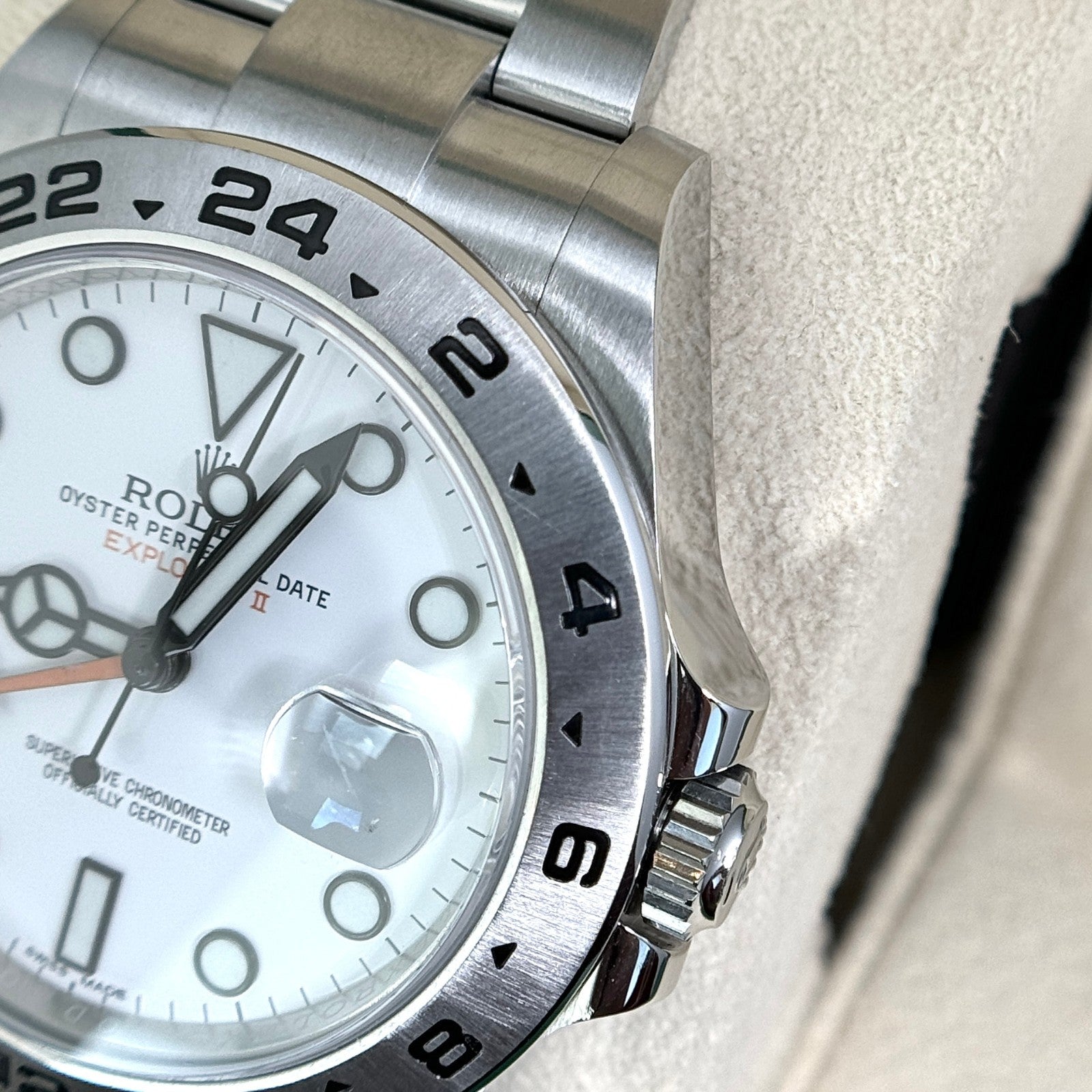 The watch shows minor signs of wear, such as small, intangible scratches on the case, bezel, and case back. Overall, the timepiece is in excellent pre-owned condition with no dents or deep scuffs. The movement has been machine-tested for accuracy and water resistance, and performs within Rolex standards.