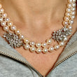 Set of 2 Cultured Pearl Natural Diamond Necklaces Platinum 18 Inch