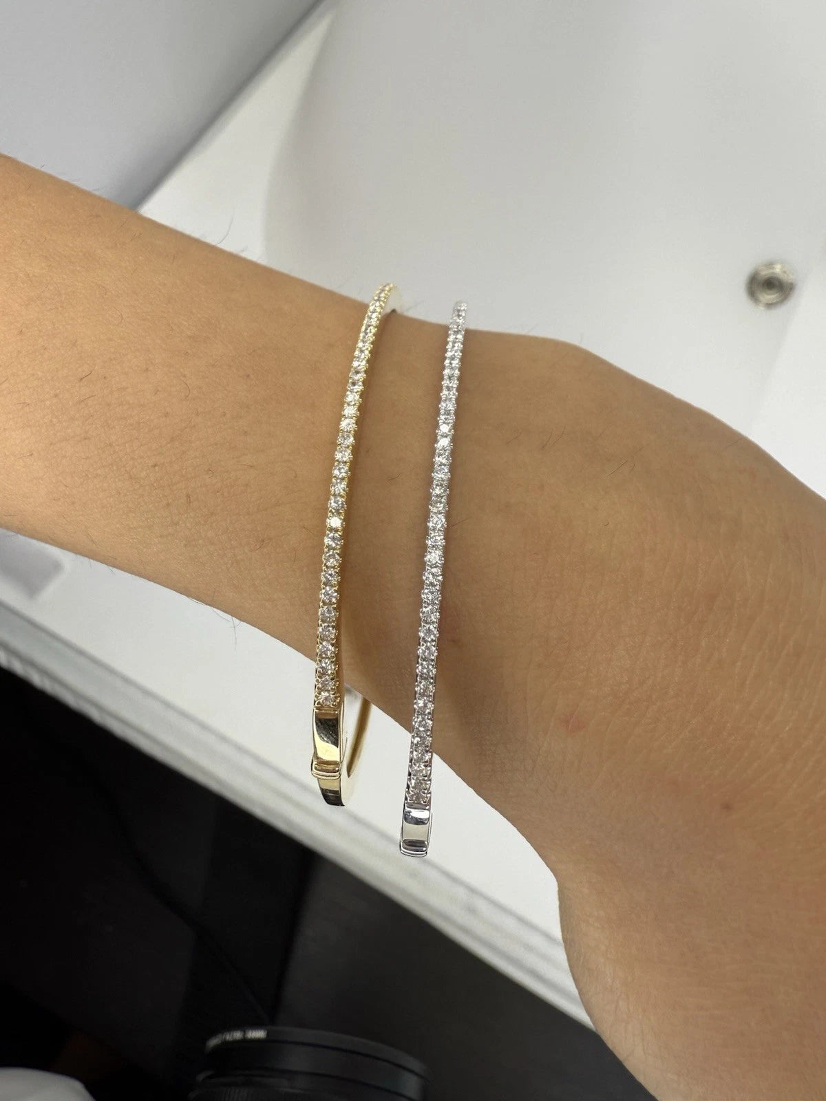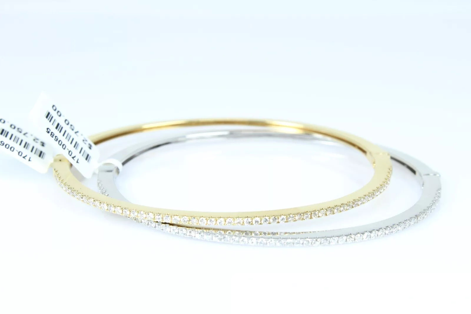 Set of 2 Diamond Bangle Bracelets 18k White Gold and 18k Yellow Gold 1.00 CTW