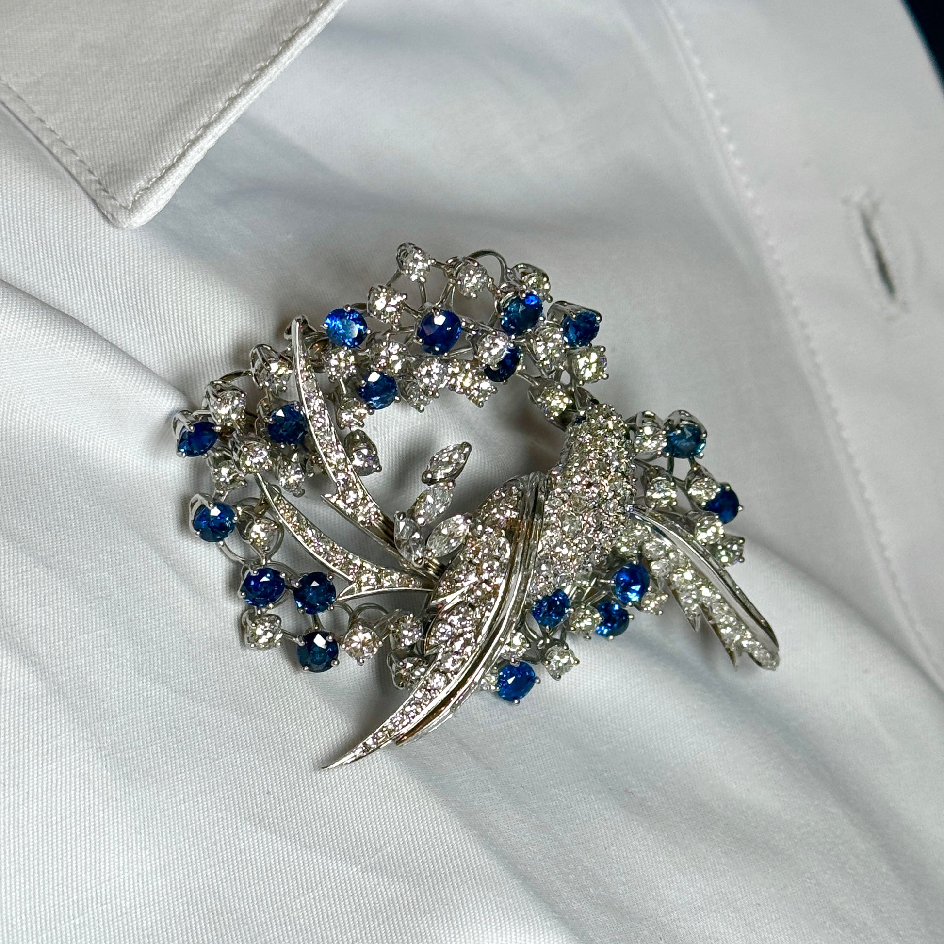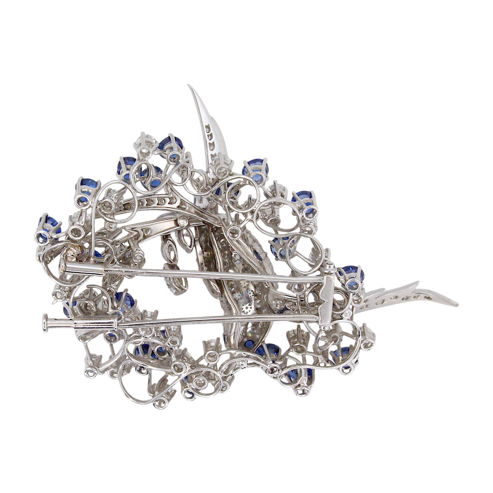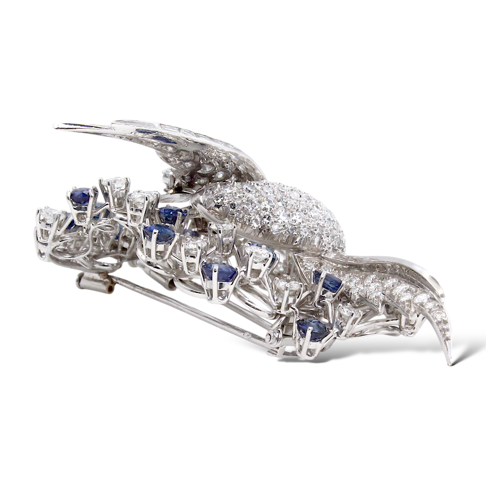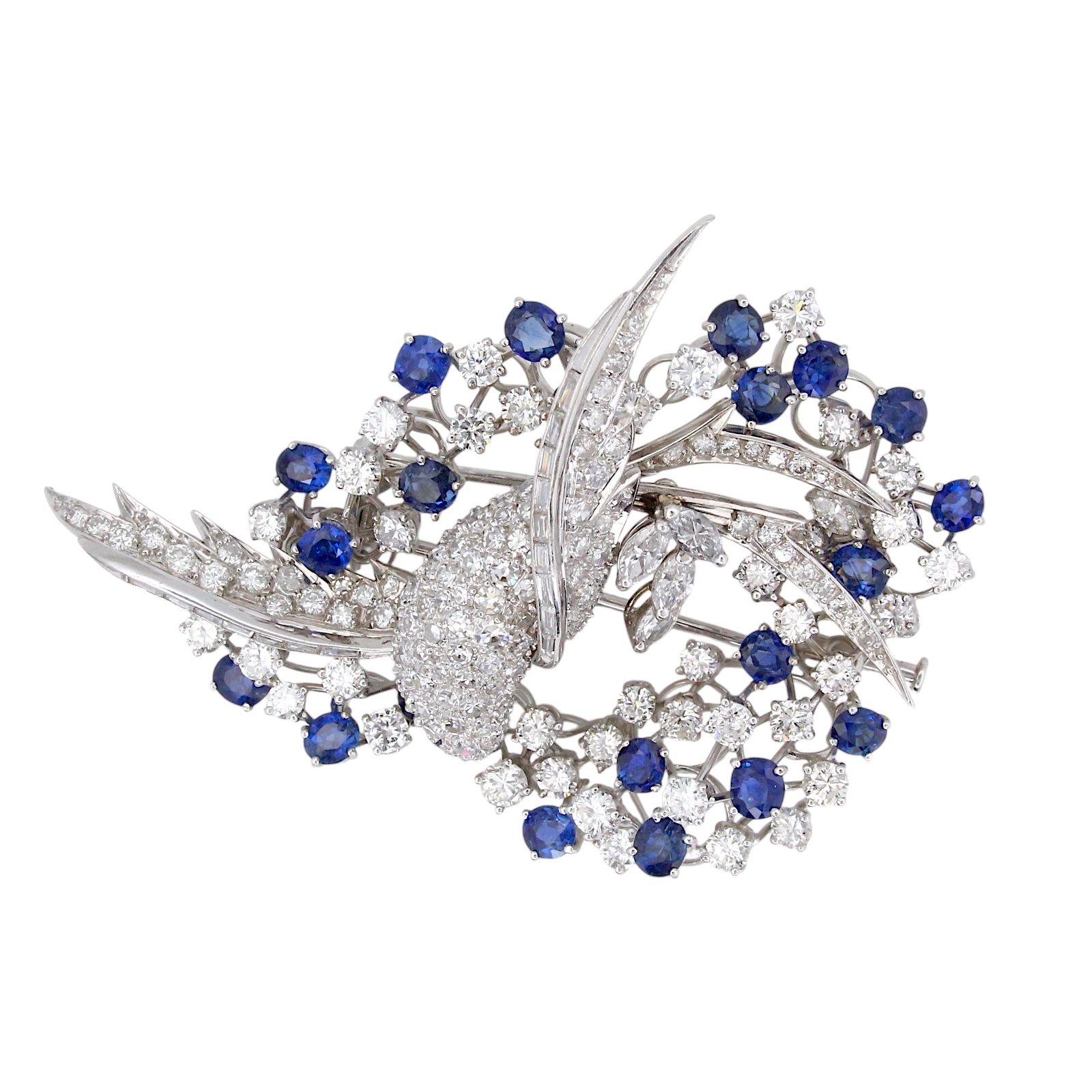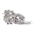 Platinum Diamond and Blue Sapphire Brooch