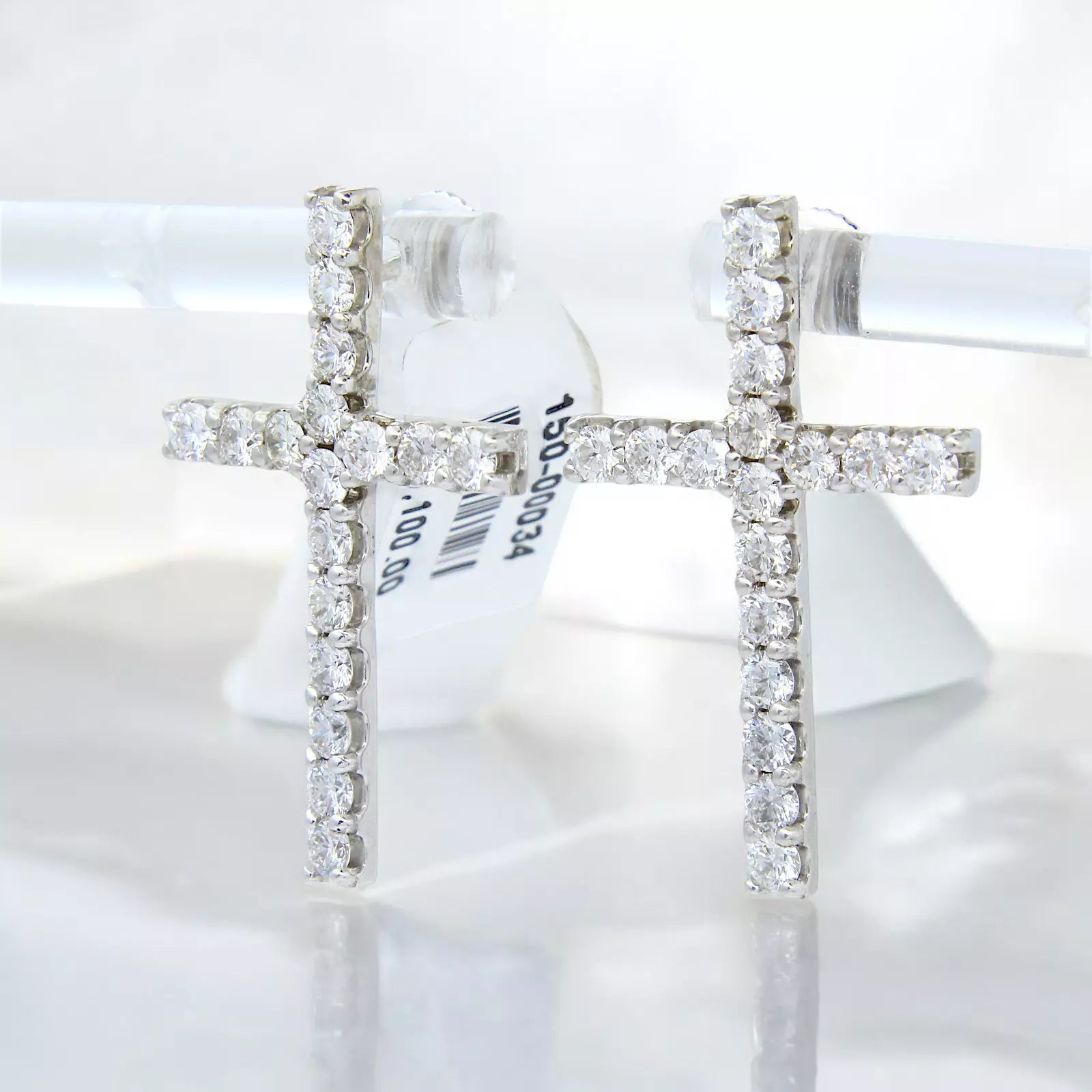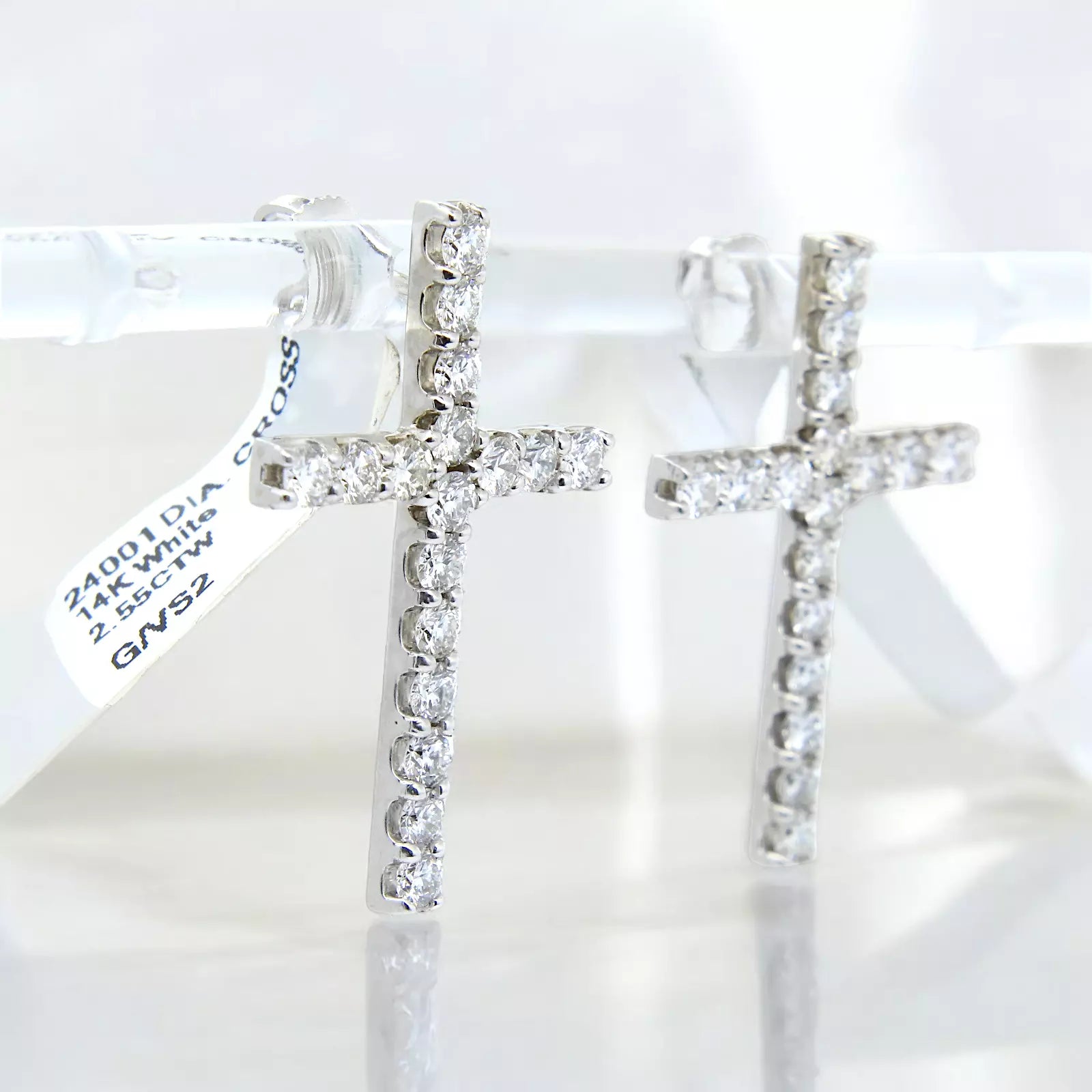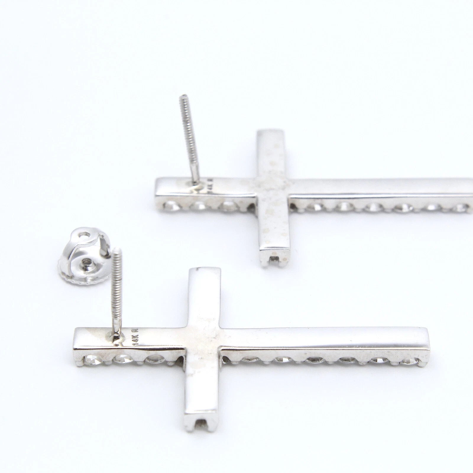 Tall Cross Earrings Natural Diamonds 2.55 CT 14K White Gold 1.26" Inches