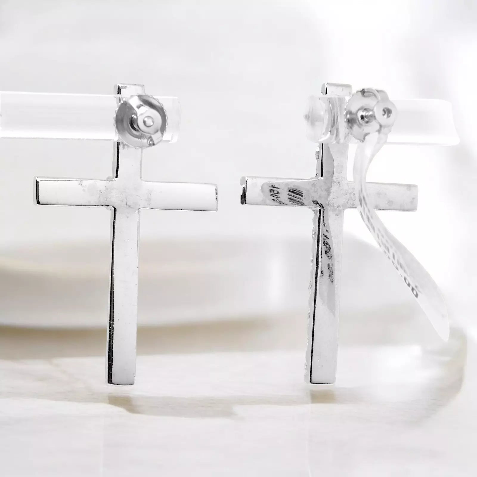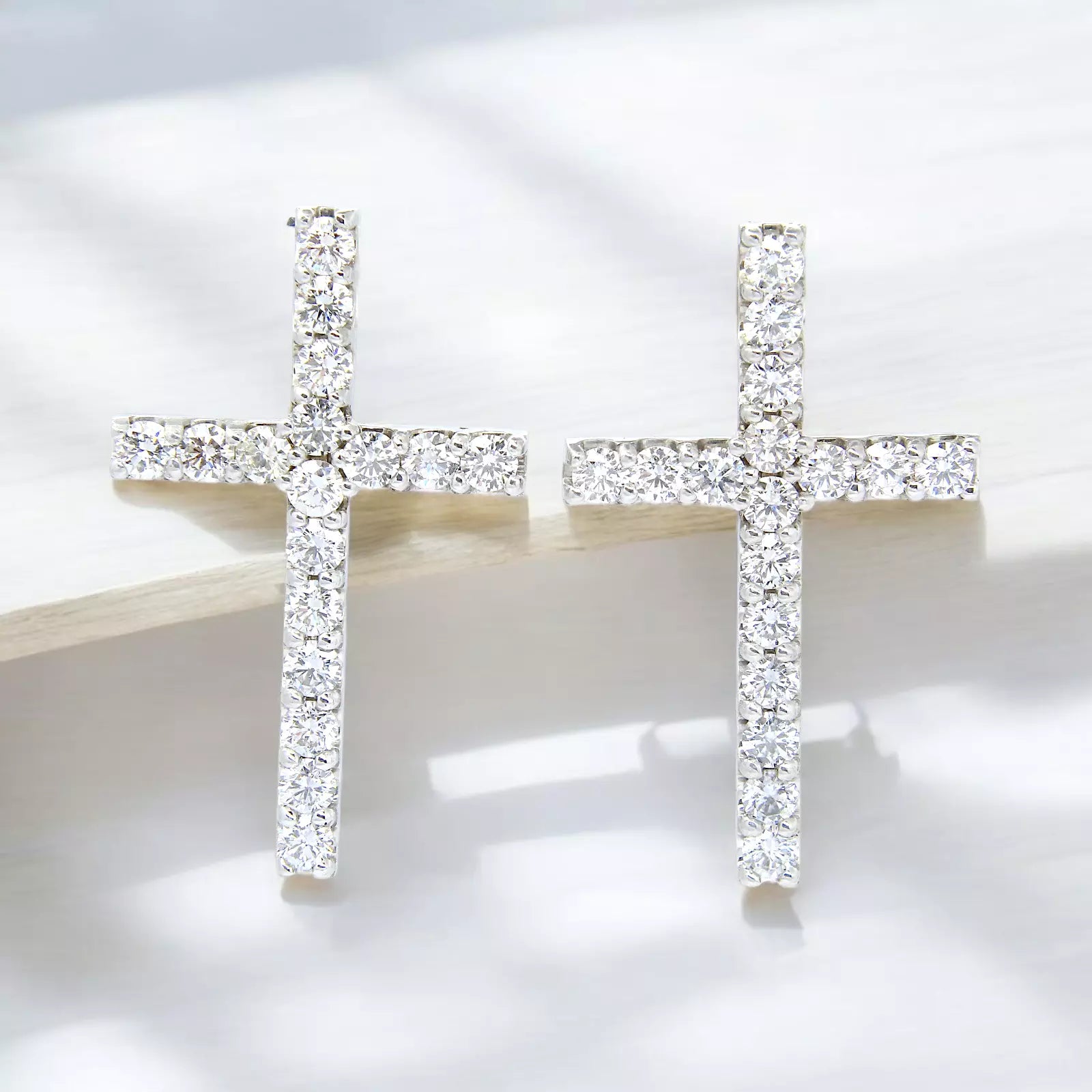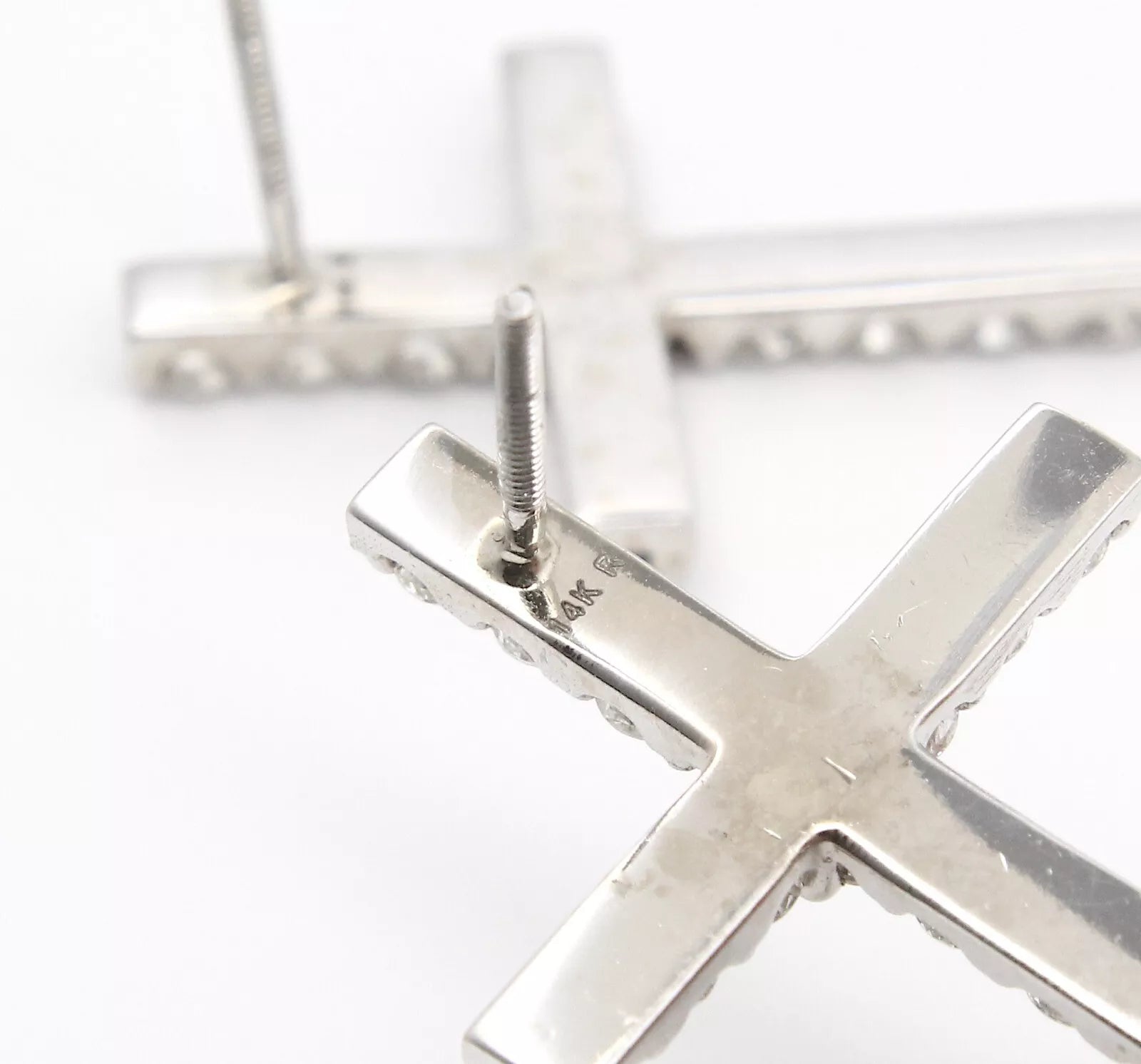 Tall Cross Earrings Natural Diamonds 2.55 CT 14K White Gold 1.26" Inches