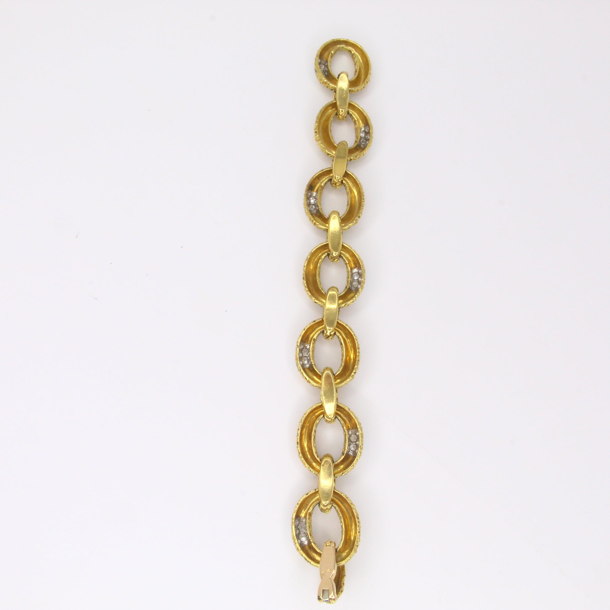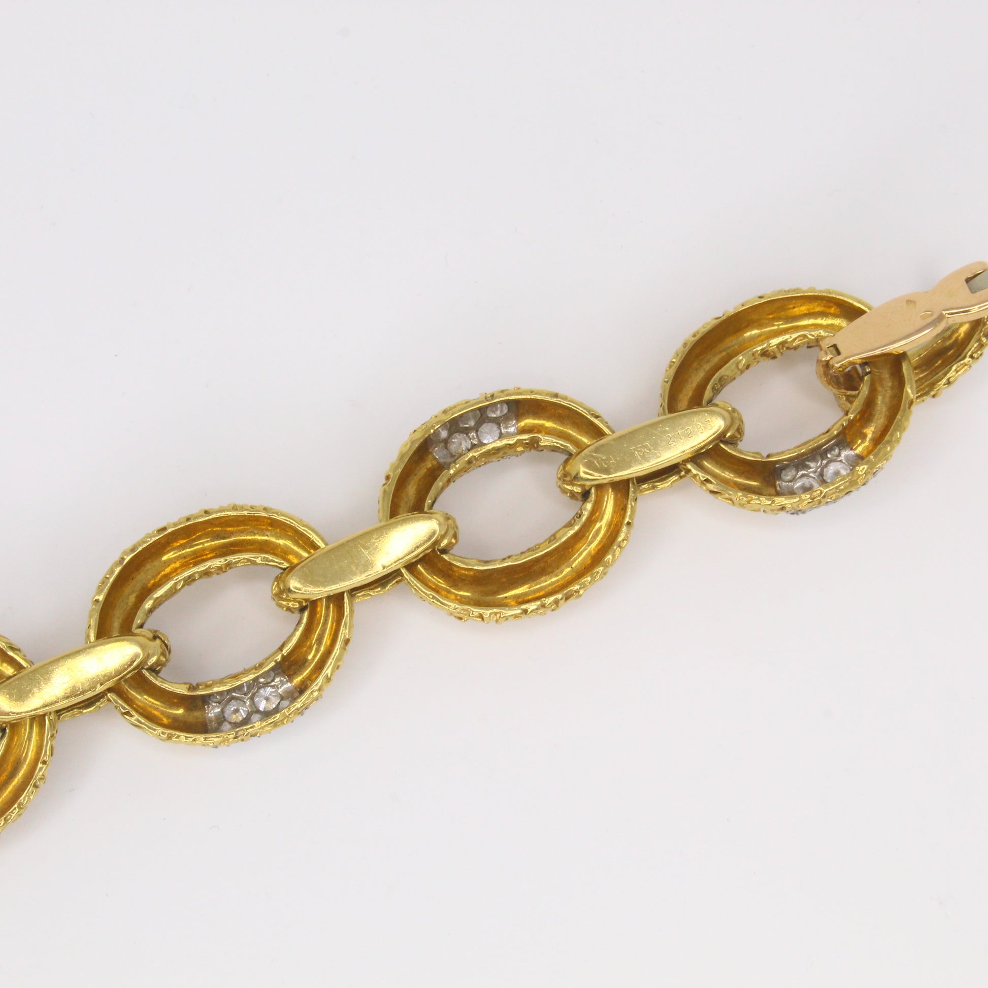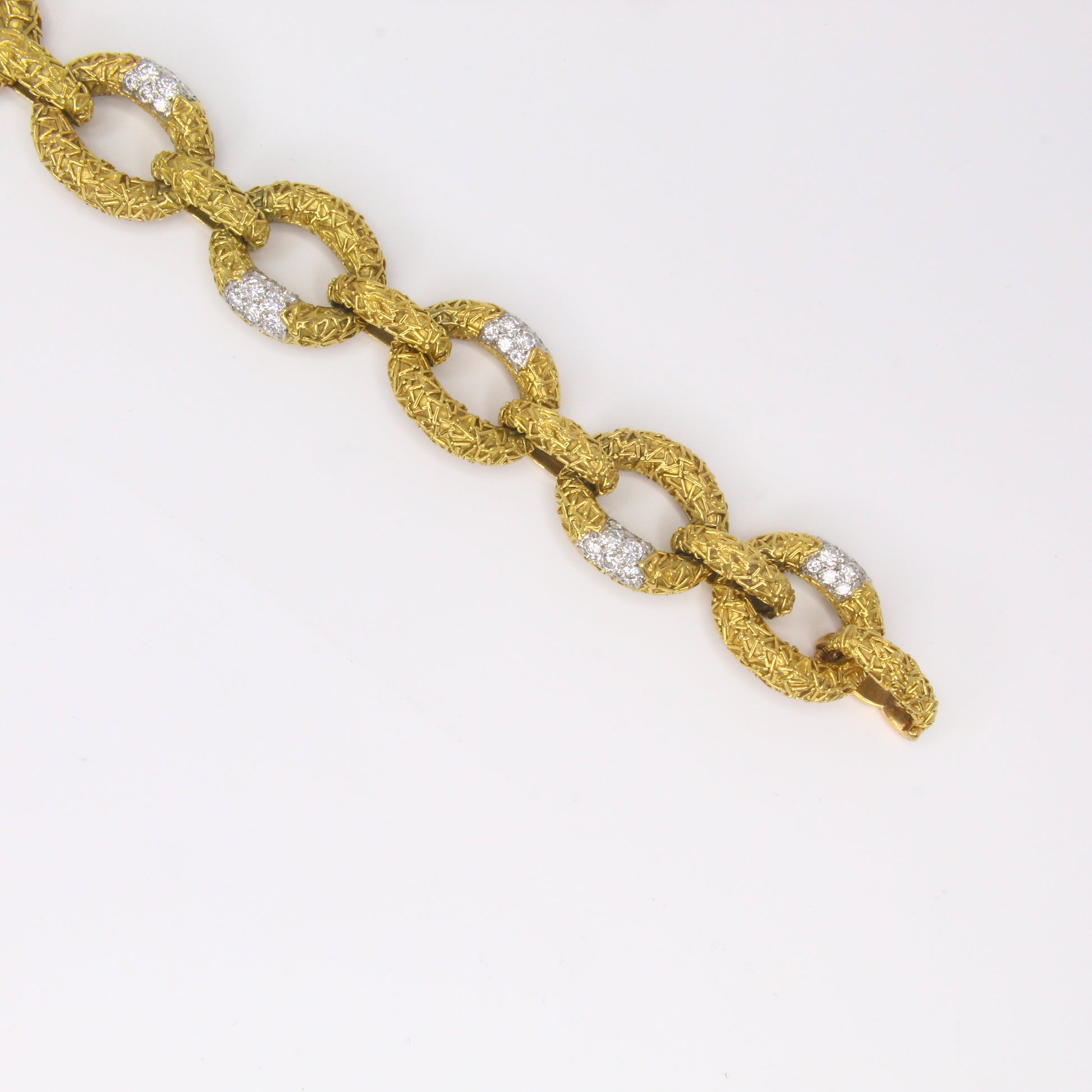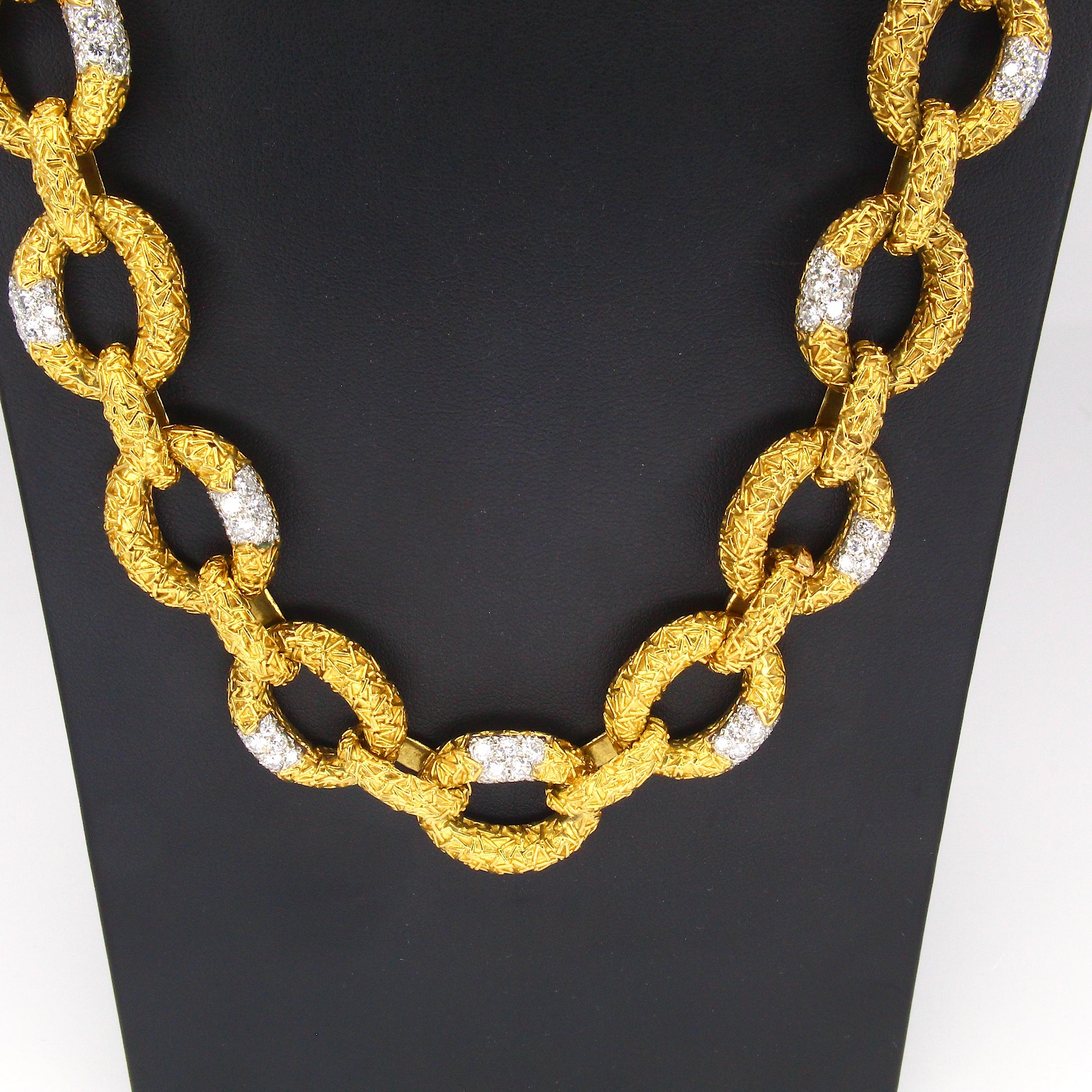 This original Van Cleef & Arpels Chevalerie set from France is a rare and highly collectible example of the house’s craftsmanship. Comprising a convertible necklace, three matching bracelets, a link extender, and a coordinating brooch, the set totals over 314 grams of 18K yellow gold and platinum and is set with approximately 16 carats of natural white diamonds. Each piece is fully hallmarked, numbered, and offers the flexibility to be worn in multiple configurations, making it both a statement of luxury and a versatile addition to any fine jewelry collection.