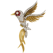 Vintage Diamond Bird Ruby Brooch Pin 2 CT 18K Yellow Gold Platinum