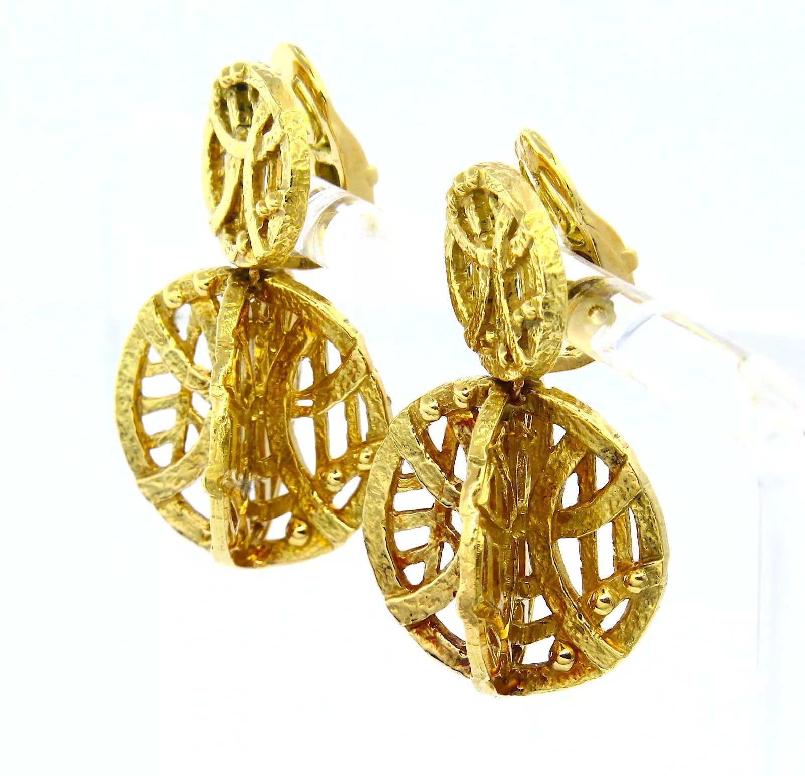 Vintage Estate 18K Yellow Gold Clip-On Geometric Earrings 20.8 grams