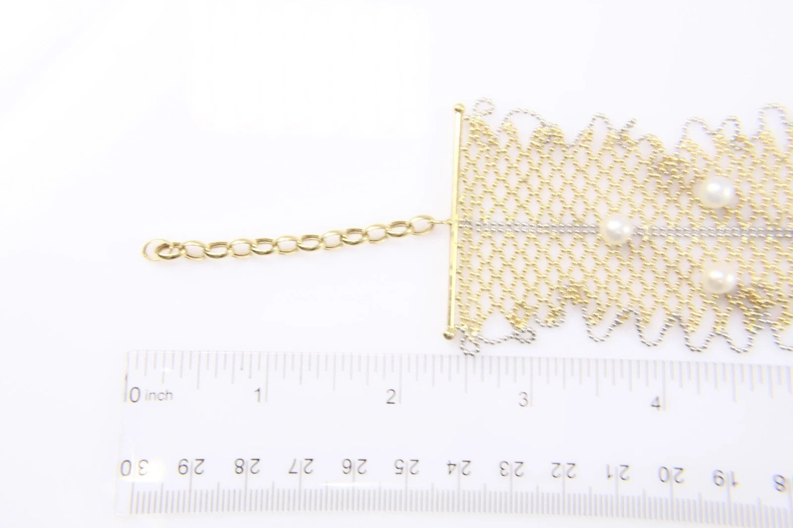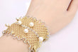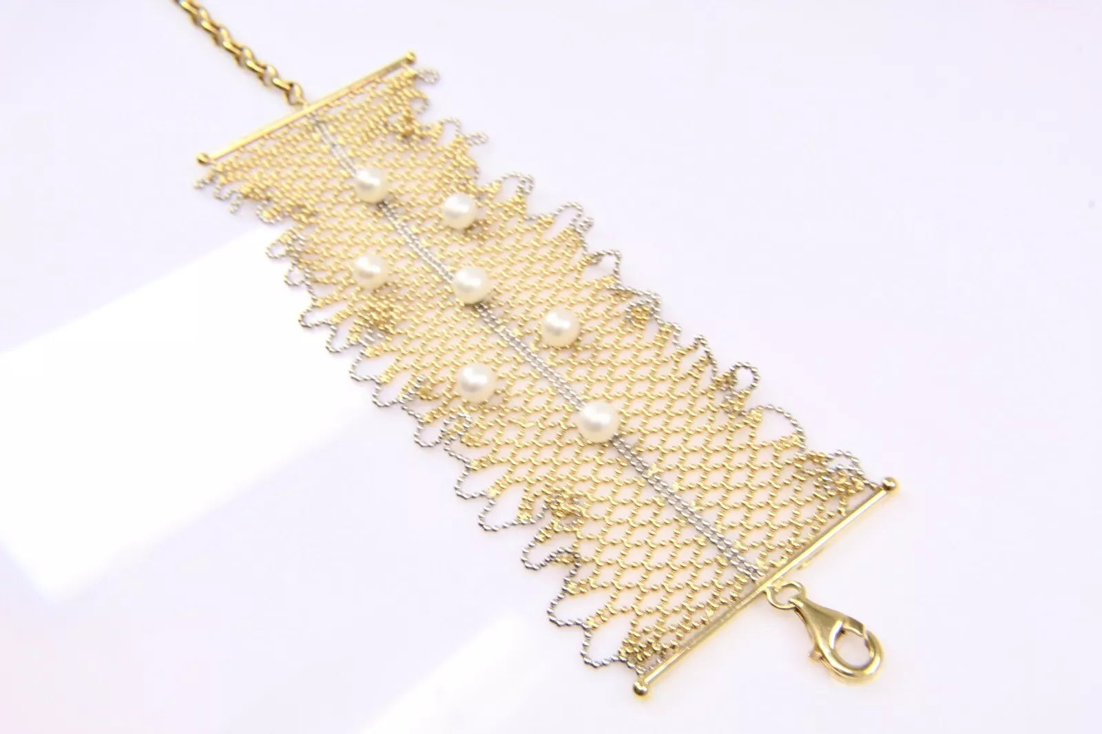WIDE 18k Yellow Gold and White Gold Pearl Cuff Mesh Bead Bracelet